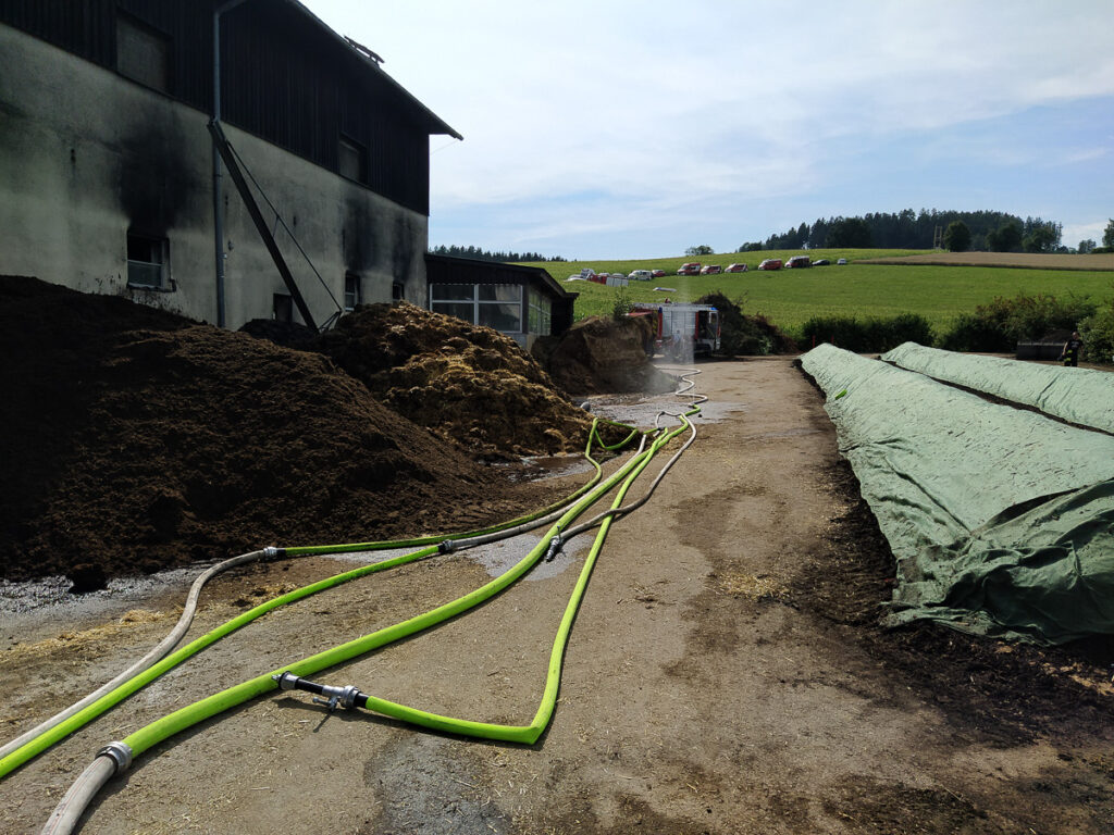 Die Hausbesitzer und die Nachbarn versuchten den Lader mit Feuerlöscher zu löschen und mit einem weiteren Traktor aus dem Dachboden zu ziehen. Dies gelang jedoch aufgrund des Feuers nicht mehr.