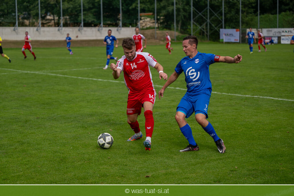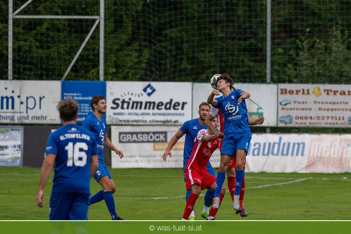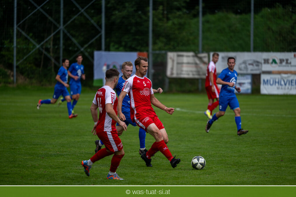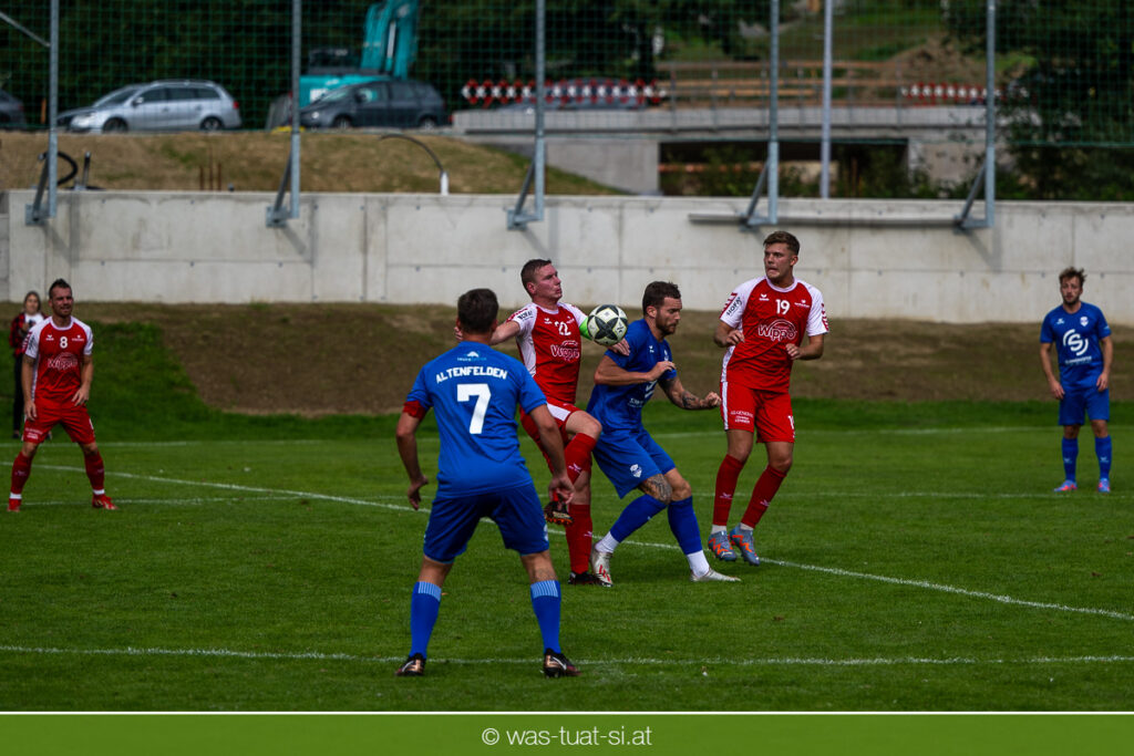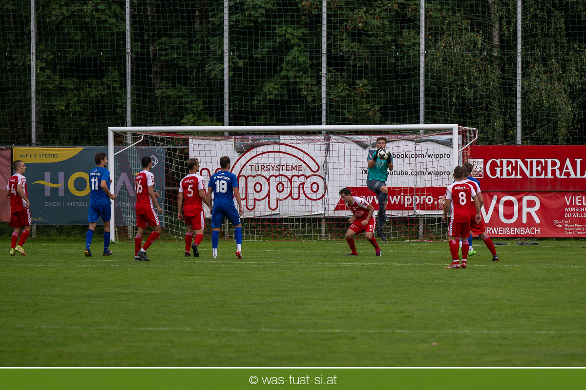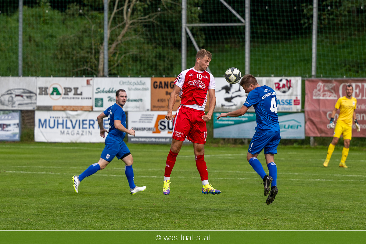 …für die Union Wippro Vorderweißenbach in der 1. Klasse Nord: Nach zwei eher durchwachsenen Partien zum Start gab es in der dritten Runde gegen Altenfelden einen klaren 5:2 (1:1)-Heimerfolg. Die 250 Fans in der Wippro Arena sahen dabei eine über weite Strecken klar bessere Heimmannschaft, die sich aber vorerst selber das Leben schwer machte: Einerseits führten individuelle Fehler zur zweimaligen Führung der Gäste – und andererseits konnte man eine Fülle von guten Gelegenheiten lange Zeit nicht in etwas Zählbares umsetzen. Die Altenfeldner gingen früh durch Sova in Führung (11.), der Ausgleich gelang den Heimischen nach einem Freistoß durch den blendend aufgelegten Jonas Prammer (23.). Der junge Vorderweißenbacher hatte nach Wiederbeginn auch die Führung auf dem Fuß, scheiterte aber am hervorragenden Keeper der Gäste. Nach dem 1:2 (55.) neuerlich durch Sova erhöhten die Heimischen den Druck, vermochten sich aber vorerst nicht zu belohnen: Immer wieder hatte der Altenfeldner Schlussmann seine Hände im Spiel, der u.a. eine Großchance von Watzinger zunichte machte. So dauerte es bis in Minute 81 bis zum hochverdienten Ausgleich: Nach einem Prammer-Eckball stieg Ondrej Svoboda am Höchsten und köpfte zum 2:2 ein. Drei Minuten später drehte Patrick Berlesreiter die Partie endgültig, als er nach einem sehenswerten Spielzug das Spielgerät zum 3:2 im gegnerischen Tor versenkte. Kurz darauf dann der negative Höhepunkt der Partie: der eingewechselte Zeman ließ sich nach einem harmlosen Zweikampf im Mittelfeld zu einer Tätlichkeit hinreißen und wurde dafür zurecht vom Platz gestellt Aber auch mit 10 Mann blieben die Gastgeber am Drücker und fixierten durch zwei Treffer von Florian Watzinger – einer davon aus einem Elfmeter – in der Nachspielzeit noch den deutlichen 5:2-Erfolg. Über diesen freuten sich nicht nur die heimischen Fans, sondern auch das Trainerduo Andi Prammer/Peter Raab: „Endlich hat’s geklappt, in Anbetracht der Chancen geht der Sieg auf alle Fälle in Ordnung“, sagten die beiden nach dem Spiel.