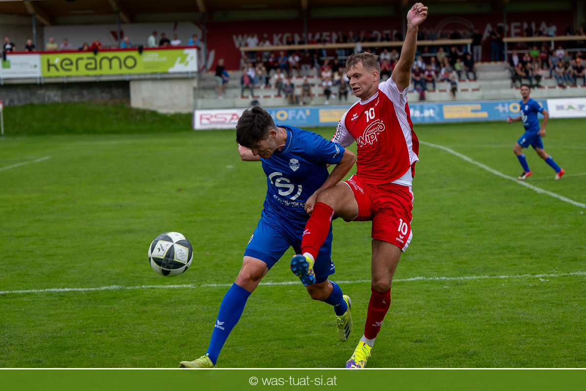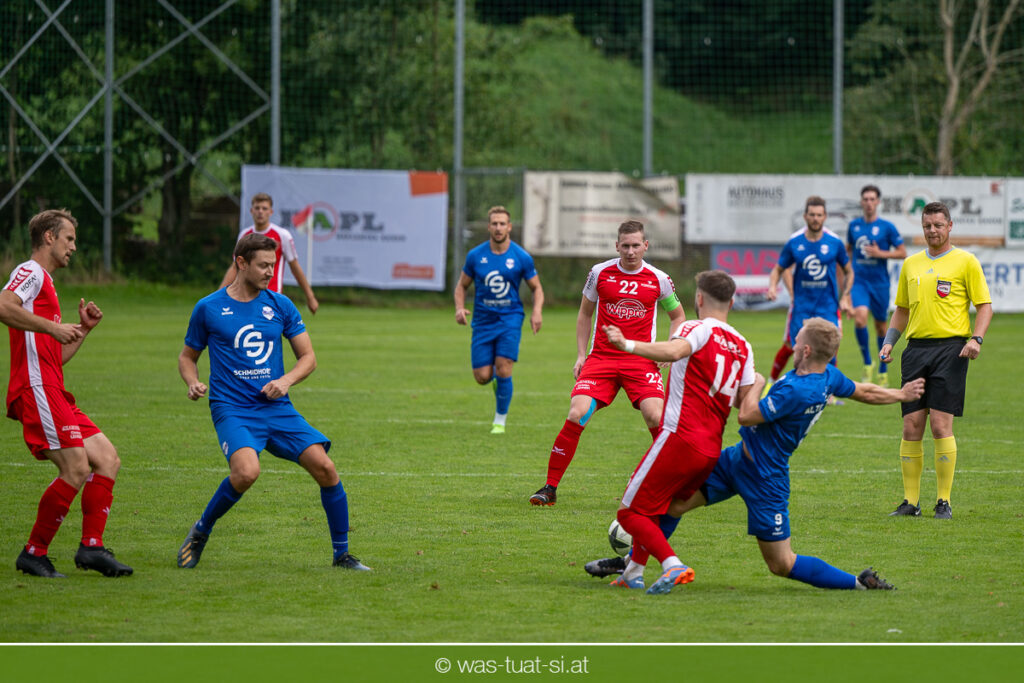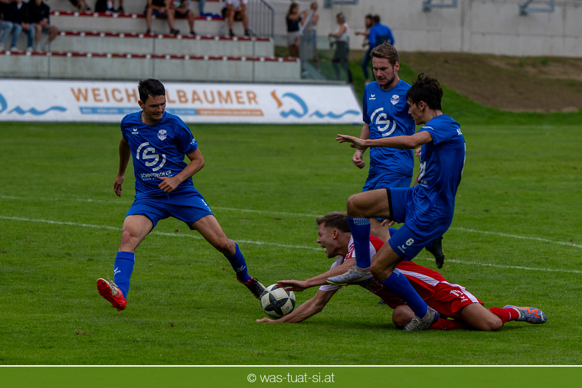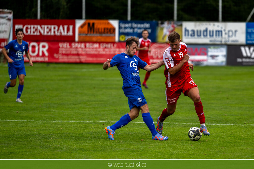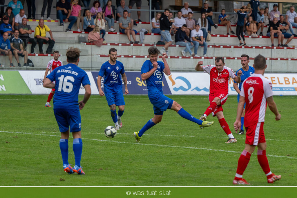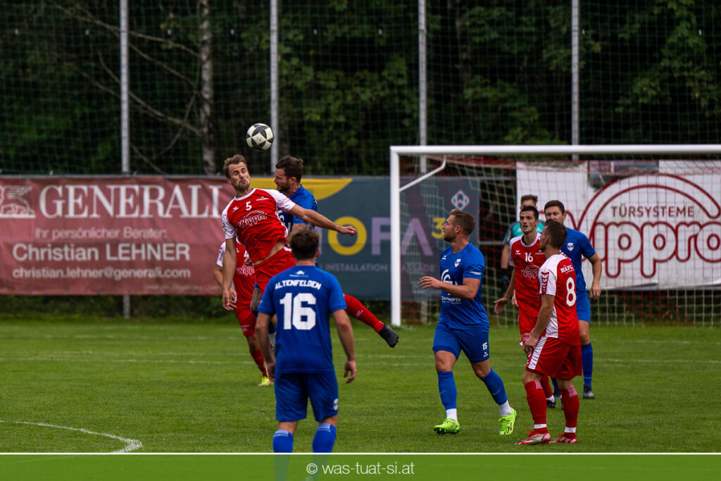 …für die Union Wippro Vorderweißenbach in der 1. Klasse Nord: Nach zwei eher durchwachsenen Partien zum Start gab es in der dritten Runde gegen Altenfelden einen klaren 5:2 (1:1)-Heimerfolg. Die 250 Fans in der Wippro Arena sahen dabei eine über weite Strecken klar bessere Heimmannschaft, die sich aber vorerst selber das Leben schwer machte: Einerseits führten individuelle Fehler zur zweimaligen Führung der Gäste – und andererseits konnte man eine Fülle von guten Gelegenheiten lange Zeit nicht in etwas Zählbares umsetzen. Die Altenfeldner gingen früh durch Sova in Führung (11.), der Ausgleich gelang den Heimischen nach einem Freistoß durch den blendend aufgelegten Jonas Prammer (23.). Der junge Vorderweißenbacher hatte nach Wiederbeginn auch die Führung auf dem Fuß, scheiterte aber am hervorragenden Keeper der Gäste. Nach dem 1:2 (55.) neuerlich durch Sova erhöhten die Heimischen den Druck, vermochten sich aber vorerst nicht zu belohnen: Immer wieder hatte der Altenfeldner Schlussmann seine Hände im Spiel, der u.a. eine Großchance von Watzinger zunichte machte. So dauerte es bis in Minute 81 bis zum hochverdienten Ausgleich: Nach einem Prammer-Eckball stieg Ondrej Svoboda am Höchsten und köpfte zum 2:2 ein. Drei Minuten später drehte Patrick Berlesreiter die Partie endgültig, als er nach einem sehenswerten Spielzug das Spielgerät zum 3:2 im gegnerischen Tor versenkte. Kurz darauf dann der negative Höhepunkt der Partie: der eingewechselte Zeman ließ sich nach einem harmlosen Zweikampf im Mittelfeld zu einer Tätlichkeit hinreißen und wurde dafür zurecht vom Platz gestellt Aber auch mit 10 Mann blieben die Gastgeber am Drücker und fixierten durch zwei Treffer von Florian Watzinger – einer davon aus einem Elfmeter – in der Nachspielzeit noch den deutlichen 5:2-Erfolg. Über diesen freuten sich nicht nur die heimischen Fans, sondern auch das Trainerduo Andi Prammer/Peter Raab: „Endlich hat’s geklappt, in Anbetracht der Chancen geht der Sieg auf alle Fälle in Ordnung“, sagten die beiden nach dem Spiel.