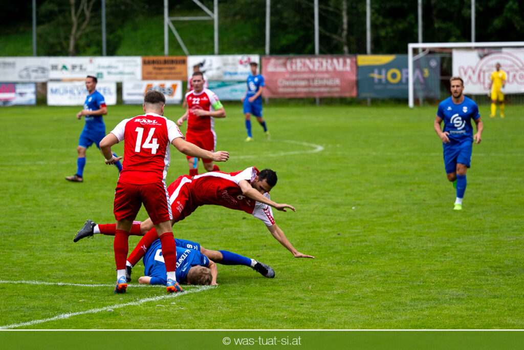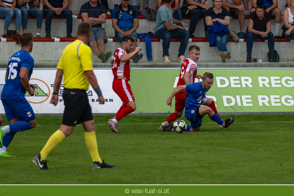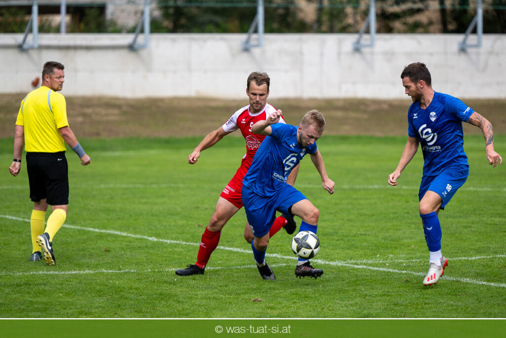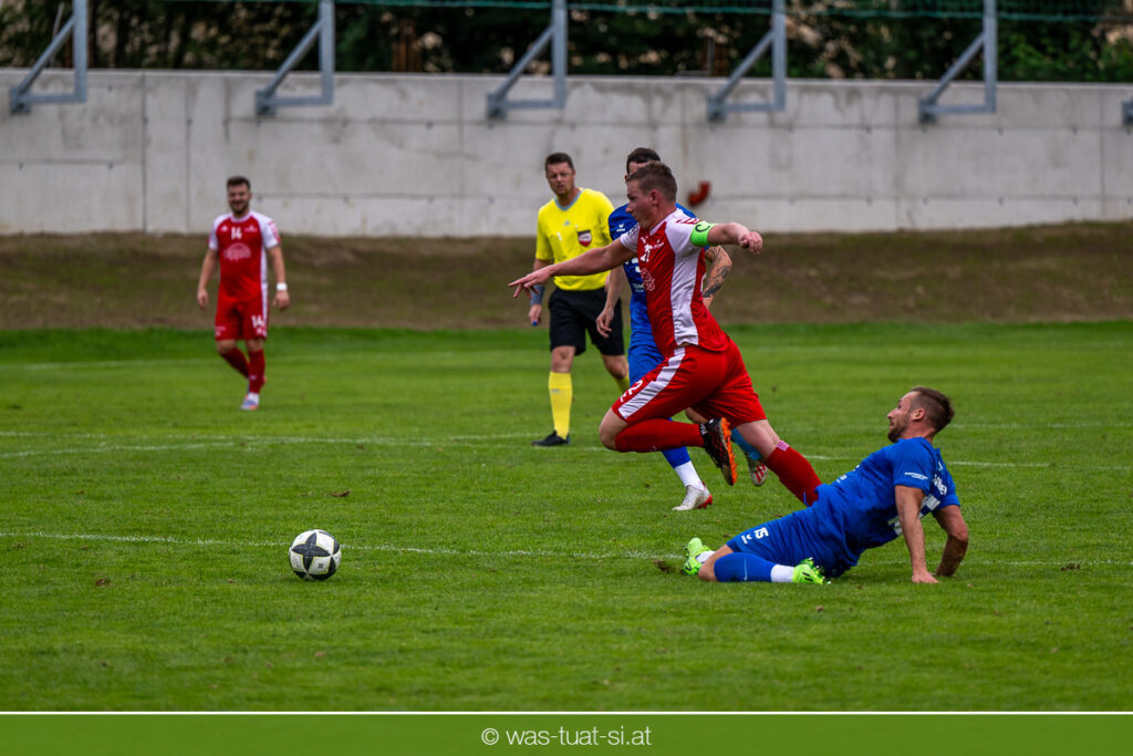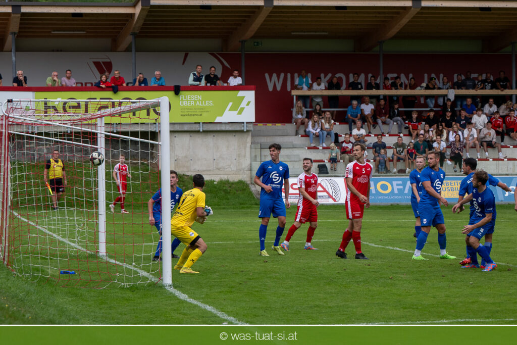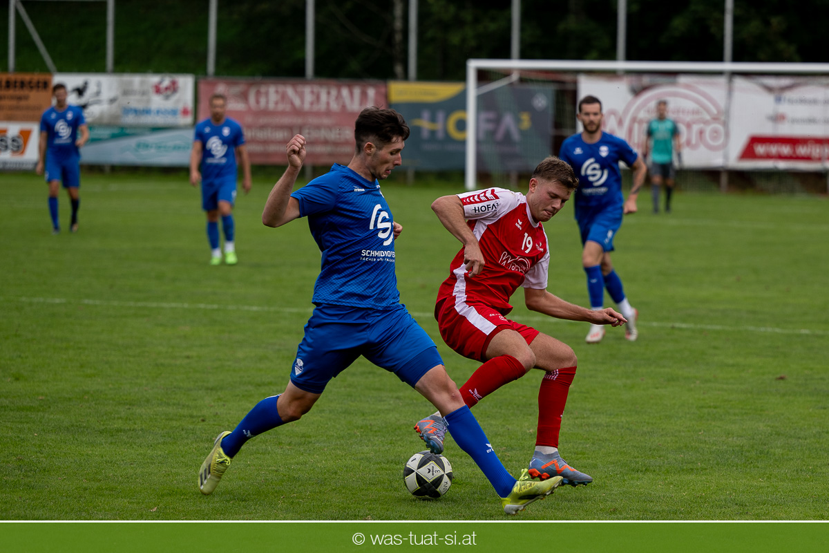 …für die Union Wippro Vorderweißenbach in der 1. Klasse Nord: Nach zwei eher durchwachsenen Partien zum Start gab es in der dritten Runde gegen Altenfelden einen klaren 5:2 (1:1)-Heimerfolg. Die 250 Fans in der Wippro Arena sahen dabei eine über weite Strecken klar bessere Heimmannschaft, die sich aber vorerst selber das Leben schwer machte: Einerseits führten individuelle Fehler zur zweimaligen Führung der Gäste – und andererseits konnte man eine Fülle von guten Gelegenheiten lange Zeit nicht in etwas Zählbares umsetzen. Die Altenfeldner gingen früh durch Sova in Führung (11.), der Ausgleich gelang den Heimischen nach einem Freistoß durch den blendend aufgelegten Jonas Prammer (23.). Der junge Vorderweißenbacher hatte nach Wiederbeginn auch die Führung auf dem Fuß, scheiterte aber am hervorragenden Keeper der Gäste. Nach dem 1:2 (55.) neuerlich durch Sova erhöhten die Heimischen den Druck, vermochten sich aber vorerst nicht zu belohnen: Immer wieder hatte der Altenfeldner Schlussmann seine Hände im Spiel, der u.a. eine Großchance von Watzinger zunichte machte. So dauerte es bis in Minute 81 bis zum hochverdienten Ausgleich: Nach einem Prammer-Eckball stieg Ondrej Svoboda am Höchsten und köpfte zum 2:2 ein. Drei Minuten später drehte Patrick Berlesreiter die Partie endgültig, als er nach einem sehenswerten Spielzug das Spielgerät zum 3:2 im gegnerischen Tor versenkte. Kurz darauf dann der negative Höhepunkt der Partie: der eingewechselte Zeman ließ sich nach einem harmlosen Zweikampf im Mittelfeld zu einer Tätlichkeit hinreißen und wurde dafür zurecht vom Platz gestellt Aber auch mit 10 Mann blieben die Gastgeber am Drücker und fixierten durch zwei Treffer von Florian Watzinger – einer davon aus einem Elfmeter – in der Nachspielzeit noch den deutlichen 5:2-Erfolg. Über diesen freuten sich nicht nur die heimischen Fans, sondern auch das Trainerduo Andi Prammer/Peter Raab: „Endlich hat’s geklappt, in Anbetracht der Chancen geht der Sieg auf alle Fälle in Ordnung“, sagten die beiden nach dem Spiel.