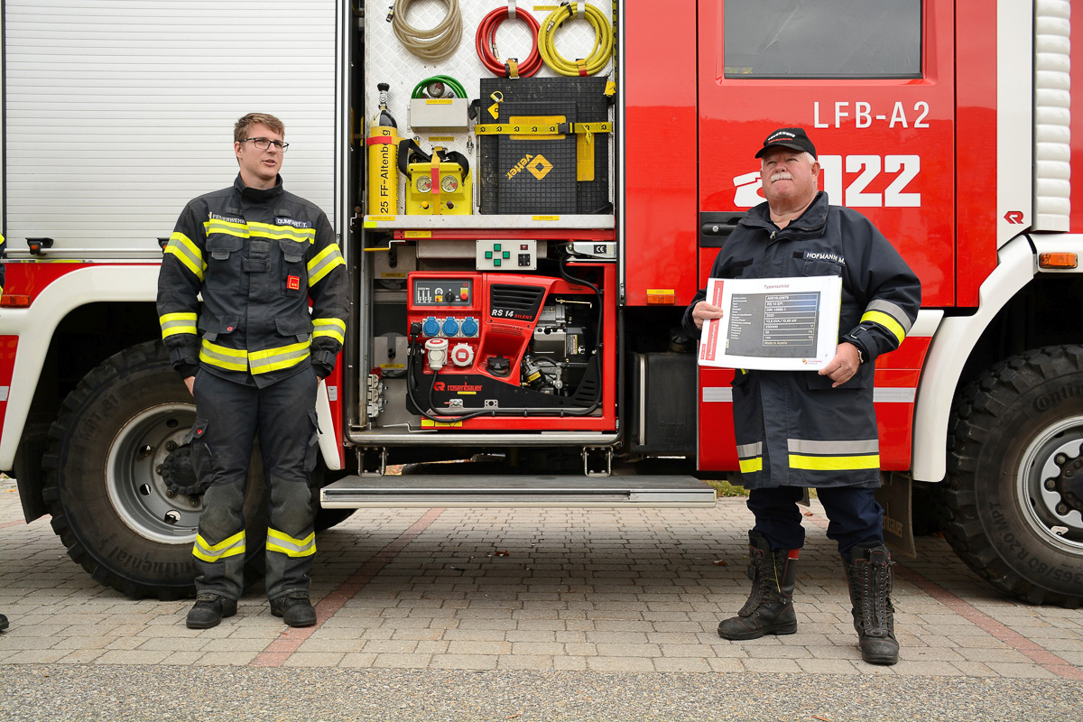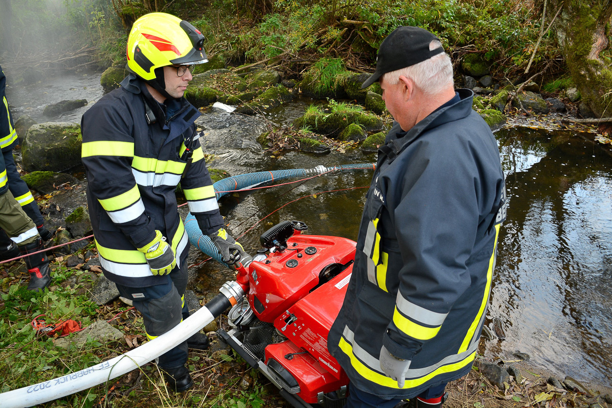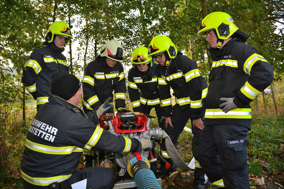 Genauso wichtig ist es ebenfalls die kraftbetriebenen Geräte wie Stromerzeuger und Tauchpumpen bedienen zu können oder auch zu Wissen auf was zu achten ist, wenn ein Tanklöschfahrzeug (TLF) gespeist wird. Auch die Wartung und Überprüfung der TS wurde geschult und in der Praxis beübt, um die Geräte in den Feuerwehren immer in ordnungsgemäßen Zustand halten zu können.