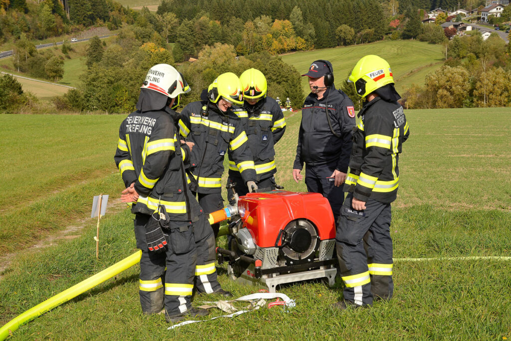 An zwei Lehrgangstagen wurden die angehenden Maschinisten an der TS sowie an kraftbetriebene Geräte ausgebildet und unterwiesen. Das Kernelement dieses Lehrganges ist die Tragkraftspritze in allen Funktionen und Bauteilen kennen zu lernen und dieses Wissen in die Praxis umzusetzen. Egal ob an einem Fluss oder Hydranten Wasser entnommen wird, müssen die richtigen Handgriffe sitzen um eine konstante Löschwasserförderung zu gewährleisten. Umso wichtiger wird dies, wenn es sich um eine Löschwasserförderung über lange Wegstrecken handelt. Dies wurde in einer Länge von 1000 m von der großen Rodl nach Sonnberg simuliert. Ziel war es den Teilnehmenden zu zeigen, welche Schwierigkeiten wie Druckschwankungen, Öffnen von Ventilen bzw. Fehlerquellen zustande kommen können die schwere Auswirkungen an der TS oder der zu fördernden Wassermenge haben.