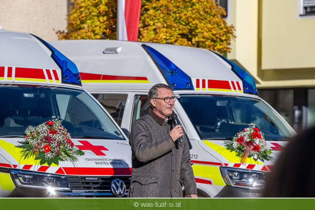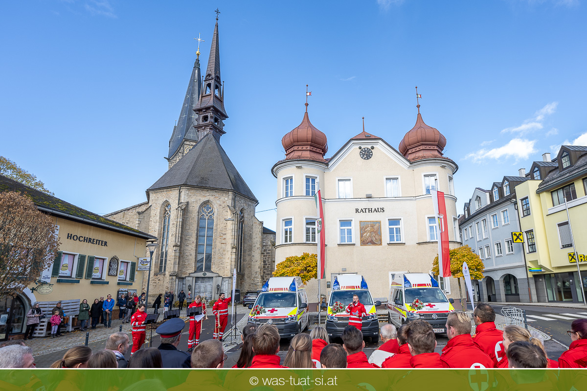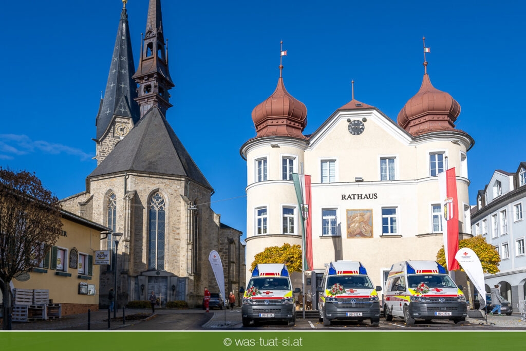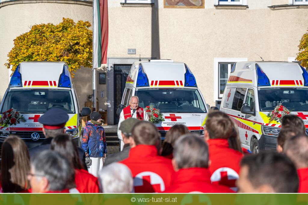 Nach einer längeren Corona-bedingten Pause, durfte das Rote Kreuz Bad Leonfelden heute die Segnung von 3 Sanitätseinsatzwägen (SEW) nachholen. Im Anschluss an einer für das Rote Kreuz gestalteten Messe sowie der Segnung der Fahrzeuge konnten alle Mitarbeiterinnen und Mitarbeiter, Vertreter aus Politik und Blaulichtorganisationen sowie die Bevölkerung den Vormittag bei Kaffee und Kuchen ausklingen lassen.