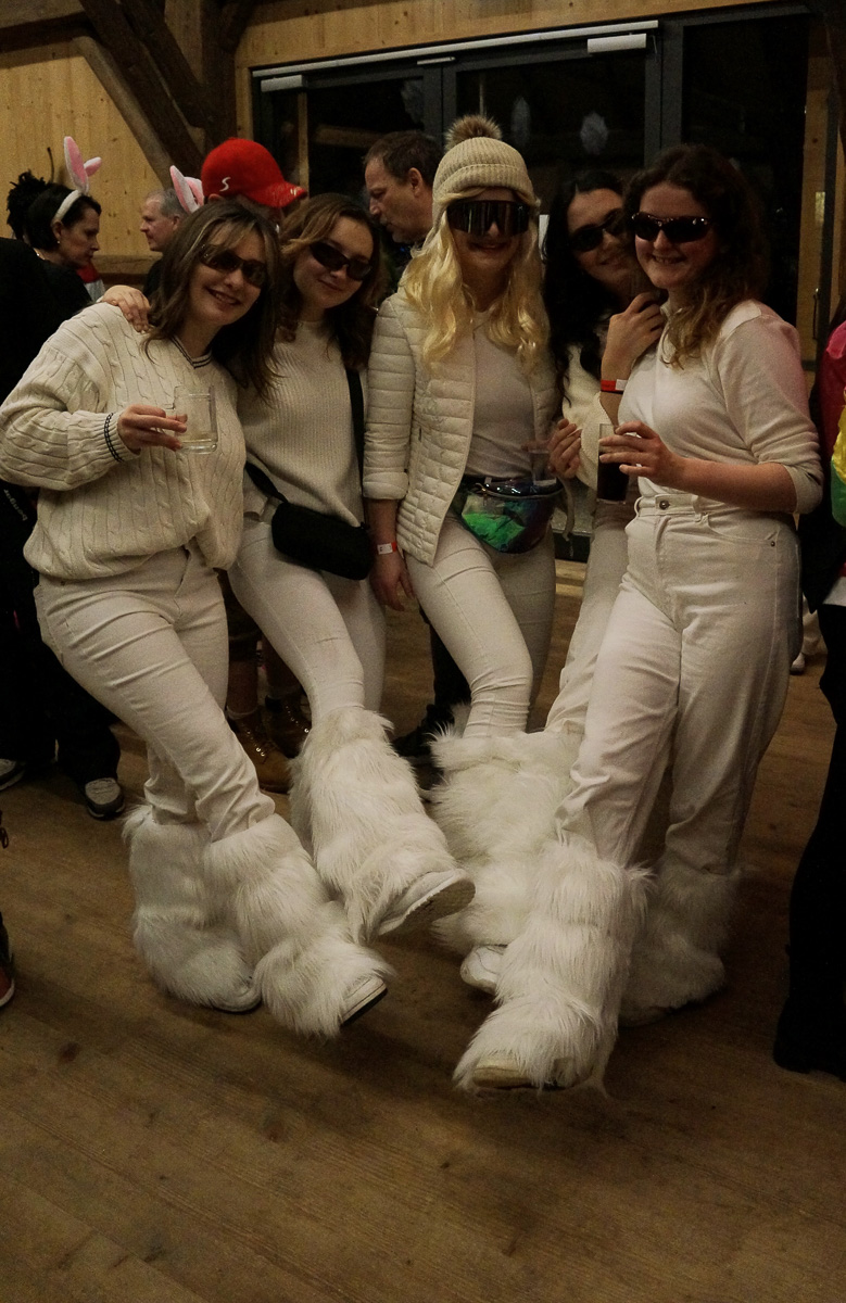 Zwei Bars, urige Dekorationen und ein perfektes Ambiente verwandelten den Kulturstadl „Moarhof“ im Zentrum von Eidenberg zu einer rustikalen Schihütte. Verköstigt wurden die zahlreichen Ballbesucher:innen standesgemäß mit Gulaschsuppe und Toast. Die Kostümierungen reichten von einfach über kreativ bis hin zu originell. Anzutreffen waren Partygäste in der Lederhose, Schifahrer:innen in altehrwürdigen Outfits und Overalls, unzählige Schihaserl sowie junge Damen, die am Gletscher zu viel Sonne abbekommen hatten. Die Schlagerstars DJ Ötzi, Antonia, Melissa Naschenweng und Andreas Gabalier schauten ebenfalls in Eidenberg vorbei. Auch Hansi Hinterseers flauschige Moon Boots wurden mehrmals gesichtet.
