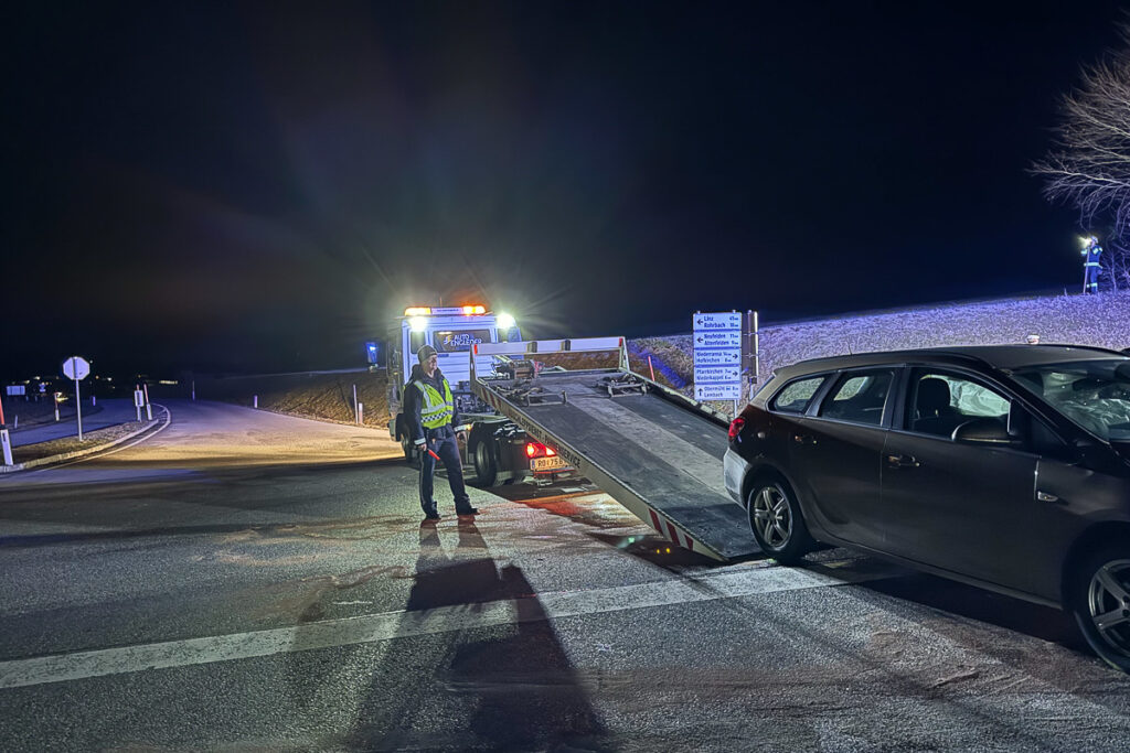 Zeitgleich musste die Falkenstein Landesstraße kurzzeitig gesperrt werden, um einen sicheren Abtransport durch das örtliche Abschleppunternehmen gewährleisten zu können.