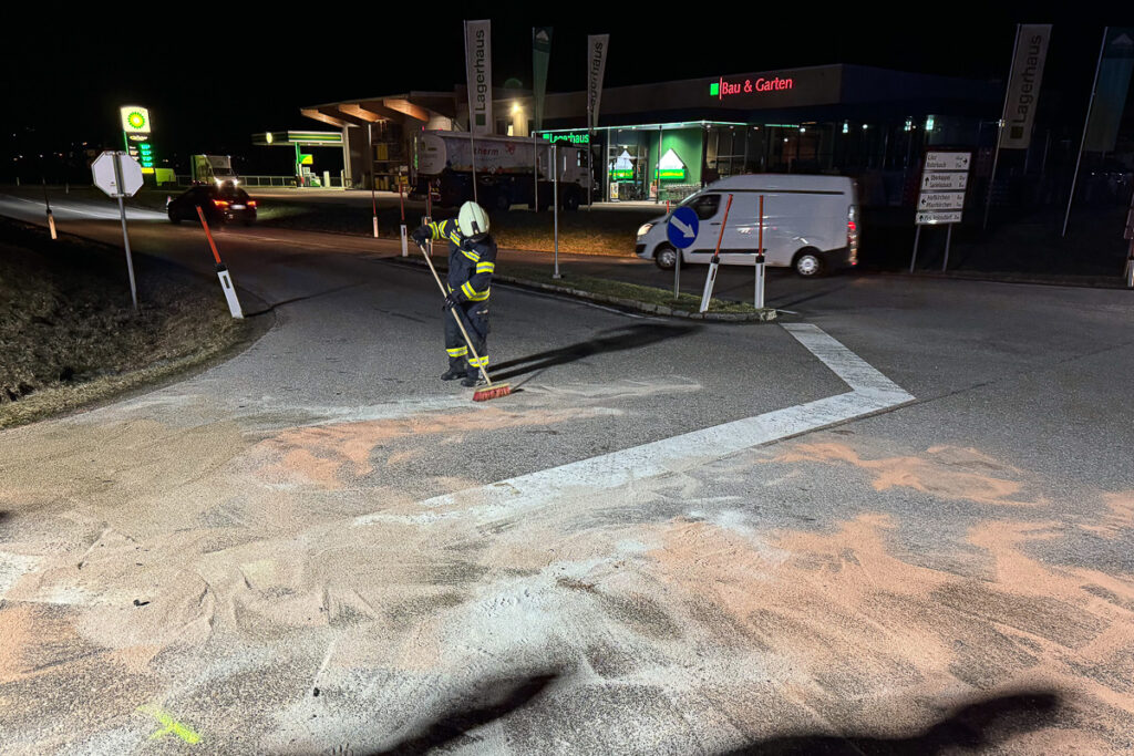 Aus einem Fahrzeug traten Betriebsmittel aus, die durch uns gebunden wurden.