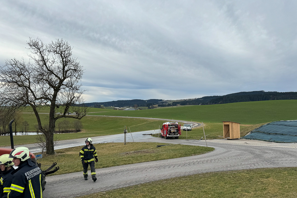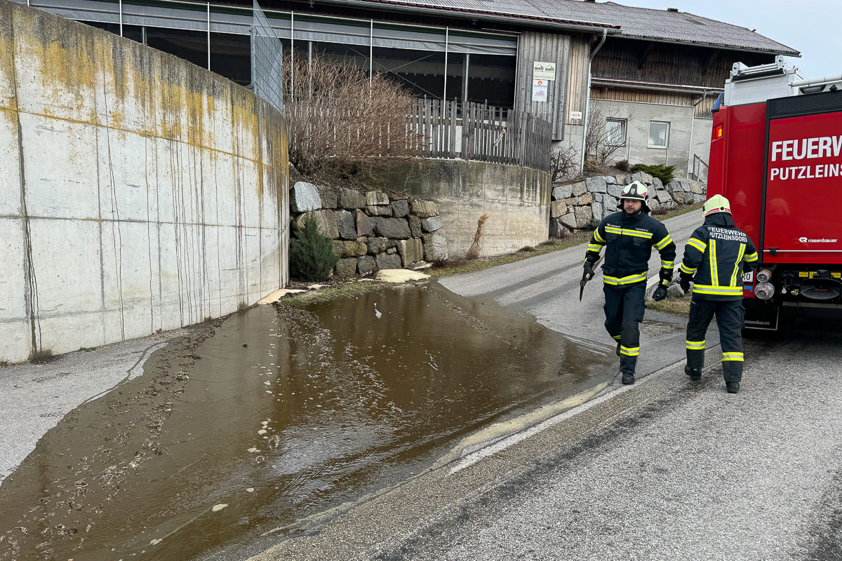 Durch einen technischen Defekt lief eine Güllegrube über. Die Jauche lief über die Straße und drohte in einen angrenzenden Teich zu fließen. Die FF Putzleinsdorf leitete die Jauche um, um dies zu verhindern. Auch bei diesem Einsatz war eine kurzzeitige Totalsperre unumgänglich. Nach Rücksprache mit der BH Rohrbach wurde die Jauche durch ortsansässige Bauern in eine andere Güllegrube umgelagert, da ein Ausbringen auf die eigenen Felder erst ab 15.Februar wieder erlaubt ist. Insgesamt standen wir heute mit rund 30 Kameraden rund 4h im Einsatz.