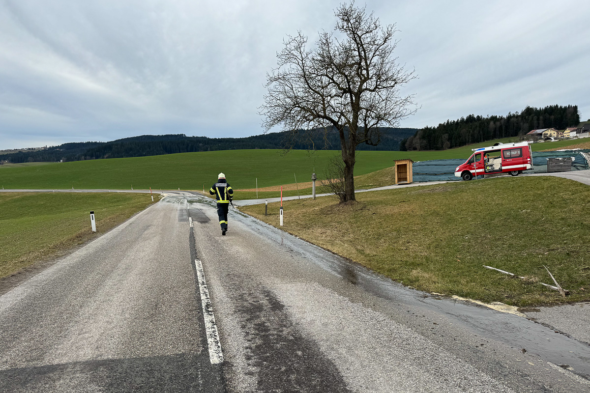 Während der Reinigungsarbeiten im Feuerwehrhaus, nach dem Verkehrsunfall, heulte um 11:13 abermals die Sirene in Putzleinsdorf. Die Kameraden rückten umgehend zum nächsten Einsatz aus.