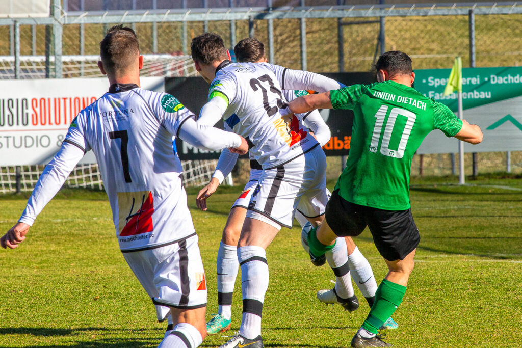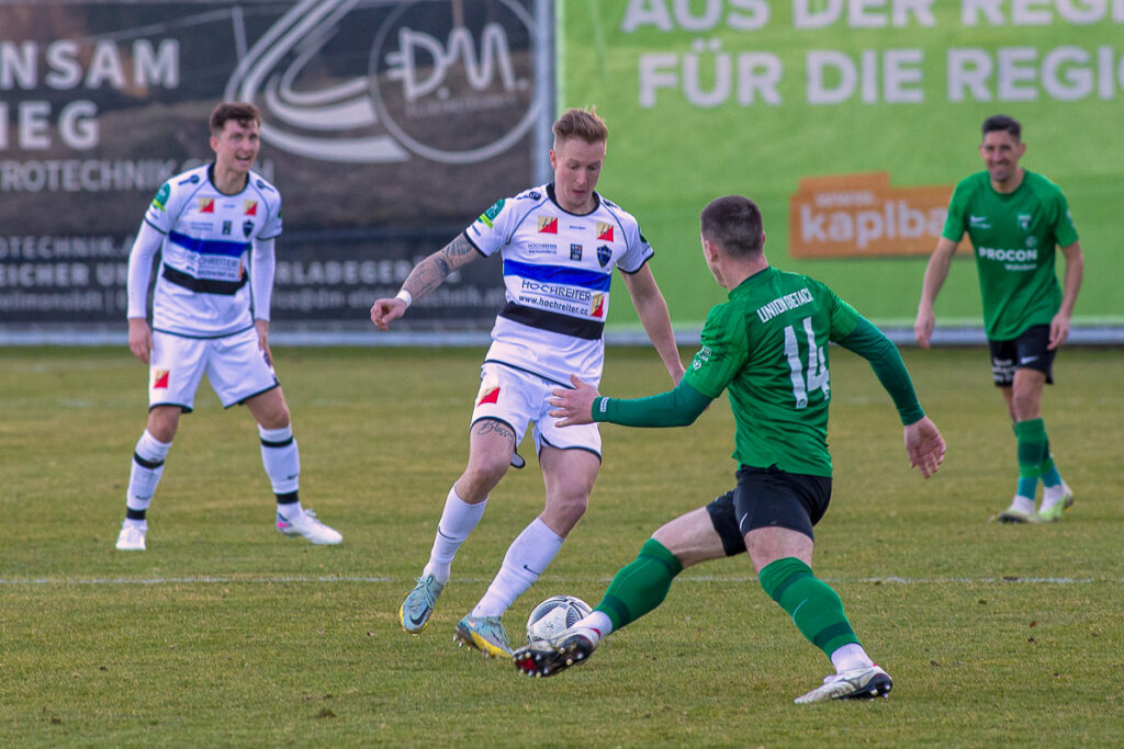 Mit einem 0:2 (0:1) gegen Dietach musste die SU Vortuna Bad Leonfelden im ersten Frühjahrs-Heimspiel der LT1 OÖ. Liga eine Niederlage hinnehmen. Der Tabellenzweite aus dem Bezirk Steyr-Land präsentierte sich dabei über weite Strecken als das bessere Team: Körperlich robust und technisch beschlagen ließen die Gäste die Hausherren kaum ins Spiel kommen und gingen vor 350 Zuschauern letztlich als nicht unverdienter Sieger vom Platz. Denis Berisha brachte die Dietacher in Minute 15 nach einem Freistoß in Führung, der zweite Treffer gelang Alberto Prada-Vega in der Schlussminute. In der Nachspielzeit sah Luka Valentic (Dietach) nach einem Foul noch die Rote Karte. Schon zuvor wurde der neue Bad Leonfeldner Co-Trainer Florian Froschauer nach einer Unsportlichkeit des Feldes verwiesen.
