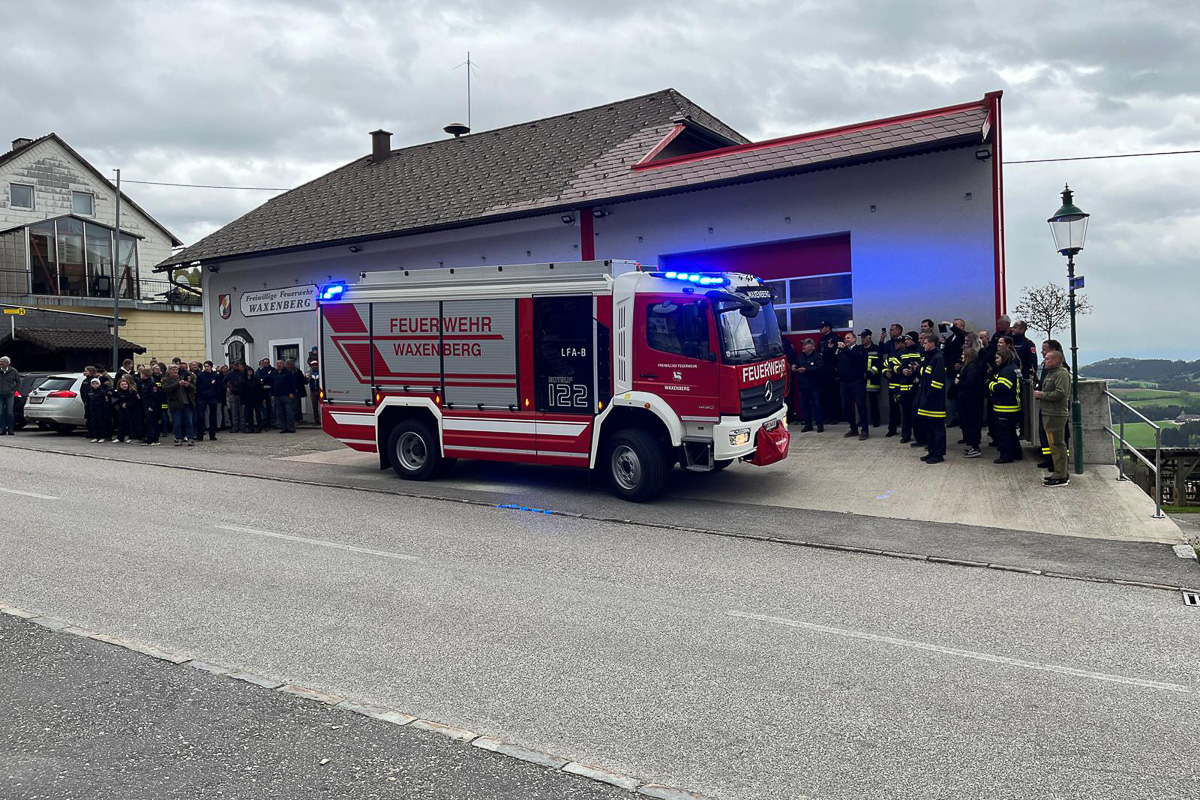 Ein bedeutender Tag für die Freiwillige Feuerwehr Waxenberg: Am 16. April wurde das lang erwartete neue Löschfahrzeug (LFA-B) feierlich in Empfang genommen. Das Fahrzeug, hergestellt von der renommierten Firma Rosenbauer, repräsentiert einen wichtigen Schritt in der Modernisierung der Feuerwehrtechnik und Sicherheitsausstattung der Gemeinde.
