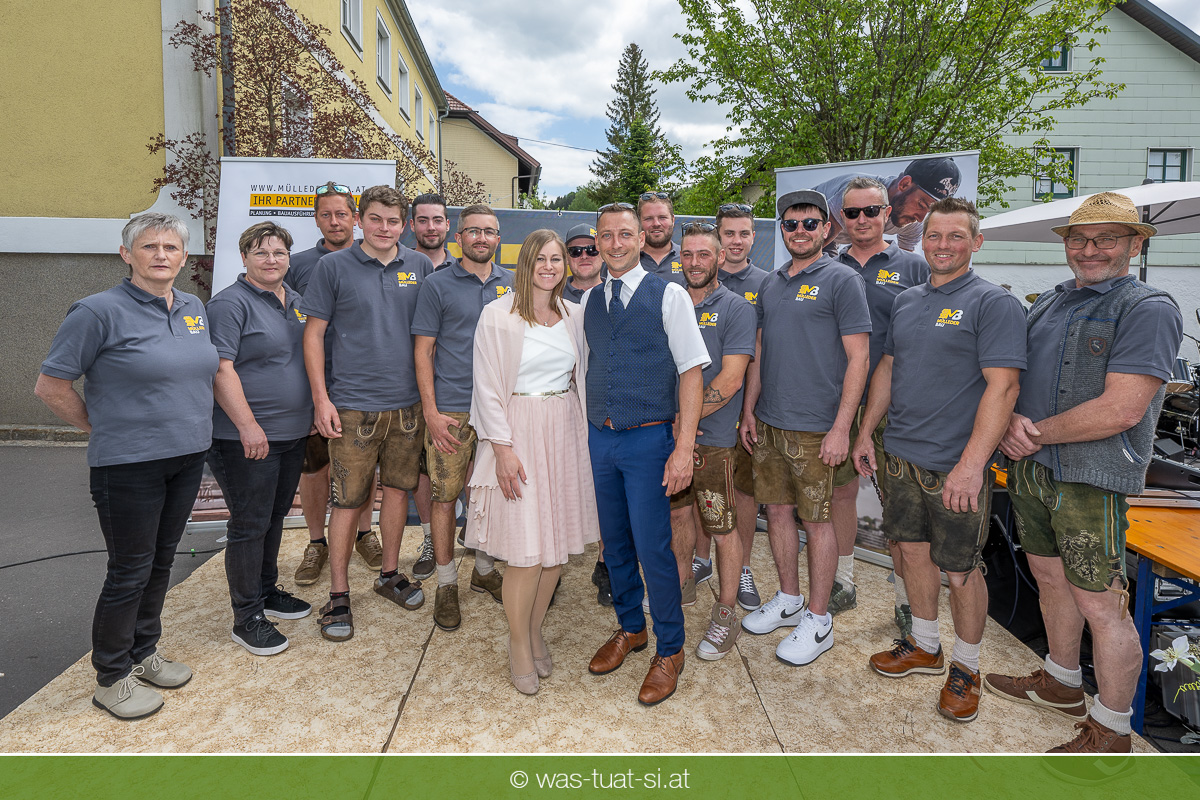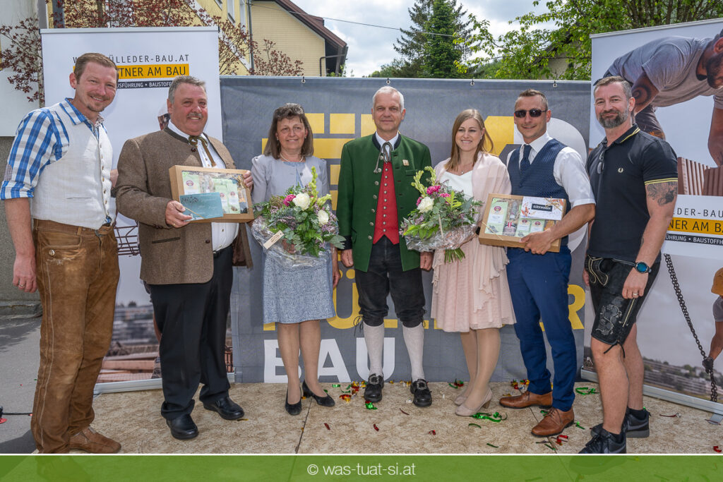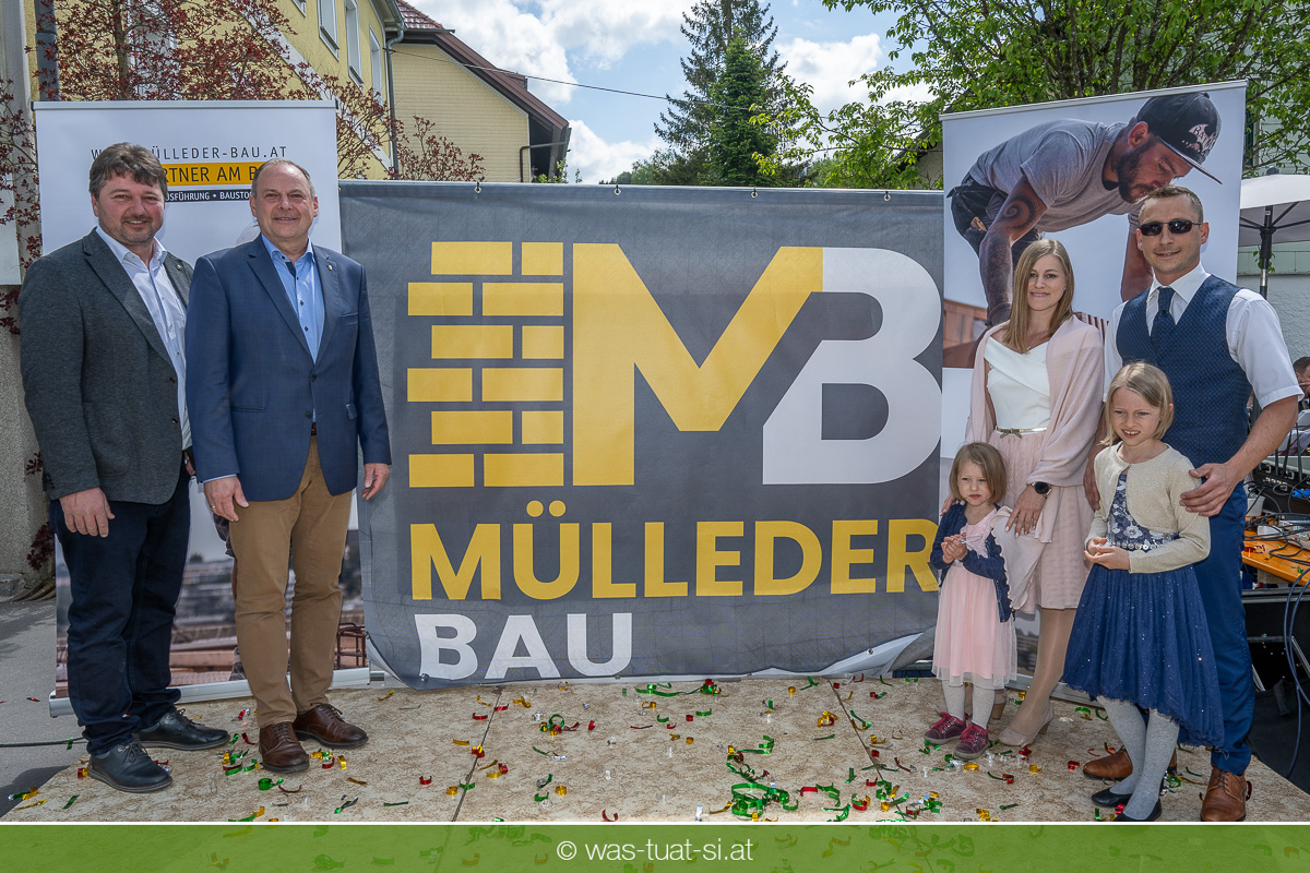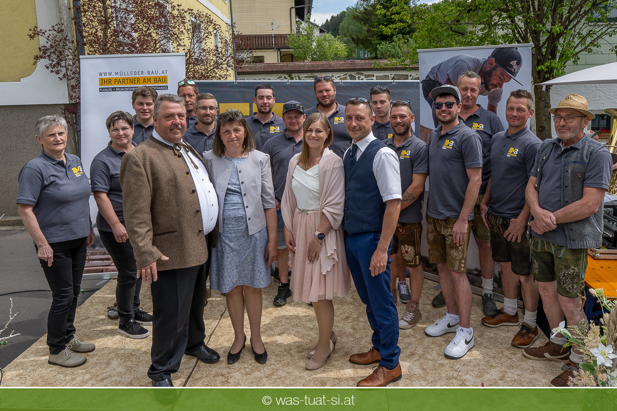 Ein großes Danke ging zudem an die 18 Mitarbeiter der Mülleder Bau GmbH – viele von ihnen sind dem Unternehmen bereits jahrelang verbunden – sowie an die Unterstützung seitens der Familie, insbesondere durch Anna und Jasmine Mülleder. Um den geistlichen Segen kümmerte sich Pater Otto Rothammer mit einer kurzen Feierstunde, für die musikalische Umrahmung sorgte der Musikverein Vorderweißenbach sowie nachmittags „Bacadi Brass“. – Anzeige