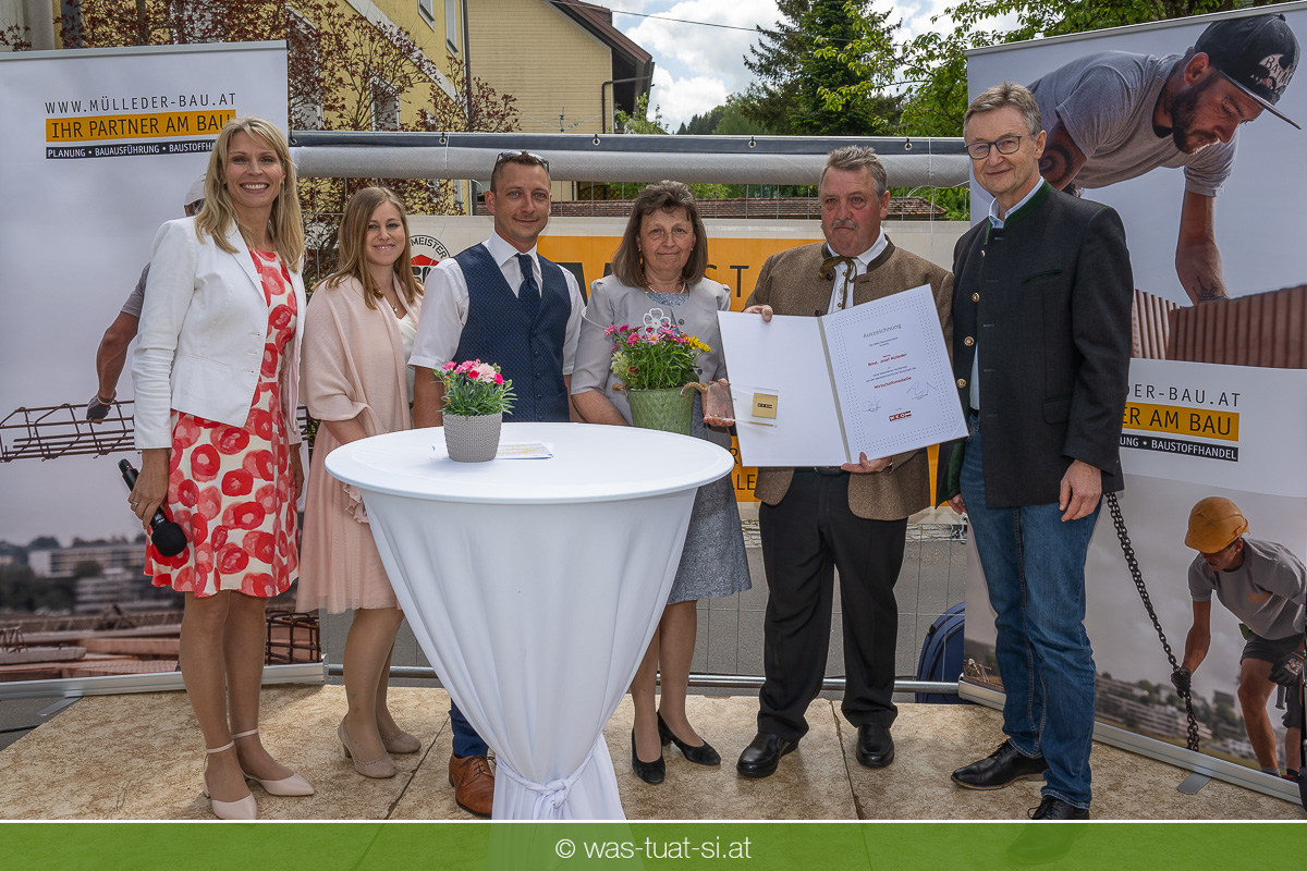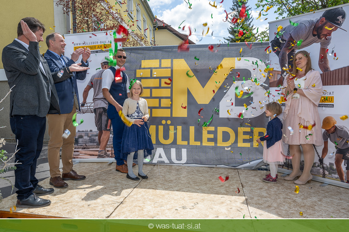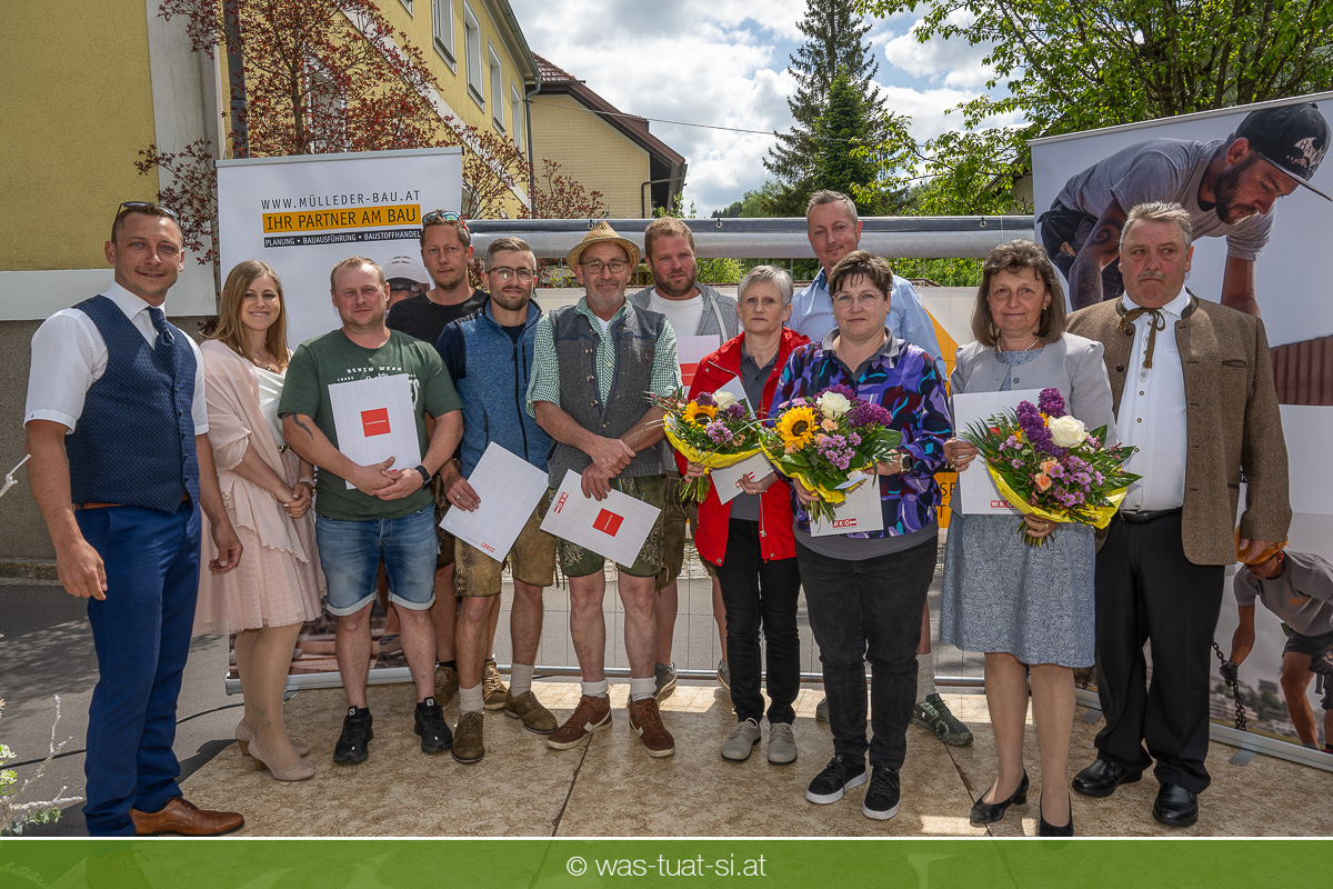 Ein großes Danke ging zudem an die 18 Mitarbeiter der Mülleder Bau GmbH – viele von ihnen sind dem Unternehmen bereits jahrelang verbunden – sowie an die Unterstützung seitens der Familie, insbesondere durch Anna und Jasmine Mülleder. Um den geistlichen Segen kümmerte sich Pater Otto Rothammer mit einer kurzen Feierstunde, für die musikalische Umrahmung sorgte der Musikverein Vorderweißenbach sowie nachmittags „Bacadi Brass“. – Anzeige