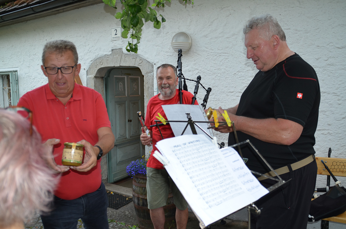 Musikalisch umrahmt wurde die Veranstaltung von einem Dudelsack-Trio, Franz Fink, Karl Pötscher und Irmi Vogler, die wesentlich zur Gestaltung dieser Feier beitrugen.