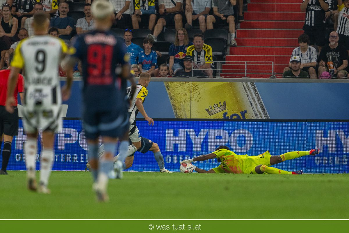 Weil Branko Jovicic bereits gelb vorbelastet war, blieb der Mittelfeldmann in der Kabine, während EM-Teilnehmer und Olympia-Starter Maksym Talovierov sein Saisondebüt feierte. In den Minuten nach Wiederbeginn blieben die Oberösterreicher am Drücker und setzten sich zwischendurch sogar in der gegnerischen Hälfte fest. Bei einem Abschluss von Sascha Horvath musste sich Blaswich strecken (58.), zuvor hatten die Schwarz-Weißen eine aussichtsreiche Überzahlsituation nicht gut zu Ende gespielt. Just in dieser Phase schlugen die Gäste aus Salzburg zu: Joker Osca Gloukh bediente den ebenfalls gerade eingewechselten Moussa Yeo, der seinem Bewacher entwischte und aus kurzer Distanz zum 0:1 einnetzte (64.).