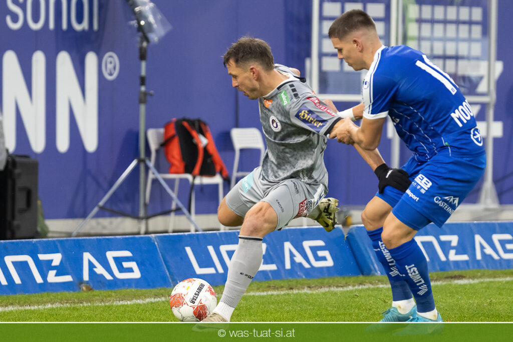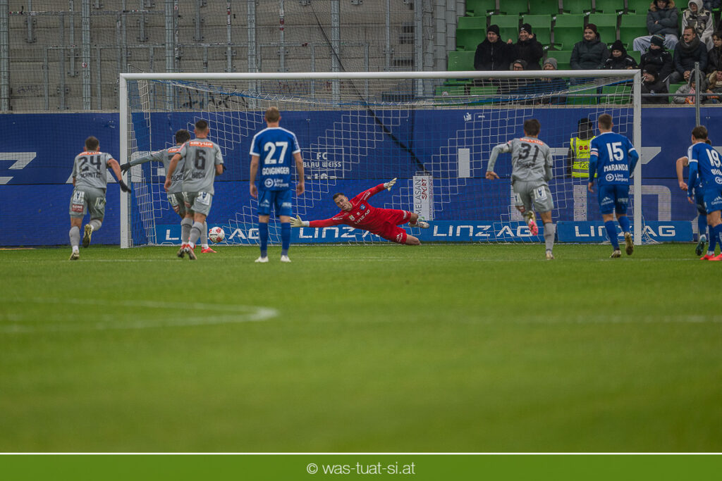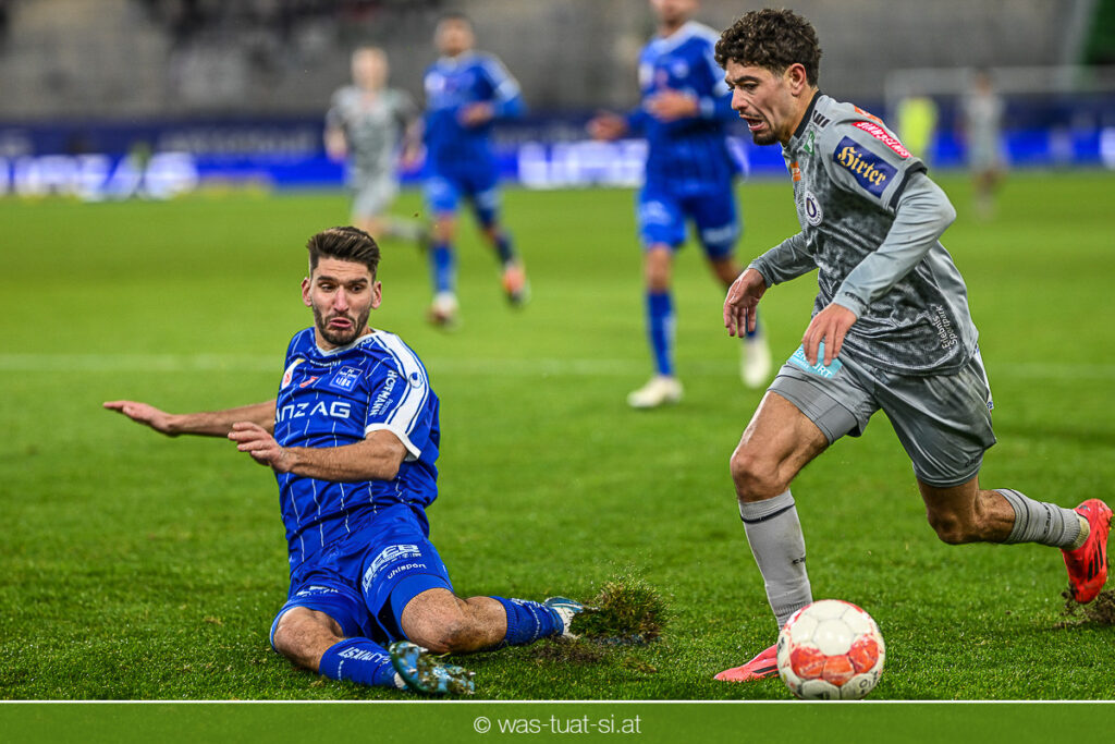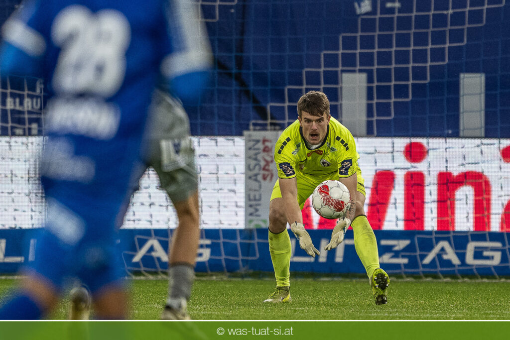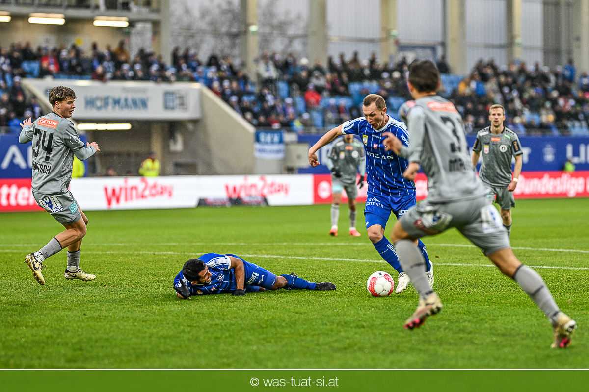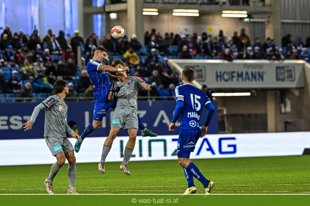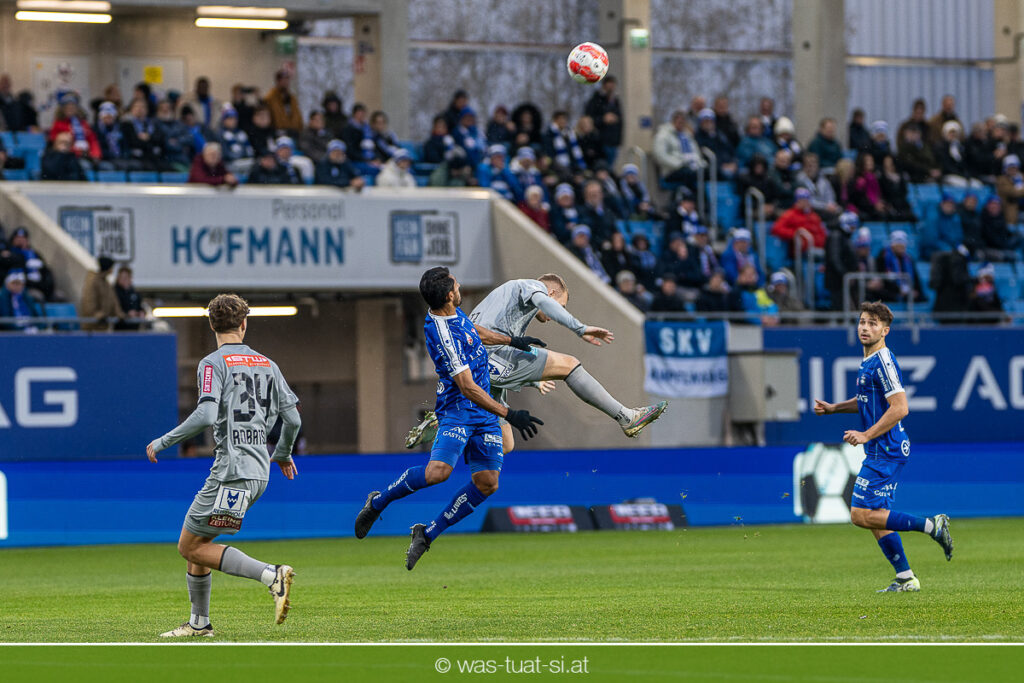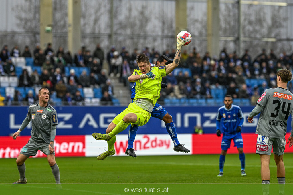 Aufregung dann in der 21. Minute, als Schiedsrichter Jakob Semler auf einmal auf den Punkt zeigte. Alem Pasic kam gegen Bobzien im Strafraum etwas zu spät – ein Elfer war die Folge, der Gefoulte selbst ließ sich nicht zwei Mal bitten und stellte auf 1:0. Schnell aber hatten die Blau-Weißen die Köpfe wieder oben, konnten die Pacult-Elf wieder unter Druck setzen und kamen in der 33. Minute zum Ausgleich über Goiginger. Hatten zumindest die Zuschauer schon geglaubt – doch nach langem VAR-Check wurde der Treffer wegen eines vermeintlichen Foulspiels von Ronivaldo an Keeper Spari zurückgenommen – eine sehr harte Entscheidung.
