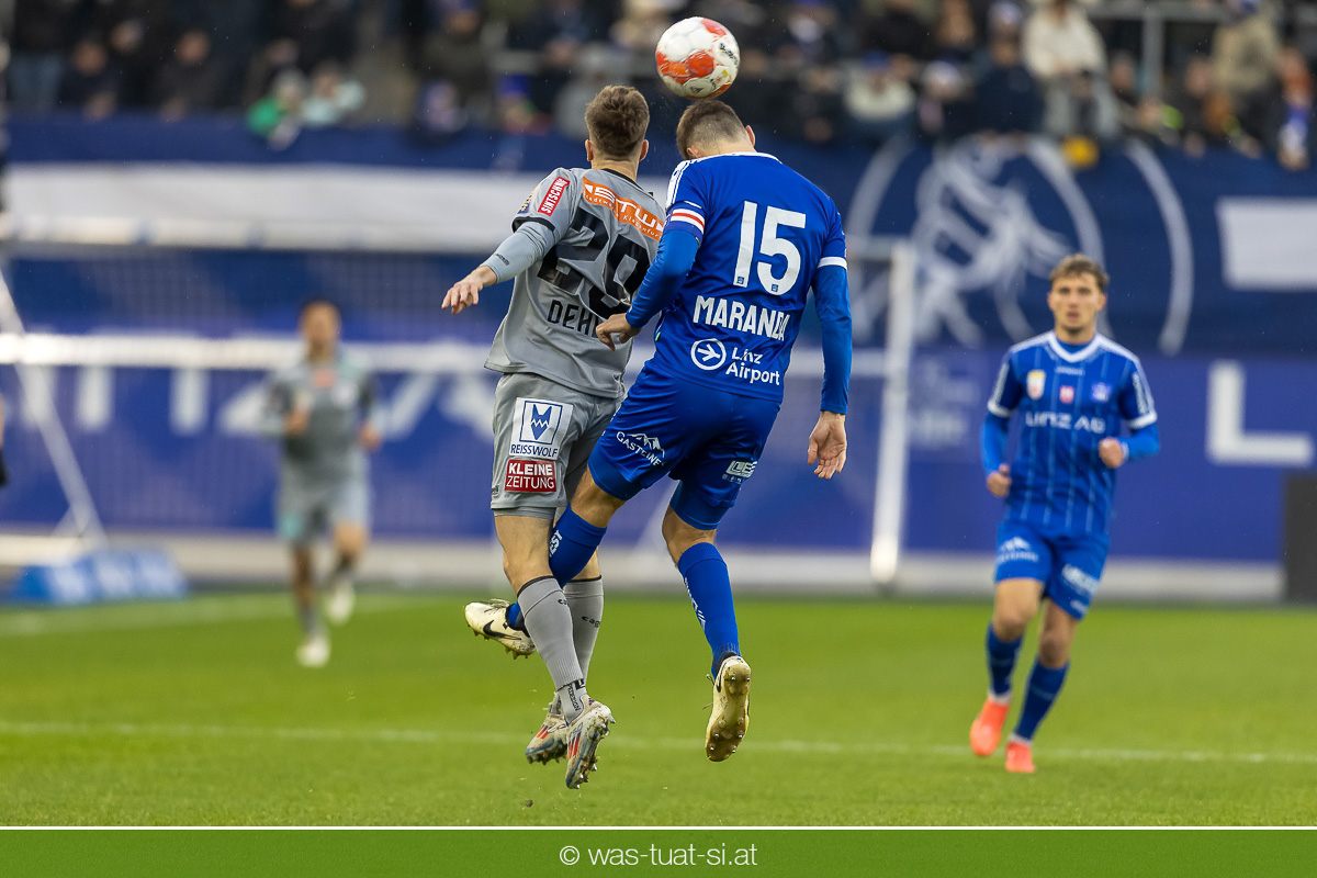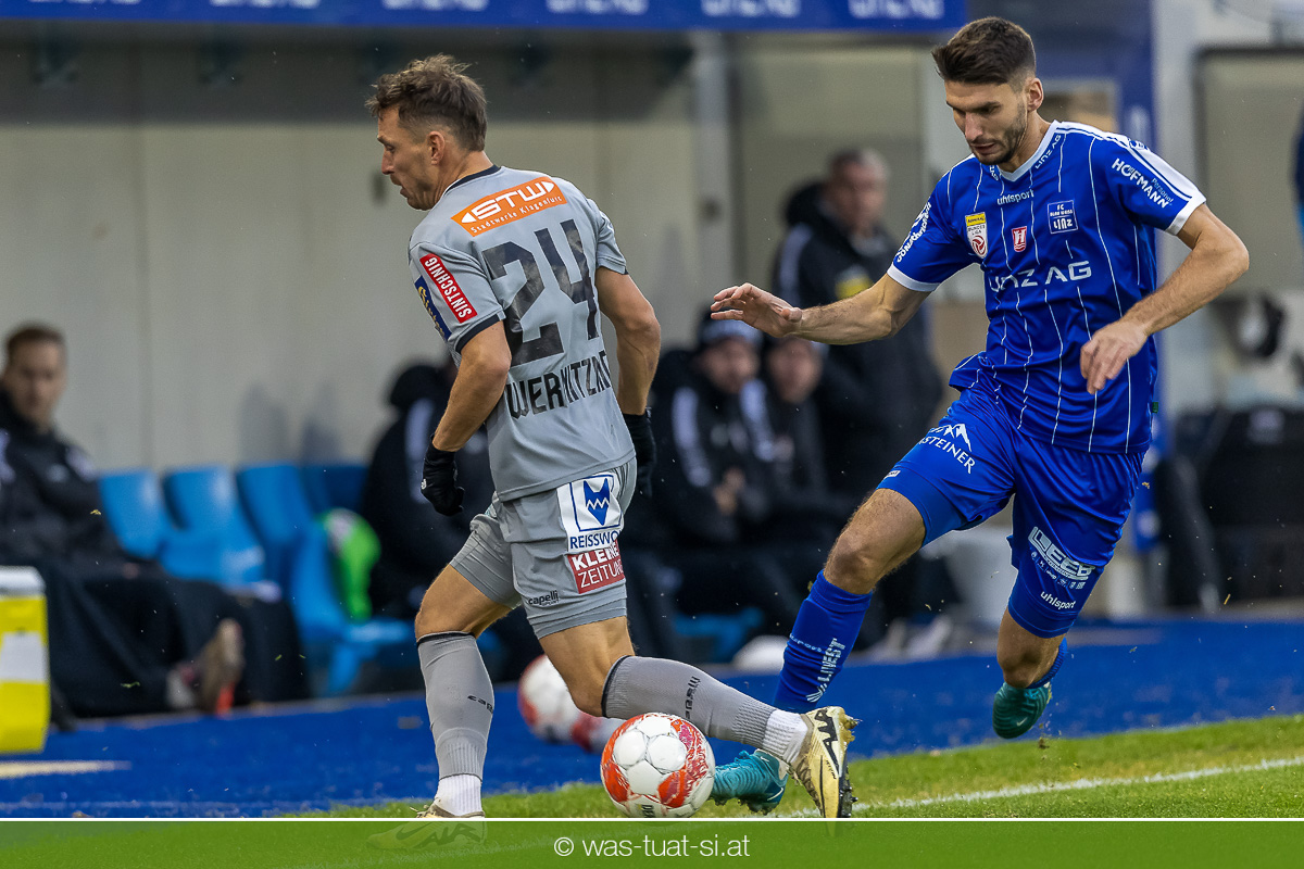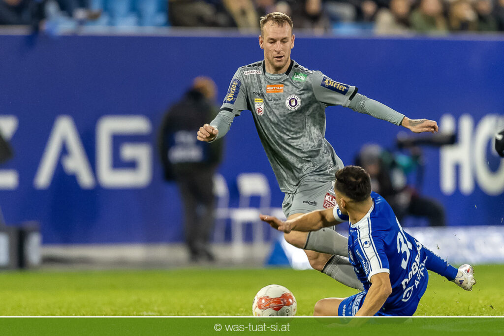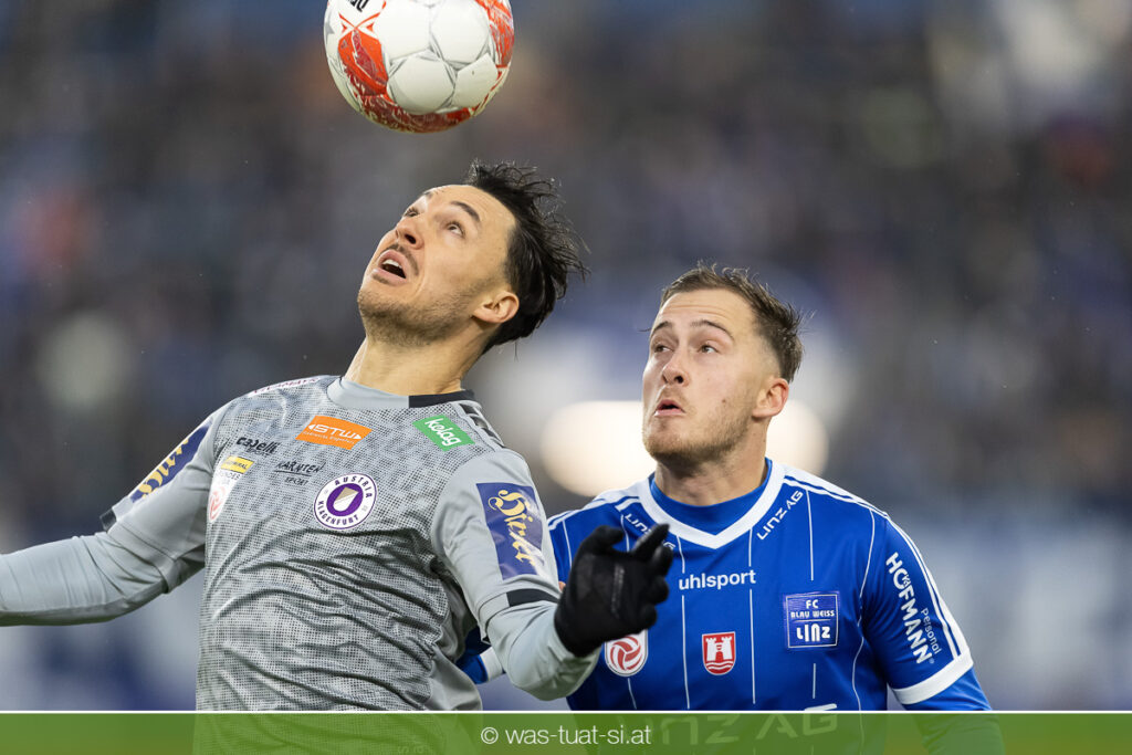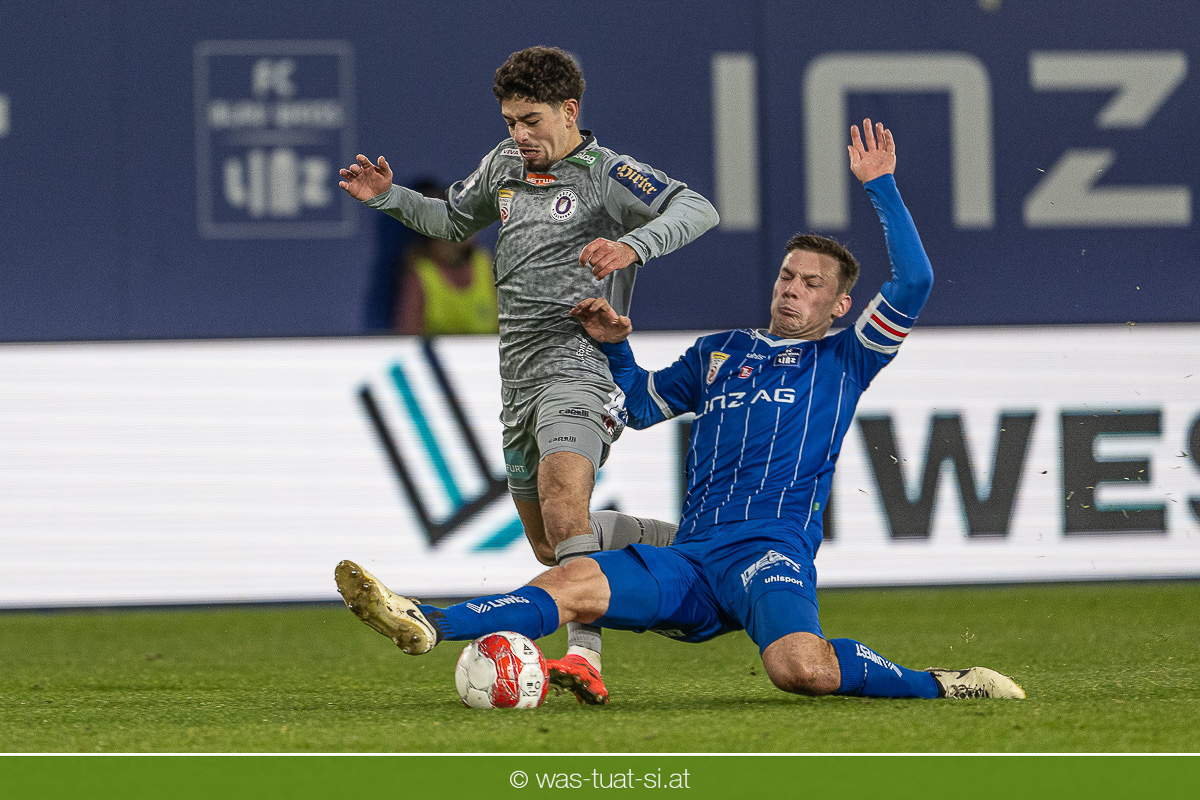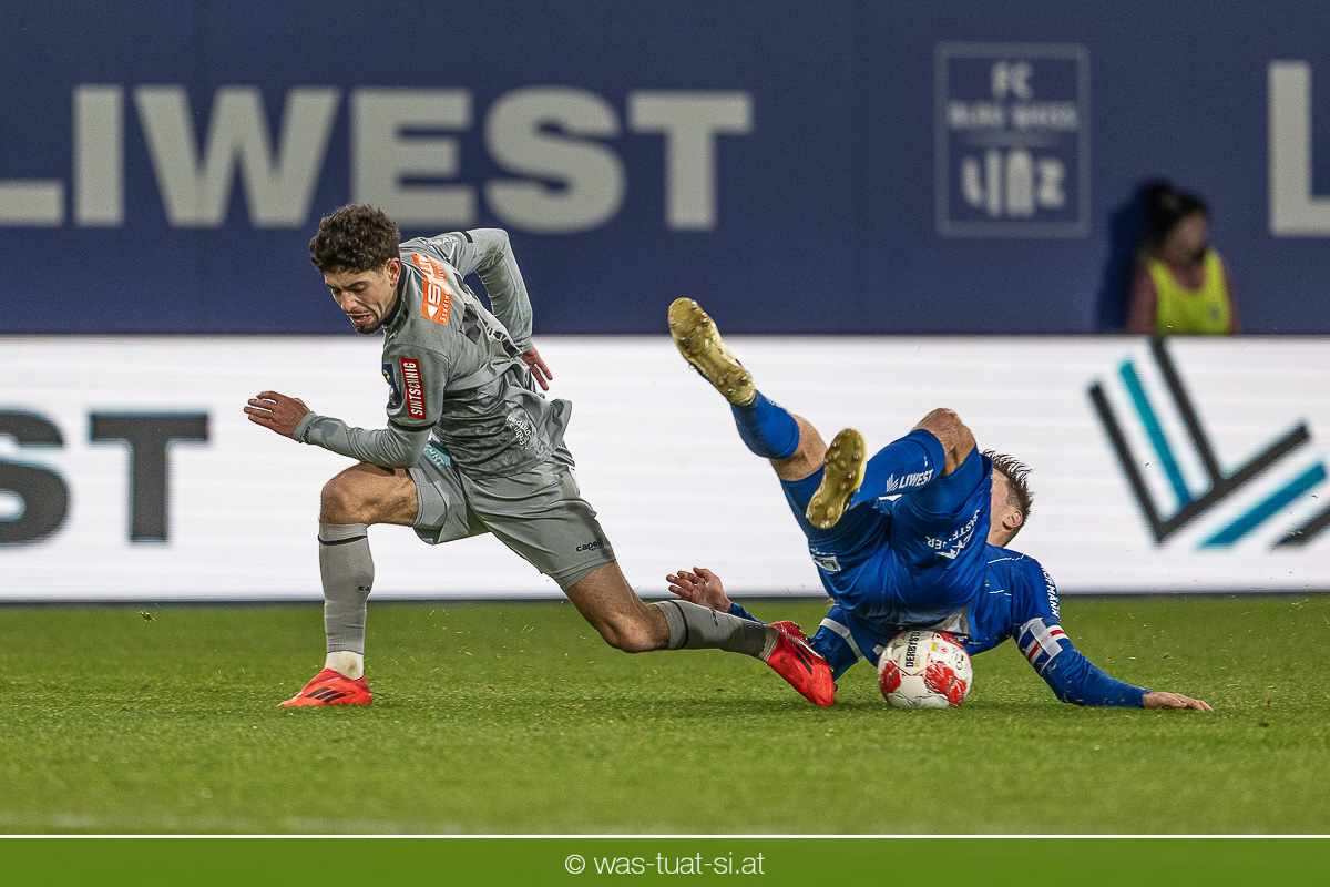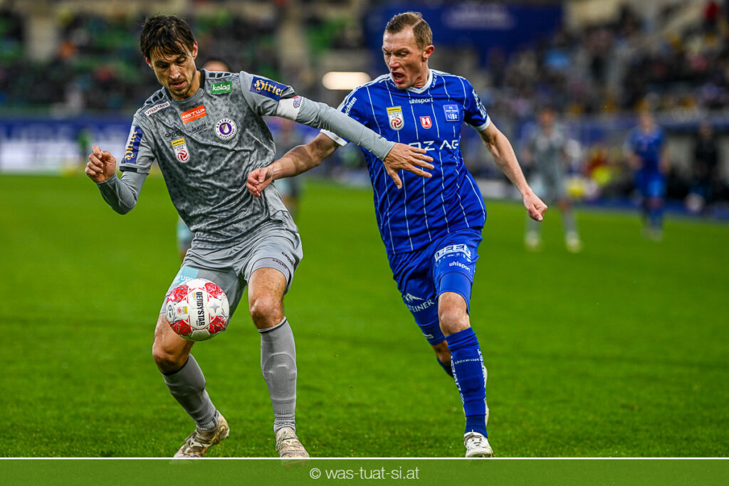 Aufregung dann in der 21. Minute, als Schiedsrichter Jakob Semler auf einmal auf den Punkt zeigte. Alem Pasic kam gegen Bobzien im Strafraum etwas zu spät – ein Elfer war die Folge, der Gefoulte selbst ließ sich nicht zwei Mal bitten und stellte auf 1:0. Schnell aber hatten die Blau-Weißen die Köpfe wieder oben, konnten die Pacult-Elf wieder unter Druck setzen und kamen in der 33. Minute zum Ausgleich über Goiginger. Hatten zumindest die Zuschauer schon geglaubt – doch nach langem VAR-Check wurde der Treffer wegen eines vermeintlichen Foulspiels von Ronivaldo an Keeper Spari zurückgenommen – eine sehr harte Entscheidung.