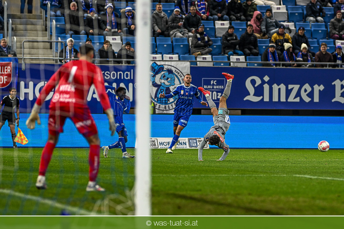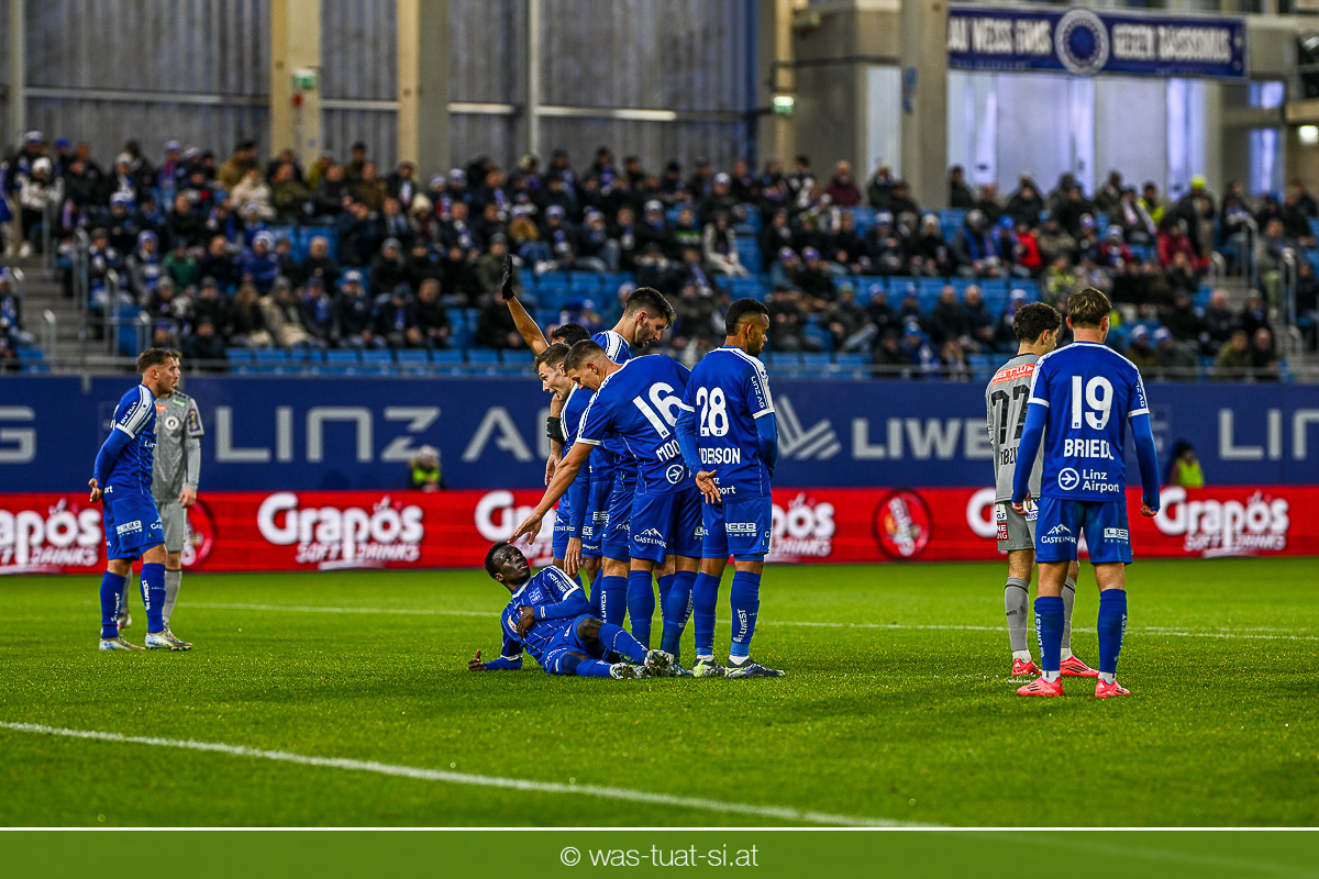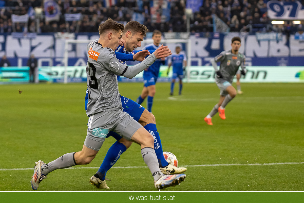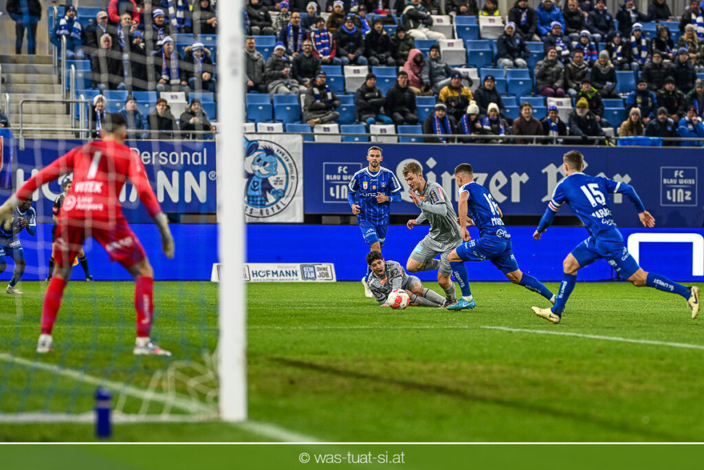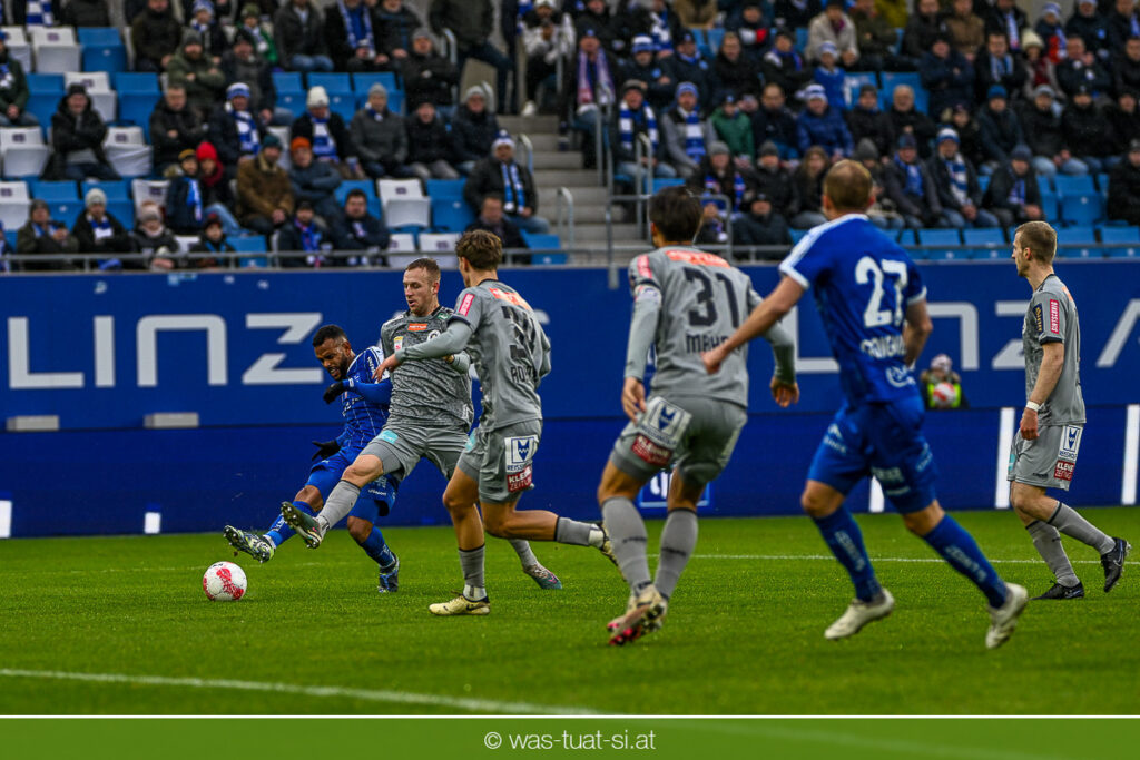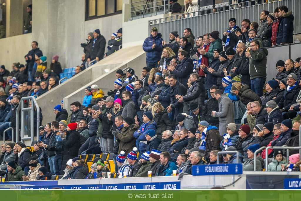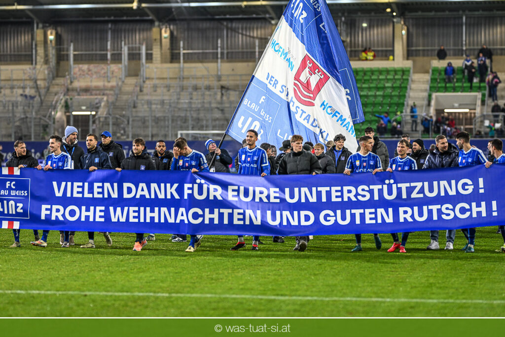 Auch in der Schlussphase ein unverändertes Bild! Klagenfurt rannte an – Linz verteidigte mit Mann und Maus und brachte am Ende das knappe Resultat über die Zeit. Unsere Mannschaft wollte diesen so wichtigen Sieg heute unbedingt und das hat man bis in die 93. Minute gespürt. Am Ende großer Jubel auf und neben dem Platz! Blau-Weiß Linz überwintert in den TOP 6.