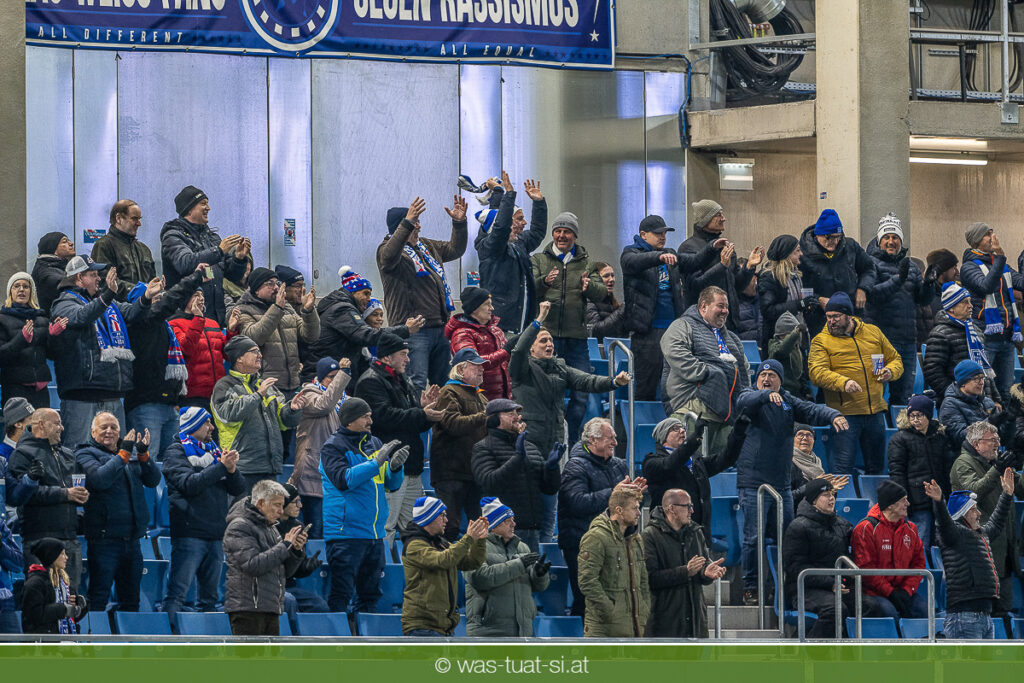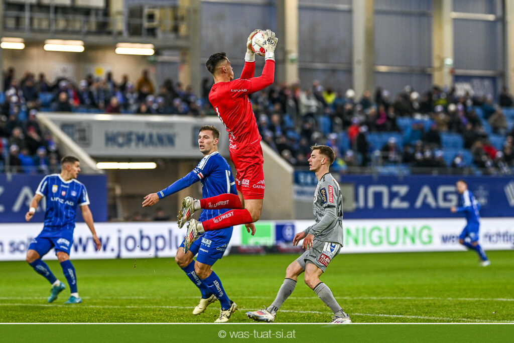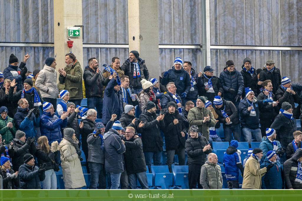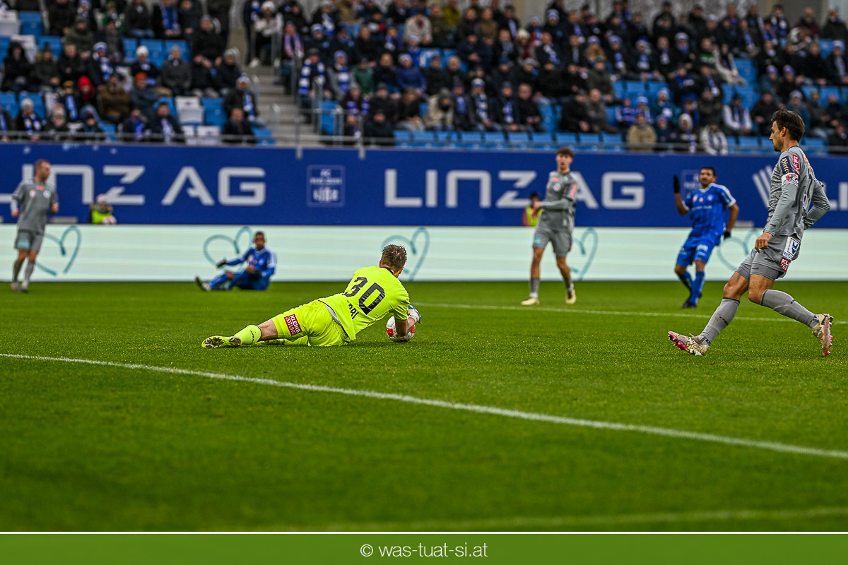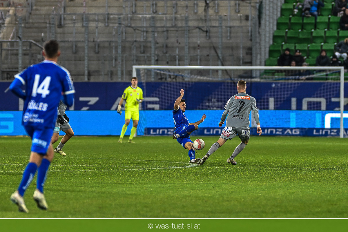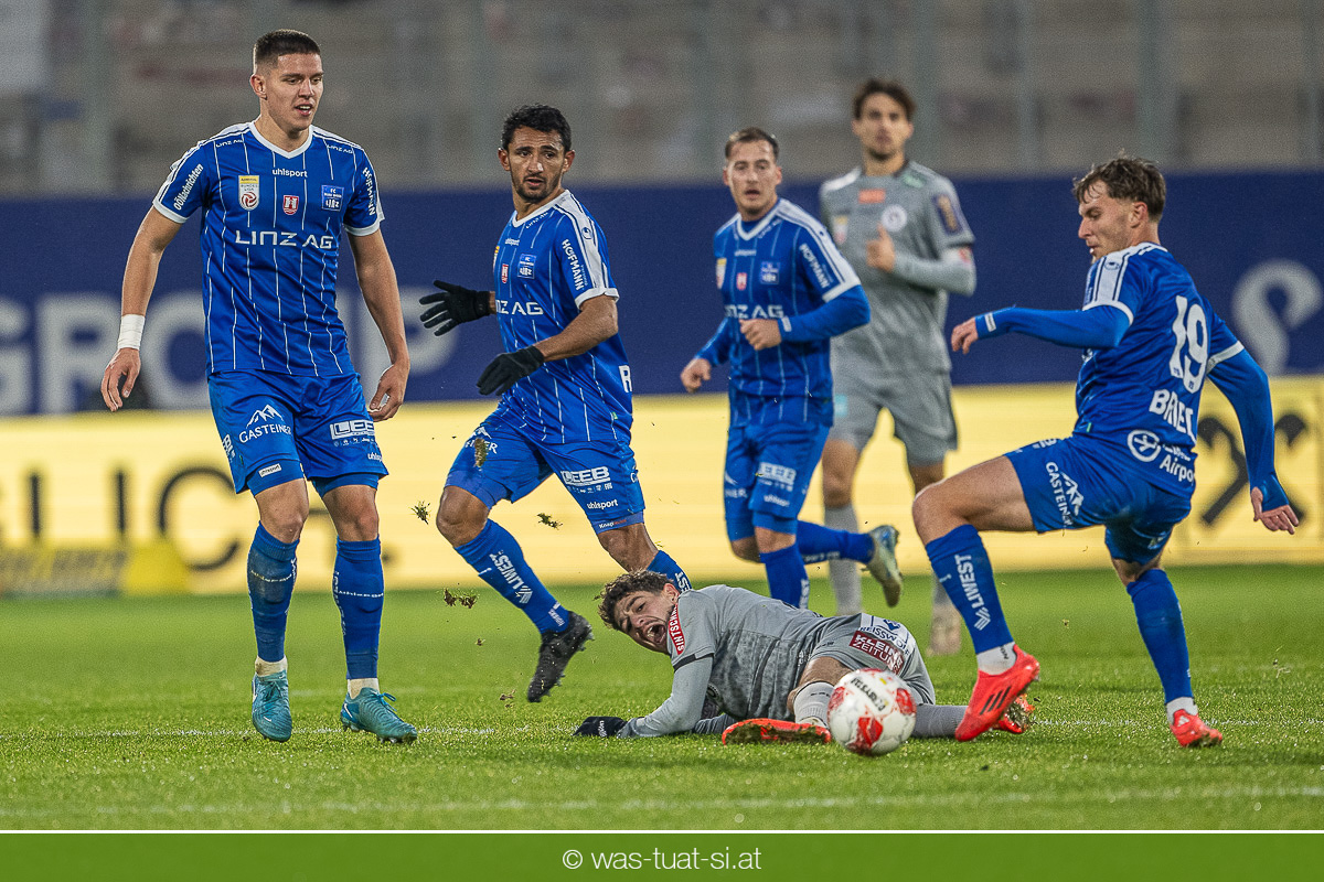 Auch in der Schlussphase ein unverändertes Bild! Klagenfurt rannte an – Linz verteidigte mit Mann und Maus und brachte am Ende das knappe Resultat über die Zeit. Unsere Mannschaft wollte diesen so wichtigen Sieg heute unbedingt und das hat man bis in die 93. Minute gespürt. Am Ende großer Jubel auf und neben dem Platz! Blau-Weiß Linz überwintert in den TOP 6.