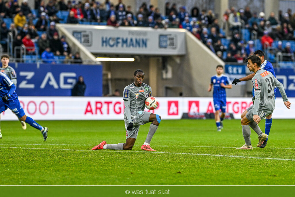 Ein ähnliches Bild auch im zweiten Abschnitt, wo Noß anstelle von Seidl begann. Viel Kampf auf beiden Seiten – die Intensität hielt Bestand und in der 66. Minute gab es für die rund 4.800 Besucher richtig Grund zum Jubeln. Pasic mit der Balleroberung und dem Auge für Goiginger, der legte ideal ab für Ronivaldo und dann war die Partie mit dem Doppelpack unserer Nummer 9 endgültig gedreht.