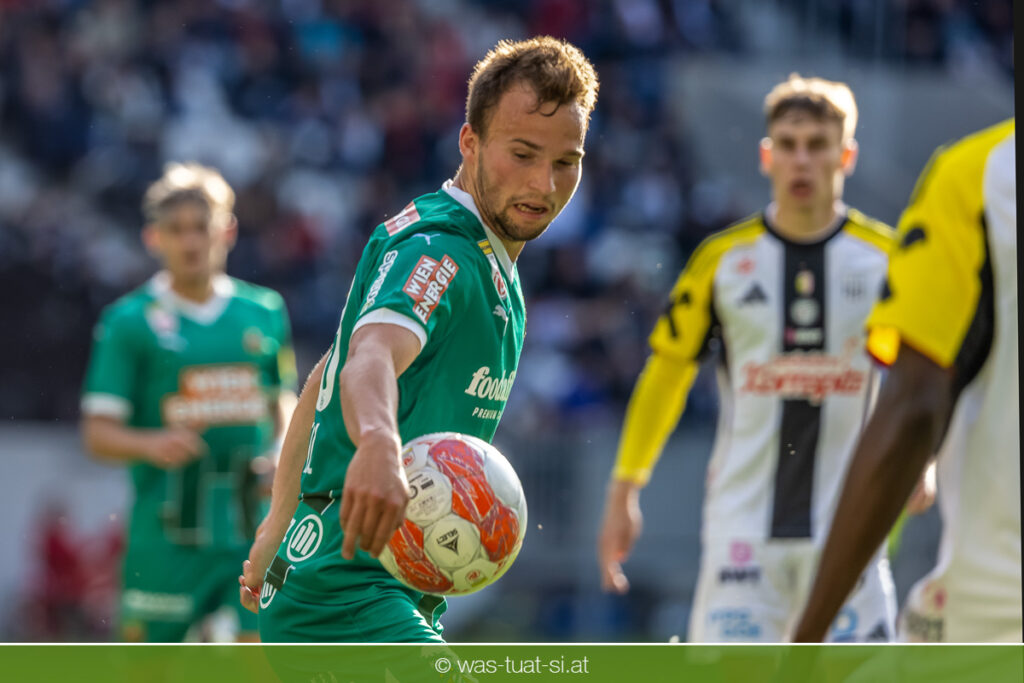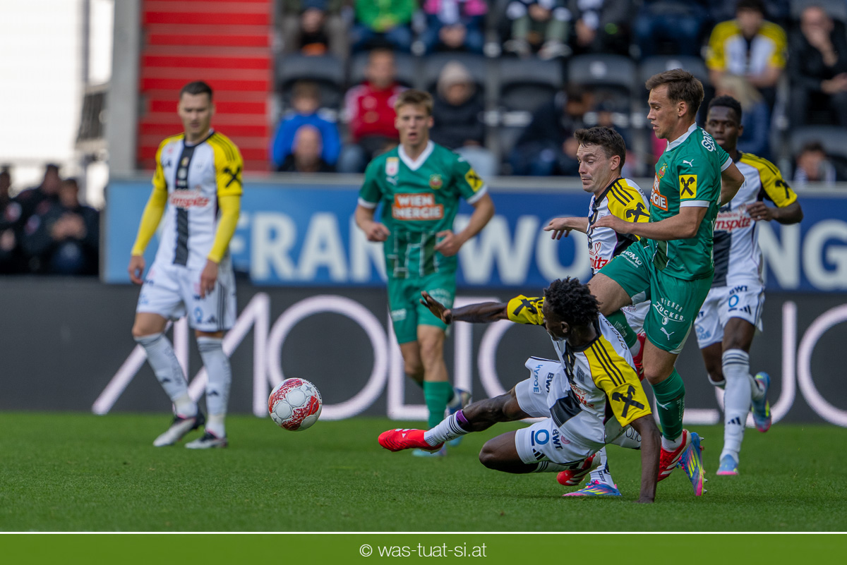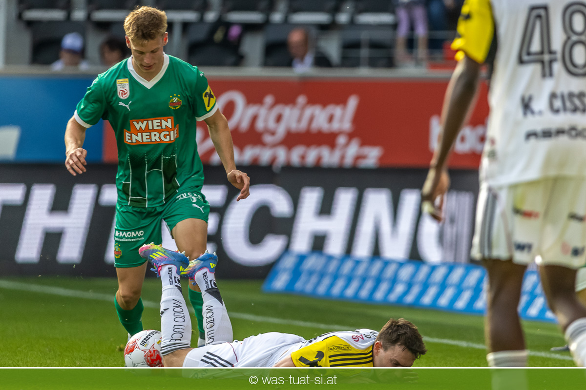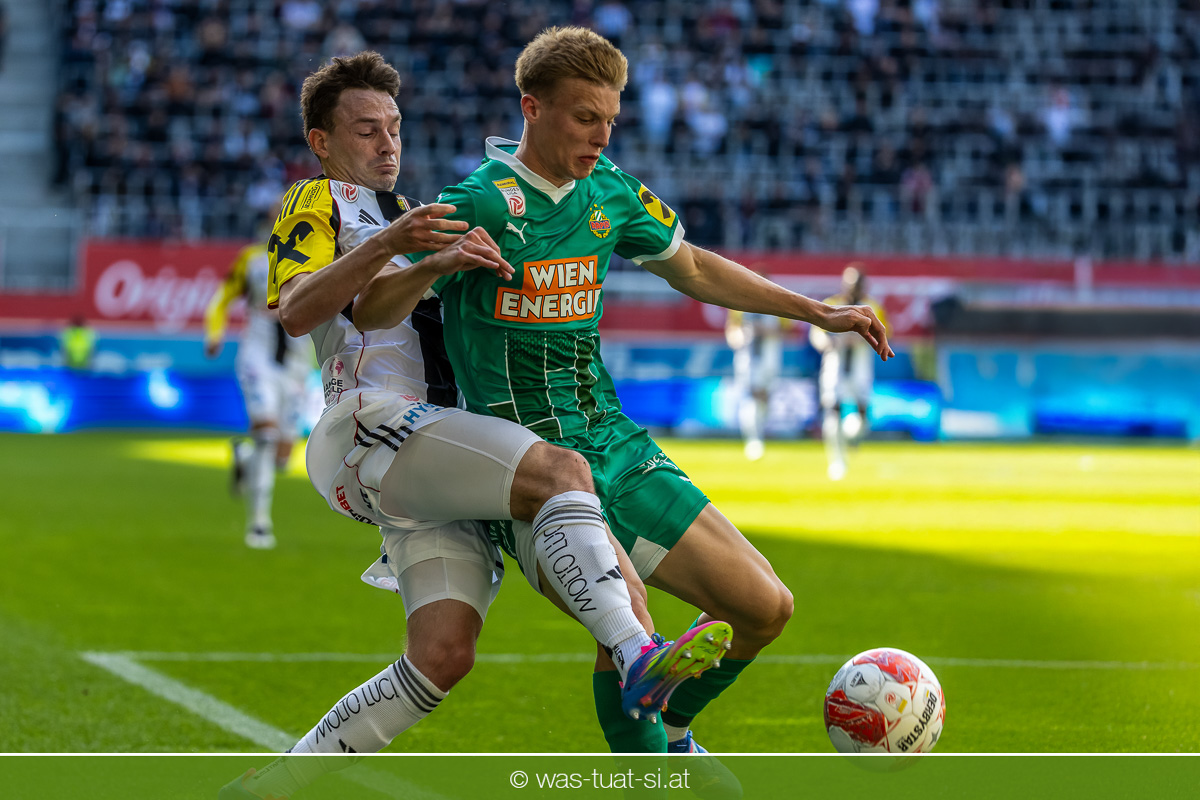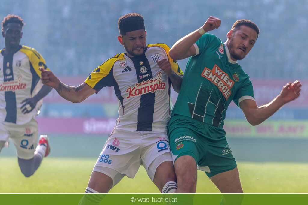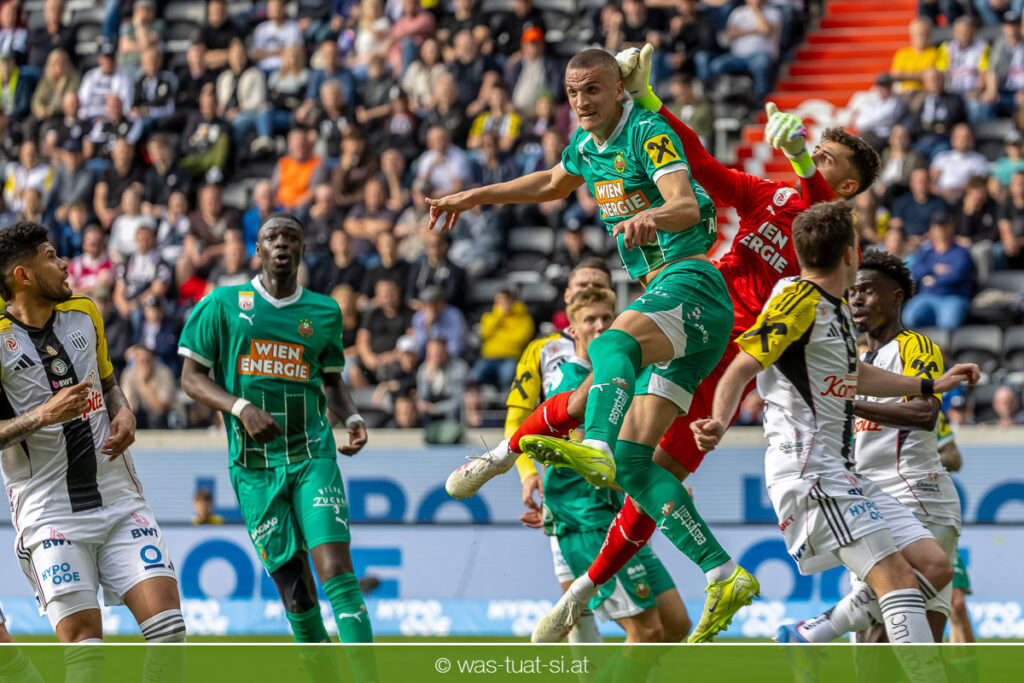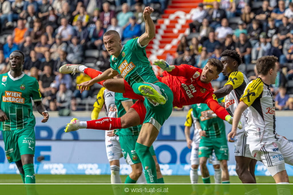 Während Andres Andrade nach 21 Minuten per Kopf das 2:0 verpasste, kamen die Hütteldorfer plötzlich aus dem Nichts zurück ins Spiel. Nach einem Abspielfehler im eigenen Drittel wertete Referee Alexander Harkam einen Zweikampf im Sechzehner als regelwidrig – eine Entscheidung, an der auch der Video-Schiedsrichter nichts auszusetzen hatte. Matthias Seidl verwandelte den Elfmeter zum 1:1 (25.). Ein Dämpfer, an dem die Mannschaft einige Minuten zu knabbern hatte. Plötzlich kam Rapid auf und zu weiteren Gelegenheiten, wie einem abgerissenen Wurmbrand-Versuch an die Latte (28.) sowie einer Großchance von Guido Burgstaller aus kurzer Distanz, bei der Tobias Lawal glänzend parierte (42.).