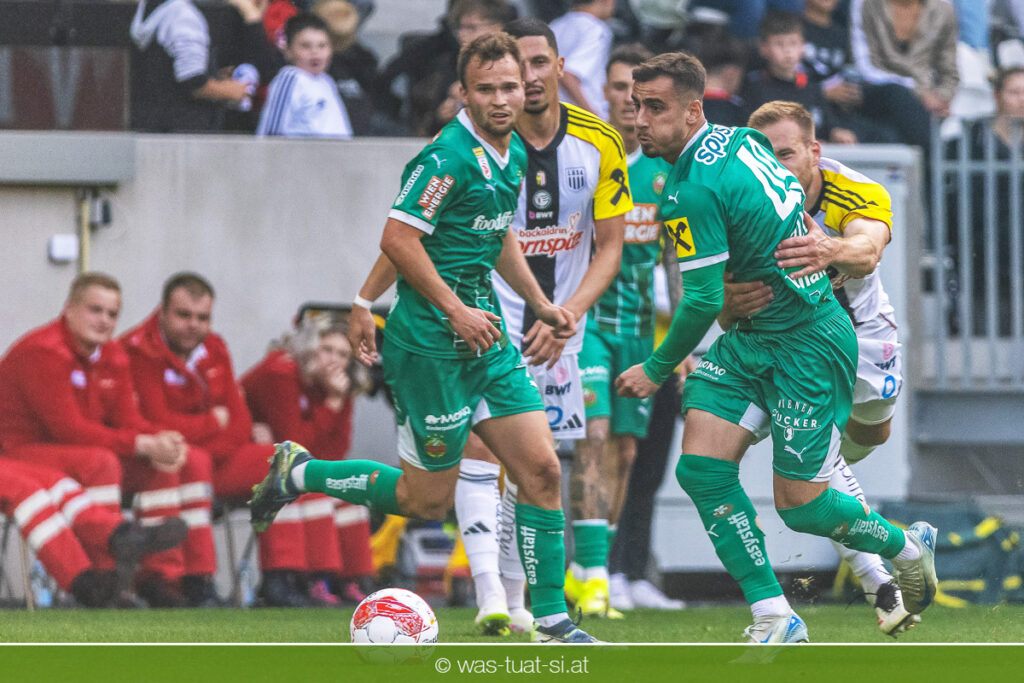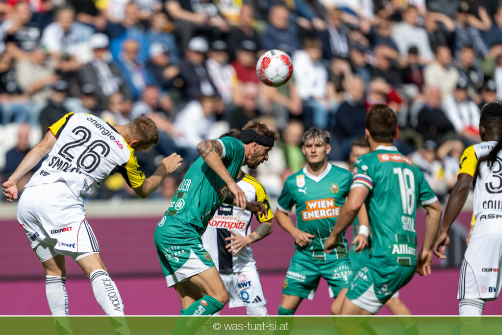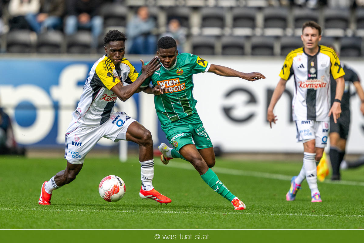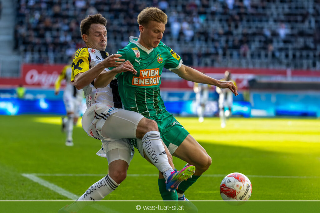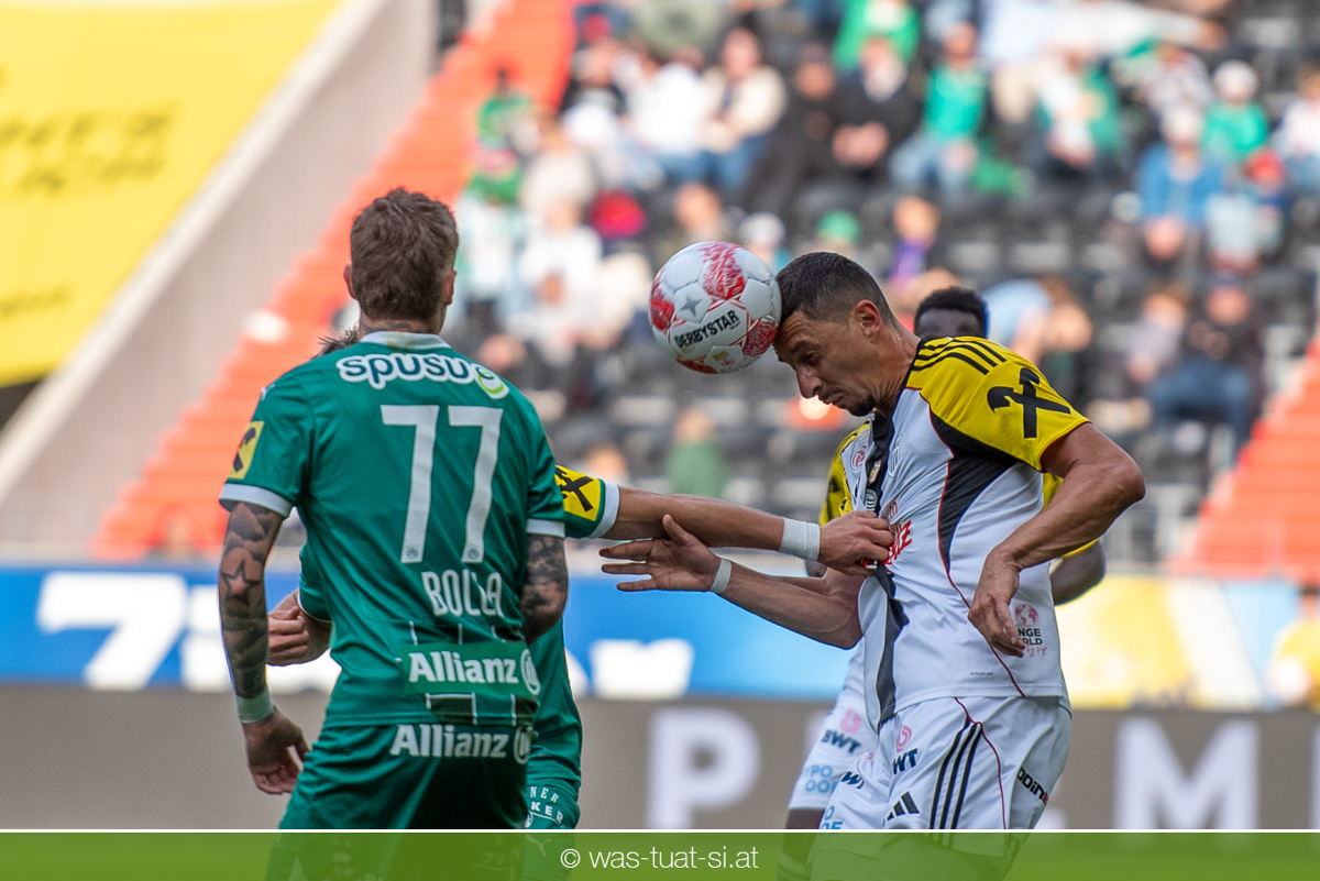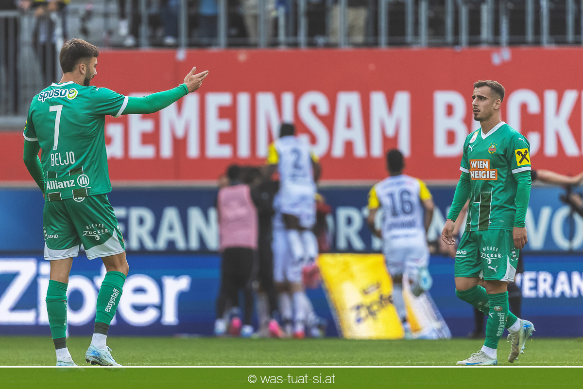 Während Andres Andrade nach 21 Minuten per Kopf das 2:0 verpasste, kamen die Hütteldorfer plötzlich aus dem Nichts zurück ins Spiel. Nach einem Abspielfehler im eigenen Drittel wertete Referee Alexander Harkam einen Zweikampf im Sechzehner als regelwidrig – eine Entscheidung, an der auch der Video-Schiedsrichter nichts auszusetzen hatte. Matthias Seidl verwandelte den Elfmeter zum 1:1 (25.). Ein Dämpfer, an dem die Mannschaft einige Minuten zu knabbern hatte. Plötzlich kam Rapid auf und zu weiteren Gelegenheiten, wie einem abgerissenen Wurmbrand-Versuch an die Latte (28.) sowie einer Großchance von Guido Burgstaller aus kurzer Distanz, bei der Tobias Lawal glänzend parierte (42.).