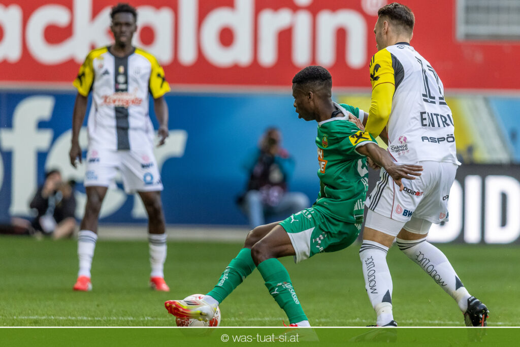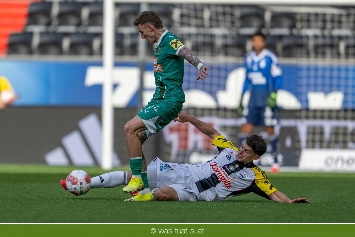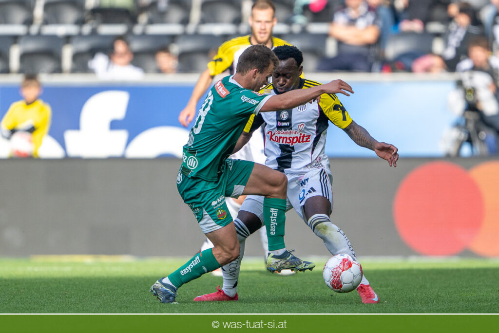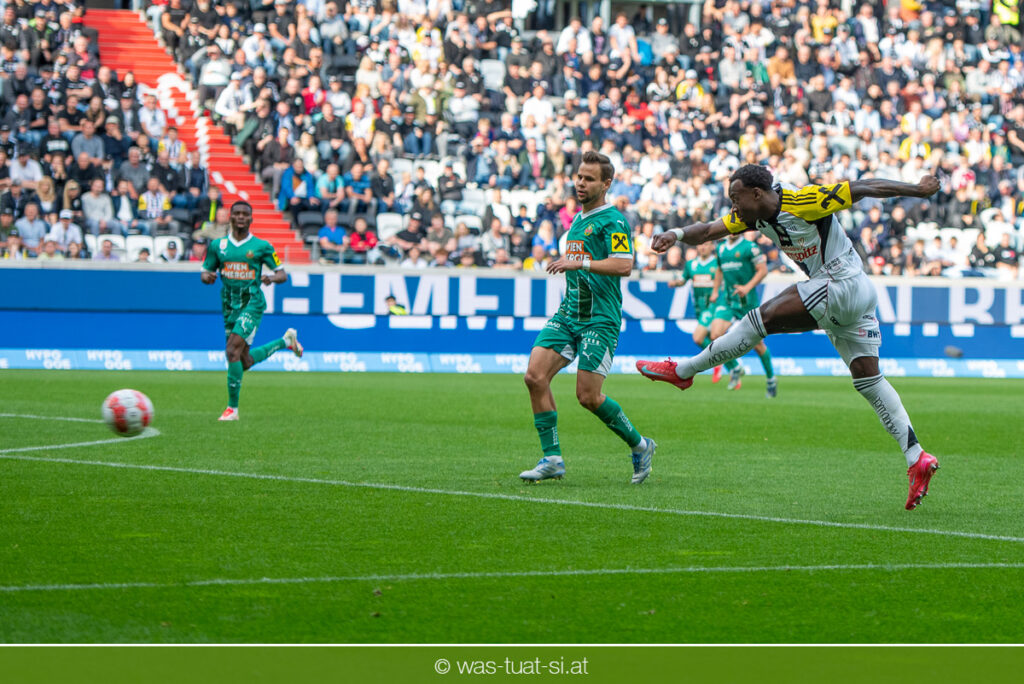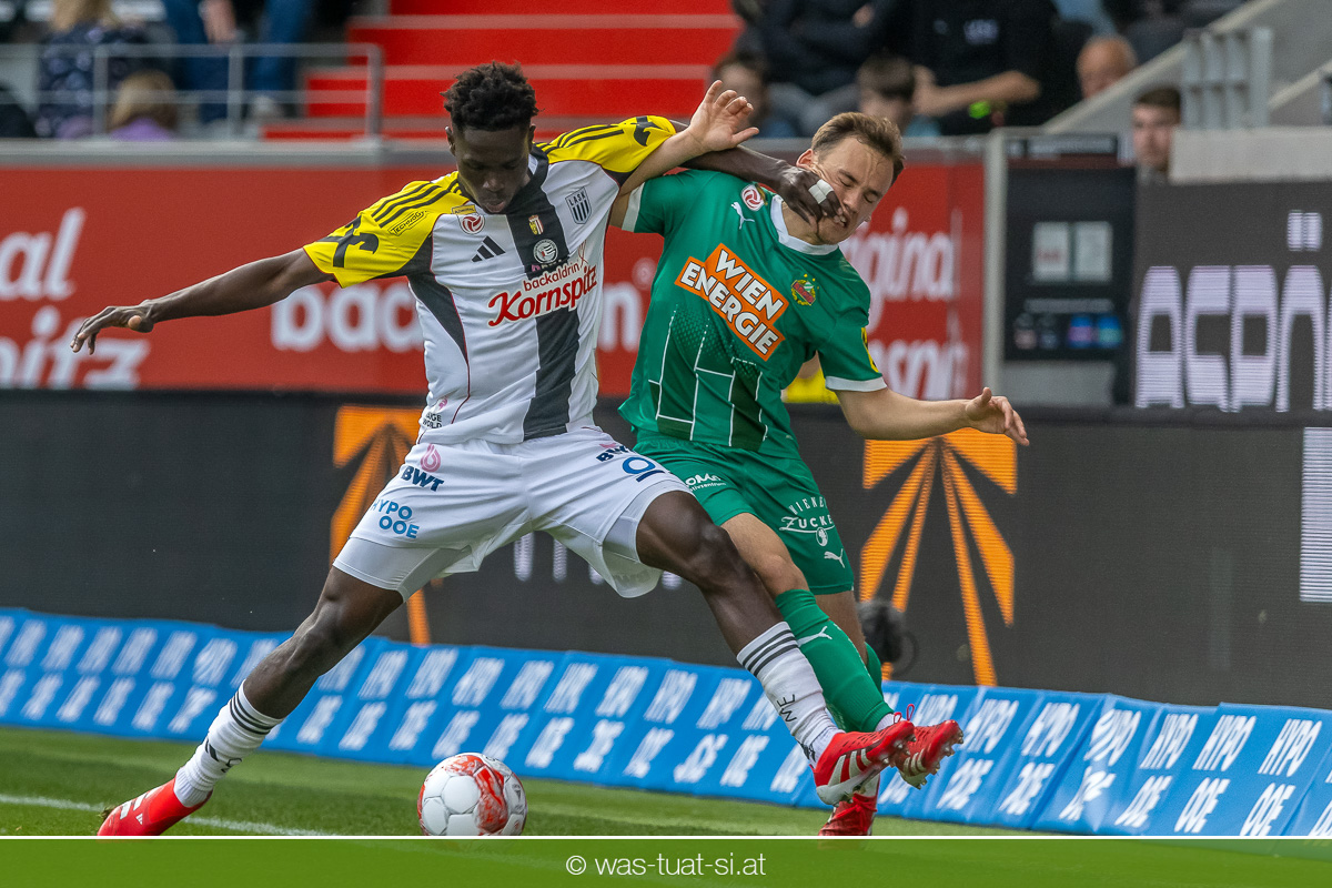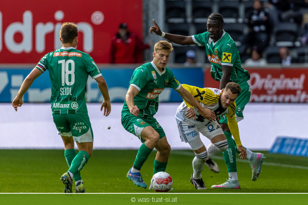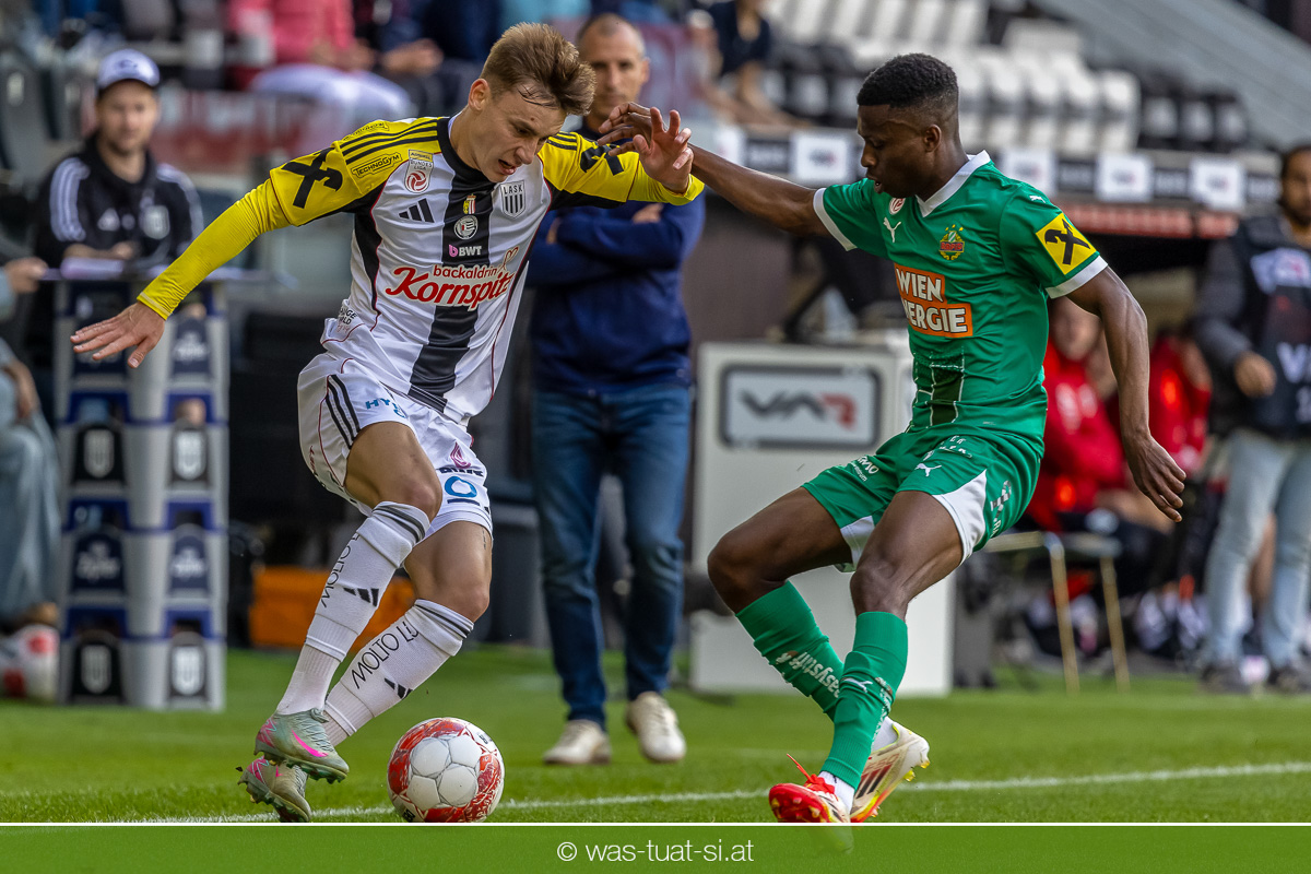 Während Andres Andrade nach 21 Minuten per Kopf das 2:0 verpasste, kamen die Hütteldorfer plötzlich aus dem Nichts zurück ins Spiel. Nach einem Abspielfehler im eigenen Drittel wertete Referee Alexander Harkam einen Zweikampf im Sechzehner als regelwidrig – eine Entscheidung, an der auch der Video-Schiedsrichter nichts auszusetzen hatte. Matthias Seidl verwandelte den Elfmeter zum 1:1 (25.). Ein Dämpfer, an dem die Mannschaft einige Minuten zu knabbern hatte. Plötzlich kam Rapid auf und zu weiteren Gelegenheiten, wie einem abgerissenen Wurmbrand-Versuch an die Latte (28.) sowie einer Großchance von Guido Burgstaller aus kurzer Distanz, bei der Tobias Lawal glänzend parierte (42.).