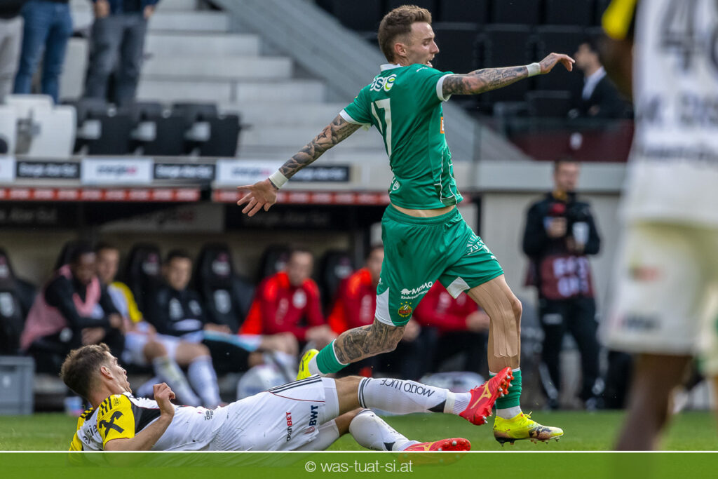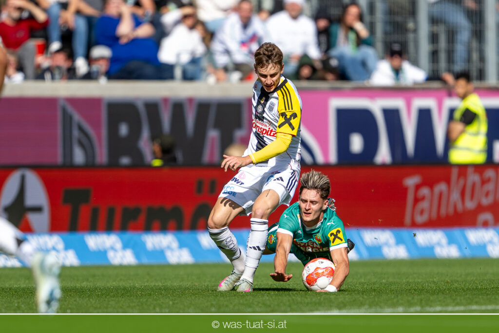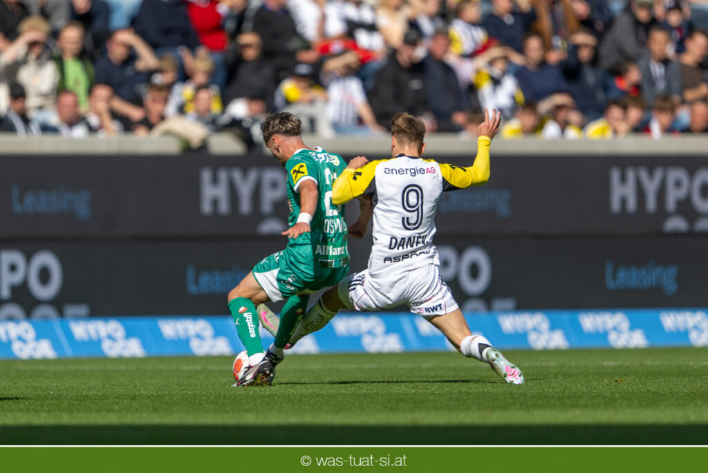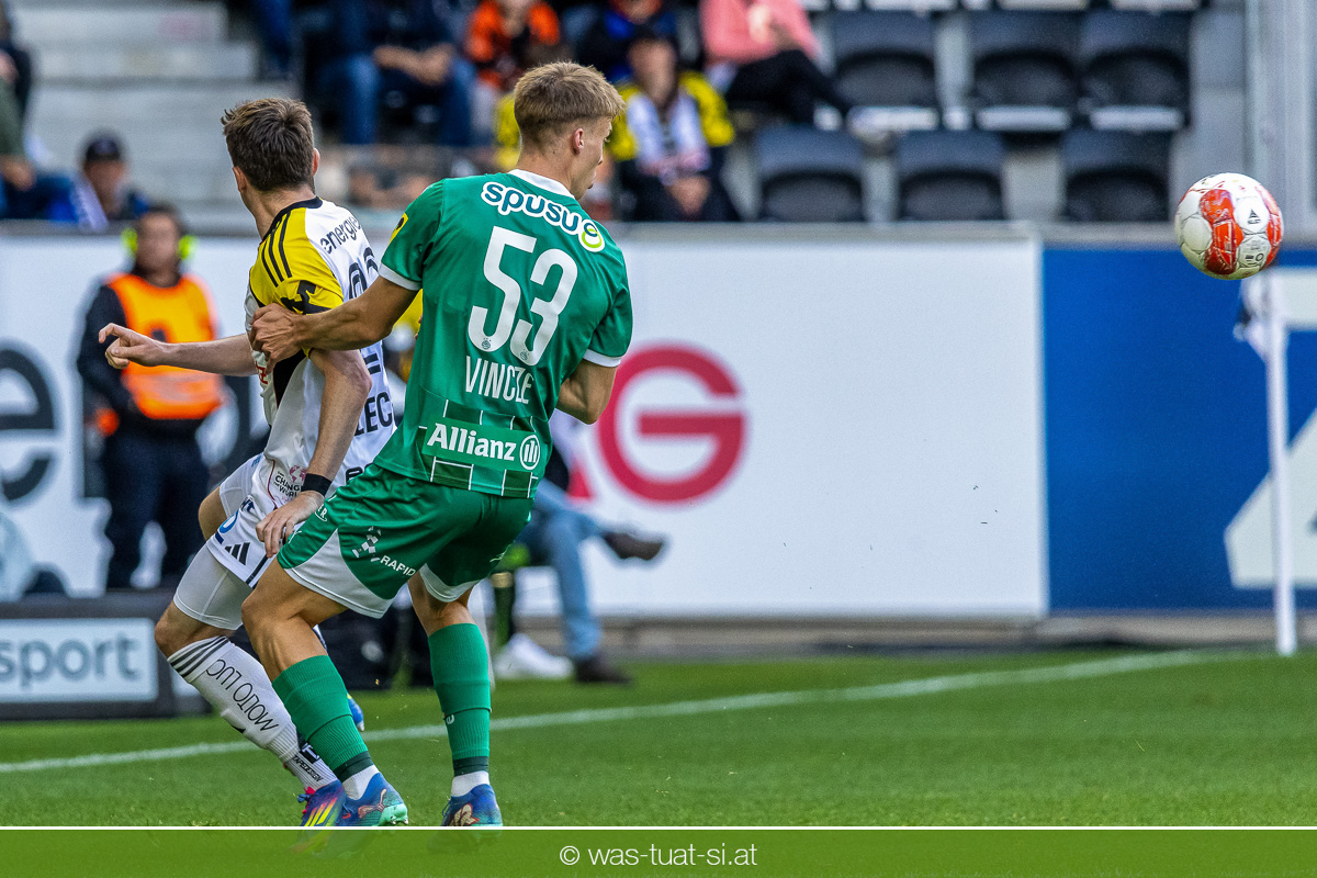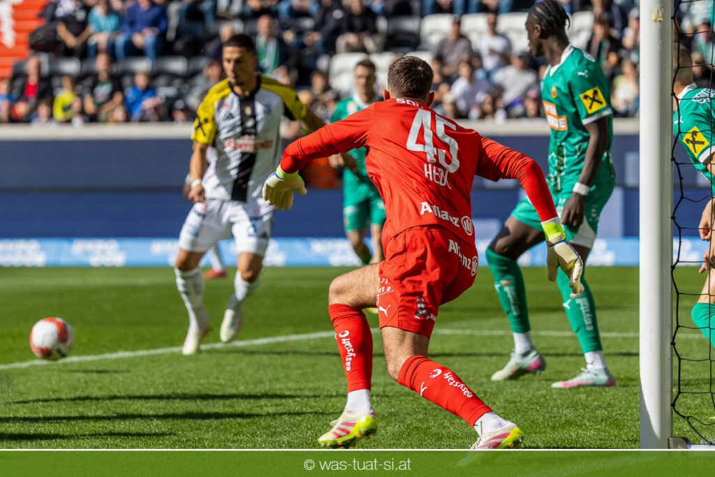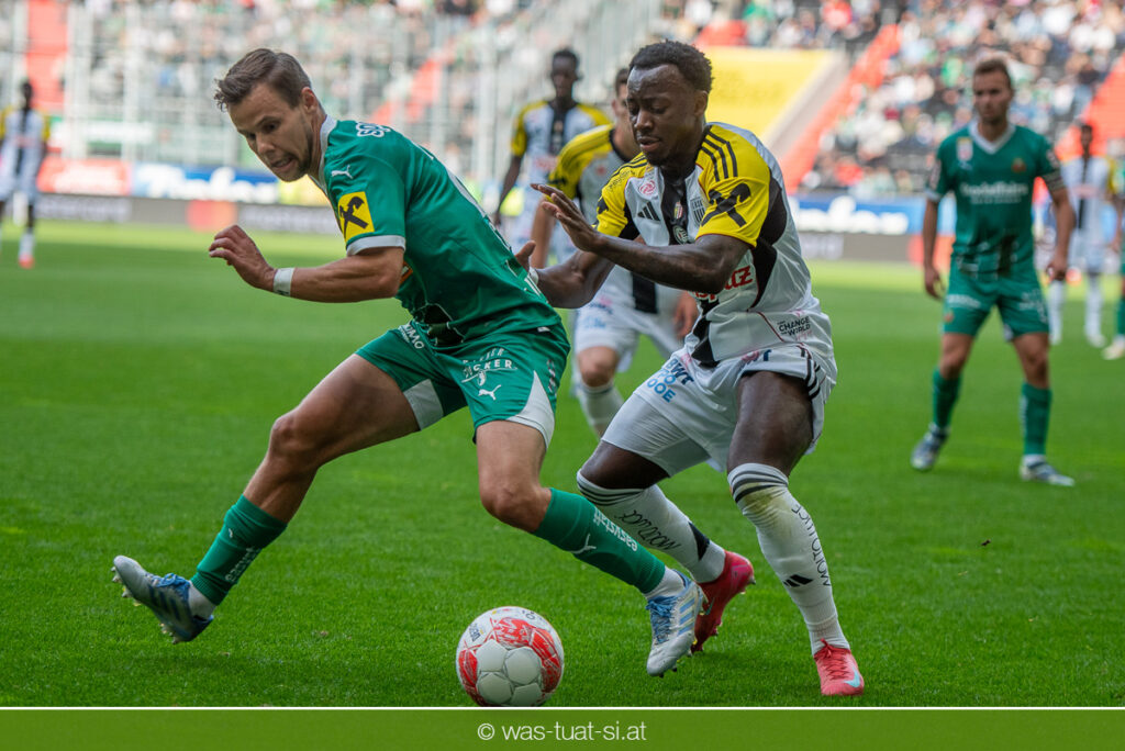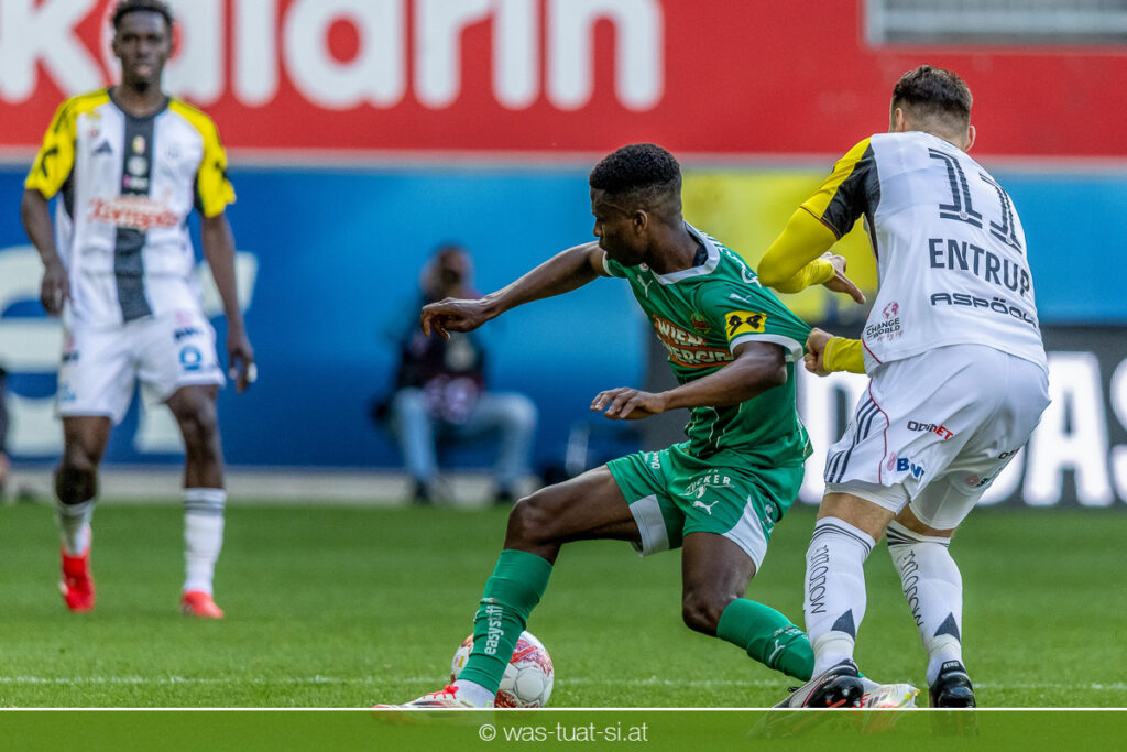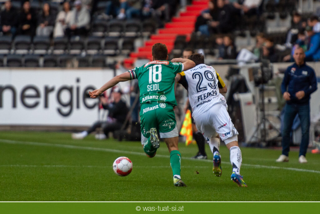 Während Andres Andrade nach 21 Minuten per Kopf das 2:0 verpasste, kamen die Hütteldorfer plötzlich aus dem Nichts zurück ins Spiel. Nach einem Abspielfehler im eigenen Drittel wertete Referee Alexander Harkam einen Zweikampf im Sechzehner als regelwidrig – eine Entscheidung, an der auch der Video-Schiedsrichter nichts auszusetzen hatte. Matthias Seidl verwandelte den Elfmeter zum 1:1 (25.). Ein Dämpfer, an dem die Mannschaft einige Minuten zu knabbern hatte. Plötzlich kam Rapid auf und zu weiteren Gelegenheiten, wie einem abgerissenen Wurmbrand-Versuch an die Latte (28.) sowie einer Großchance von Guido Burgstaller aus kurzer Distanz, bei der Tobias Lawal glänzend parierte (42.).
