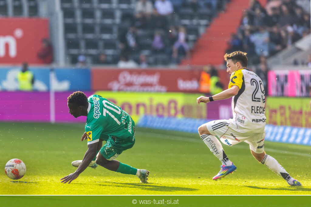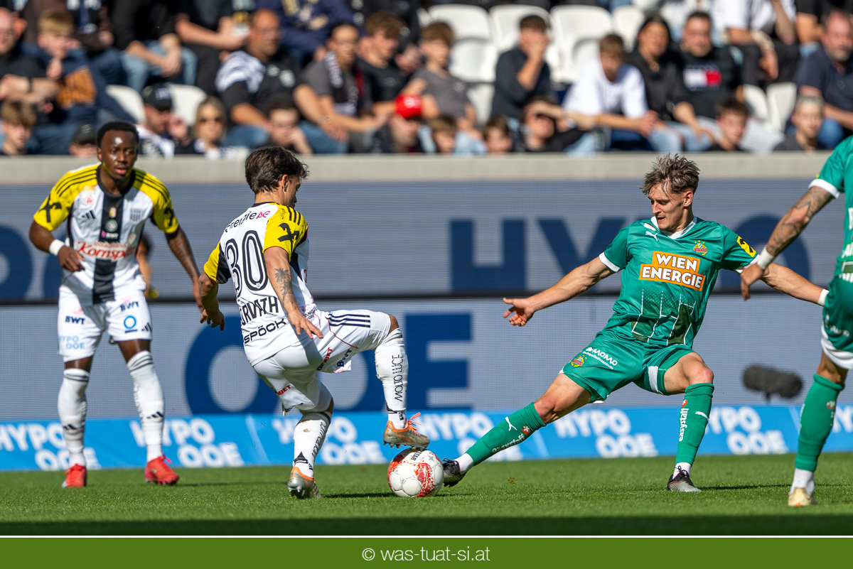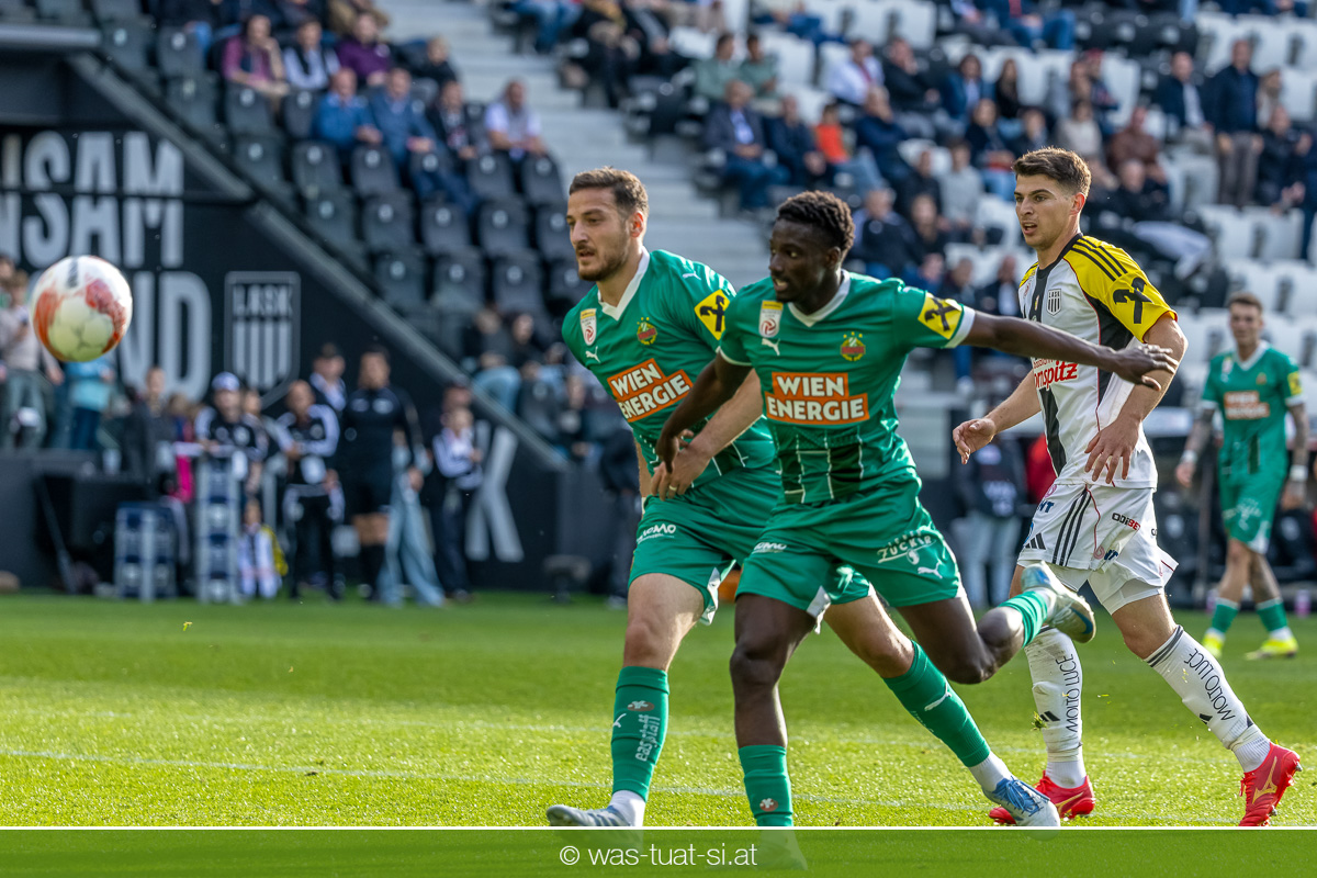 Frei war der Weg hingegen für Ismaila Coulibaly und sein zweites Tor für den LASK in Minute 66: Hrvoje Smolcic schaltete sich mit nach vorne ein, spielte den eingewechselten Ivan Ljubic frei, der seinen Mittelfeldkollegen im Rückraum erblickte. Mit einem perfekten Abschluss mit dem ersten Kontakt ins rechte untere Eck ließ er die Raiffeisen Arena ein zweites Mal jubeln. Das Finish war an Spannung kaum zu überbieten, Rapid versuchte, den Druck zu erhöhen, doch die schwarz-weiße Defensive erwies sich als Bollwerk. In der Nachspielzeit brachten die Athletiker ihre Heimstätte zum Beben: Ballgewinn von Joker Christoph Lang, perfektes Zuspiel auf den einlaufenden Zulj, der mit dem rechten Fuß den Ball über die Linie drückte – 3:1 für den LASK! Mit diesem Resultat, welches das neunte ungeschlagene Spiel gegen Rapid in Folge bedeutete, fahren die Linzer nun am Sonntag nach Hütteldorf.