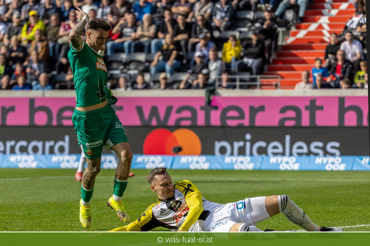 Der LASK legt vor und fährt mit einem 3:1-Vorsprung am Sonntag nach Wien: Die Athletiker bezwangen im Hinspiel des Play-off-Finales vor 13.200 Zuschauern in der Raiffeisen Arena den SK Rapid nach einem bärenstarken Auftritt und einem Doppelpack von Robert Zulj (5., 91.) sowie einem Treffer von Ismaila Coulibaly (66.).