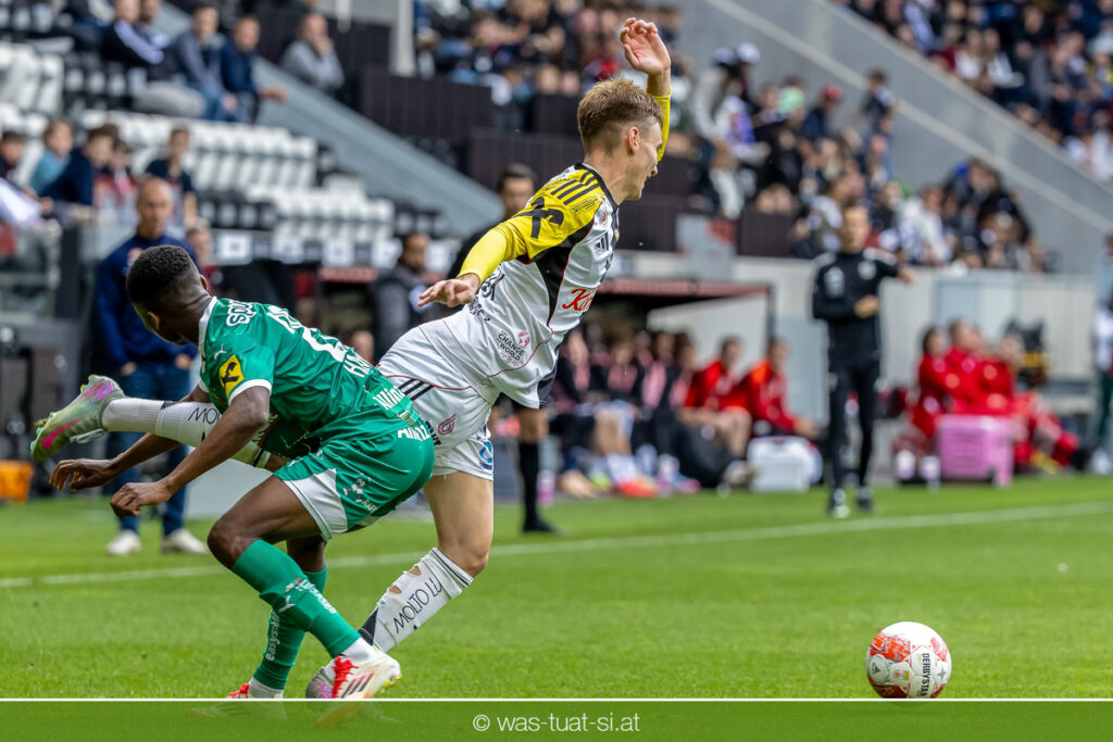 Einen echten Traumstart erwischten die Athletiker in Hälfte eins: Nach nicht einmal fünf Minuten tankte sich Florian Flecker von der rechten Seite nach innen durch, die Spielverlagerung landete bei George Bello, dessen Flanke Maximilian Entrup zur Mitte ablegte. Dort lauerte Robert Zulj, der zum 1:0 für den LASK einnetzte! Mit dem Auftakt nach Maß im Rücken legten die Linzer, bei welchen Keba Cisse den erkrankten Philipp Ziereis ersetzte, zunächst einen der wohl besten Saisonauftritte hin. Spielfreudig und temporeich im eigenen Ballbesitz, äußerst griffig gegen den Ball und handlungsschnell in den Umschaltphasen. Mehrfach gelang es den Schwarz-Weißen, hinter die Kette des Gegners zu kommen, wenngleich aus diesen Momenten zu wenig heraussprang.