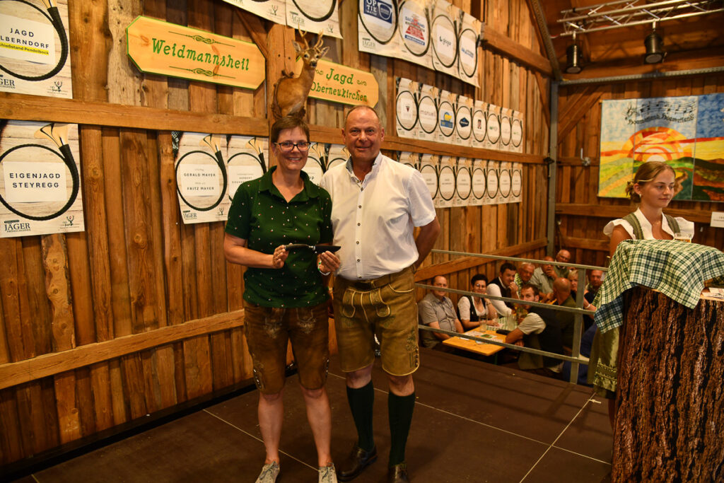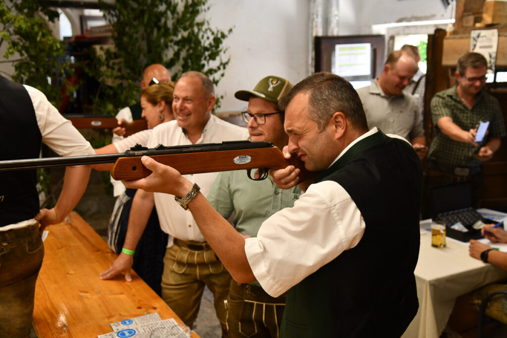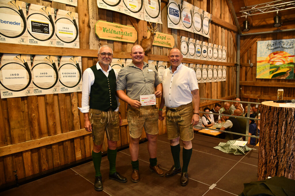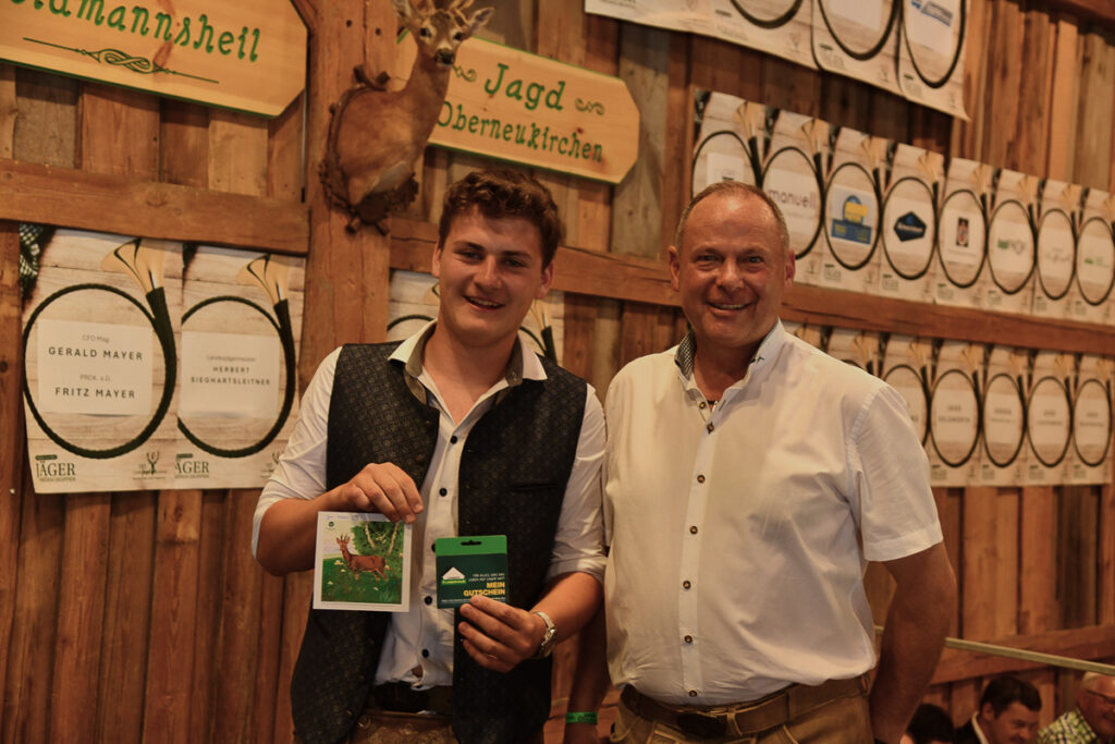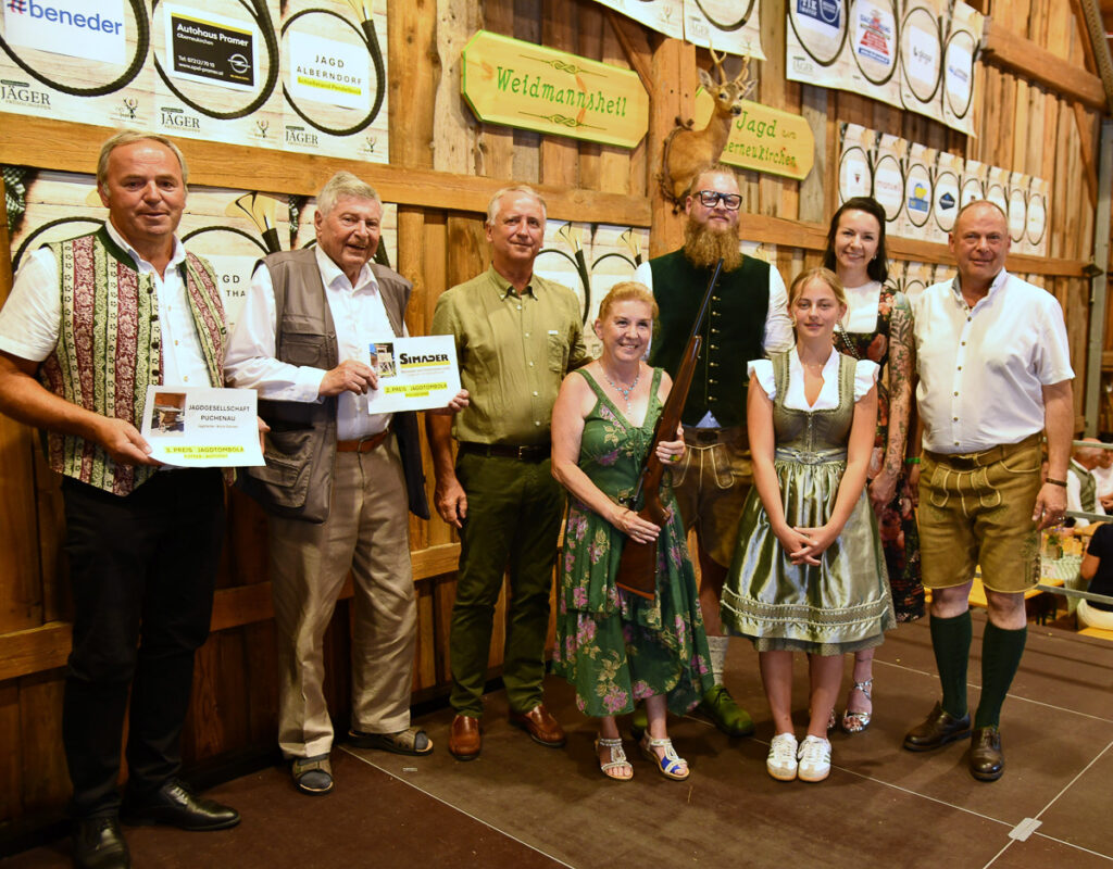 Die beliebte Jagd-Tombola sorgte für Begeisterung. Mit „Glücksengerl“ Lara wurden wertvolle Preise verlost, darunter die drei Hauptpreise: ein SAKO-Jagdgewehr von Waffen Hofer, ein Hochstand der ortsansässigen Firma SIMADER und ein Rehfutter-Automat der Jagd Puchenau sowie 10 Jagdeinladungen und weitere Preise und Gutscheine. Beim Zimmergewehrschießen auf den Pendelbock wurde die beste Treffsicherheit prämiert.