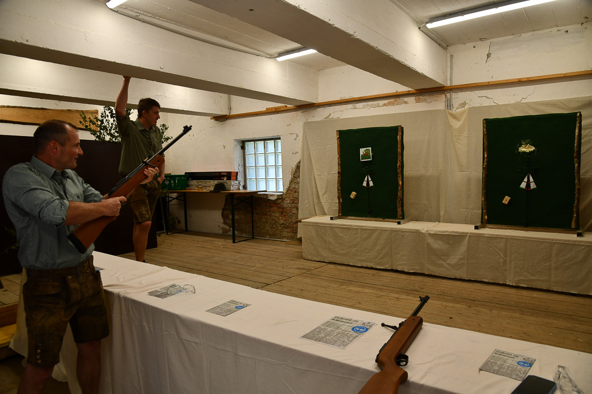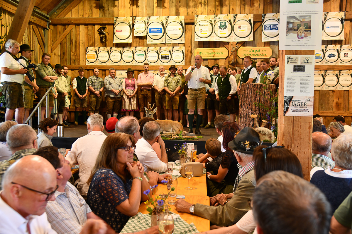 Die beliebte Jagd-Tombola sorgte für Begeisterung. Mit „Glücksengerl“ Lara wurden wertvolle Preise verlost, darunter die drei Hauptpreise: ein SAKO-Jagdgewehr von Waffen Hofer, ein Hochstand der ortsansässigen Firma SIMADER und ein Rehfutter-Automat der Jagd Puchenau sowie 10 Jagdeinladungen und weitere Preise und Gutscheine. Beim Zimmergewehrschießen auf den Pendelbock wurde die beste Treffsicherheit prämiert.