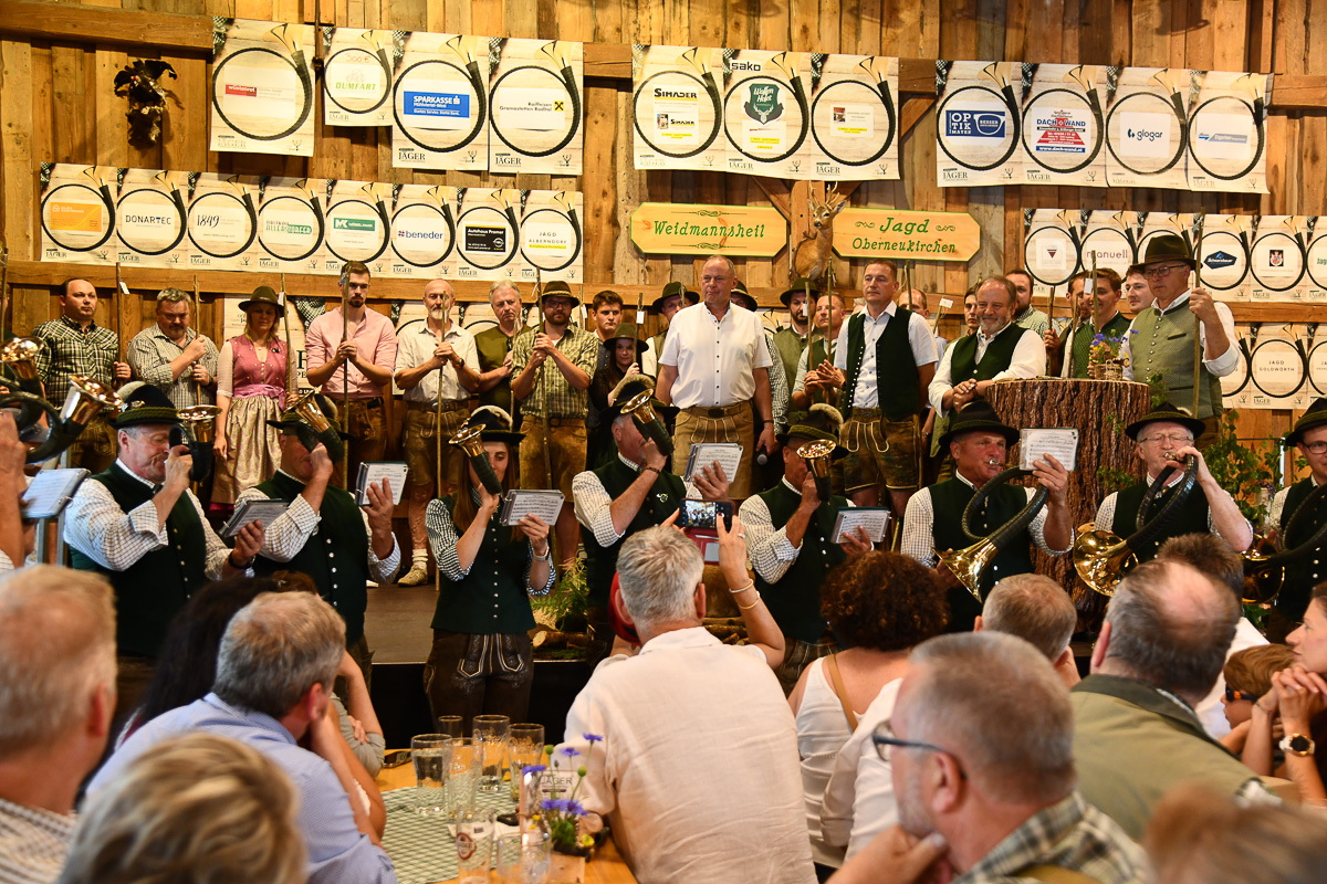 Viele Ehrengäste wie Landesbäuerin Johanna Haider, Bezirksbauernkammerobmann Peter Preuer und Gemeindejagdvorstand Johann Rammerstorfer, Bezirkshauptmann Ferdinand Watschinger, die Bürgermeister Martin Tanzer (Alberndorf i.d.R.), Thomas Prihoda (Goldwörth), und Johann Plakolm (Walding) sowie die beiden Vizebürgermeisterinnen Elisabeth Haiböck (Bad Leonfelden) & Anneliese Bräuer (Oberneukirchen) und der Bezirksjägermeister von Rohrbach, Martin Eisschiel, unterstrichen die Bedeutung dieses gelebten jagdlichen Brauchtums.
