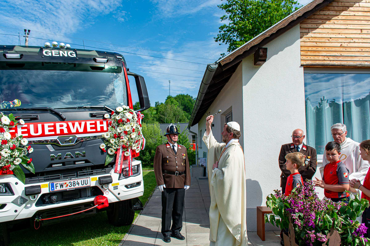 Am Sonntagvormittag, 1. Juni, wurde das neue Tanklöschfahrzeug mit Bergeausrüstung der Freiwilligen Feuerwehr Geng von Abt Reinhold Dessl gesegnet. Zu diesem festlichen Anlass fanden sich hochrangige Ehrengäste, zahlreiche Feuerwehrkameraden aus den umliegenden Nachbarsfeuerwehren und Gemeindebürger zur gemeinsamen Feldmesse ein.