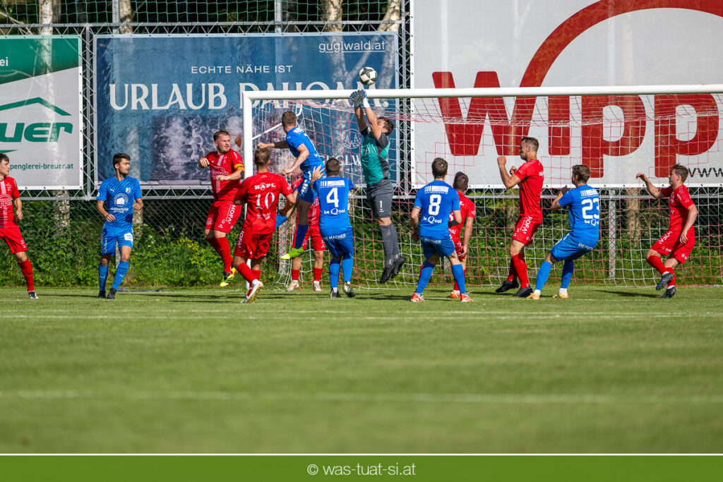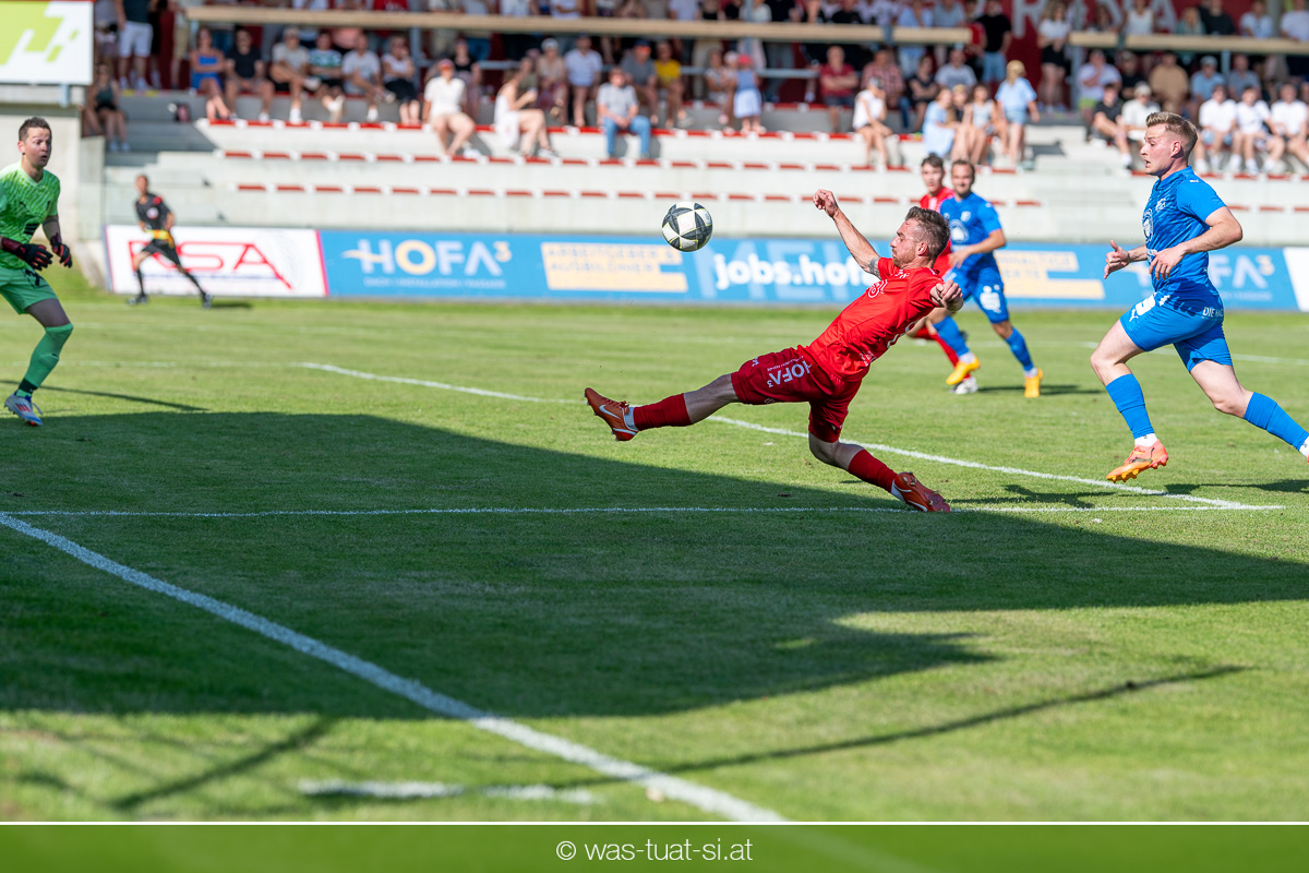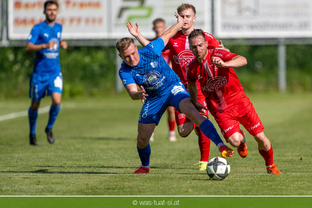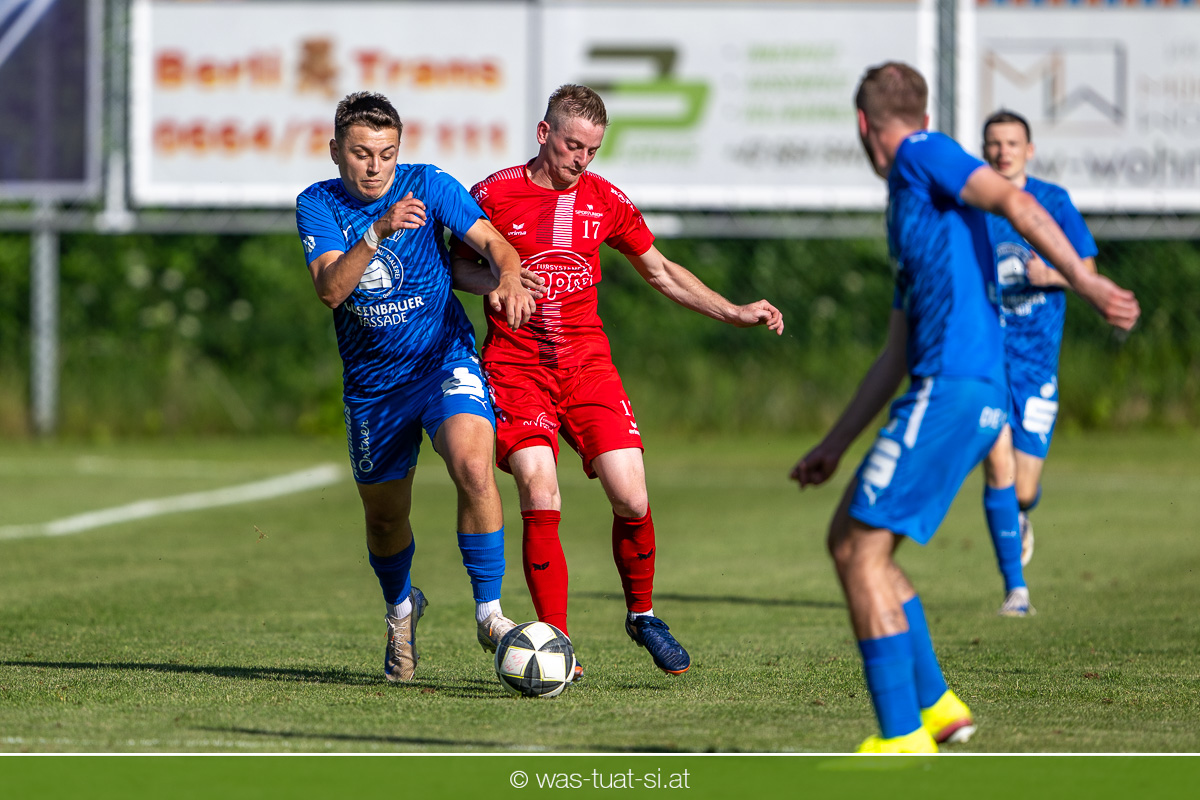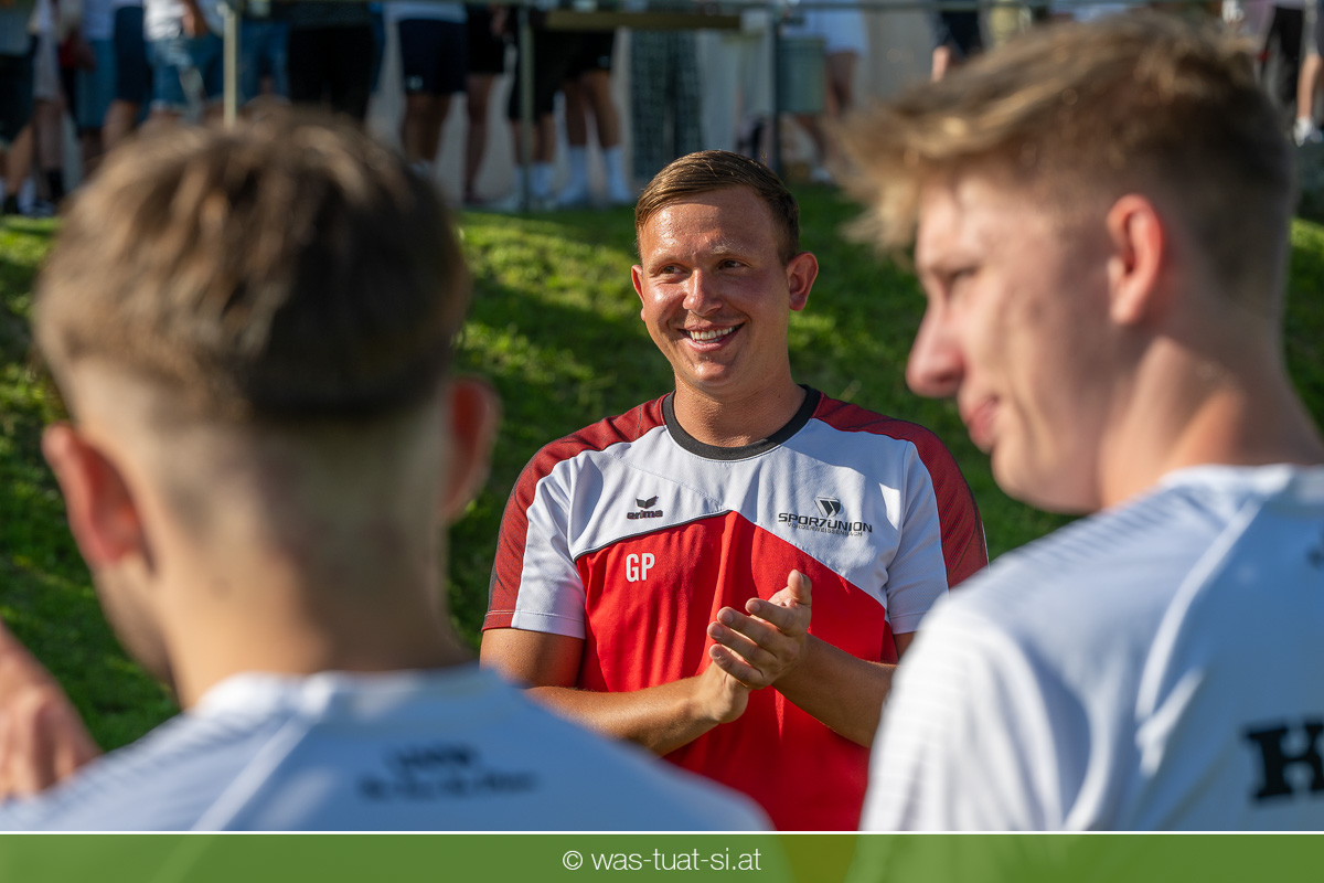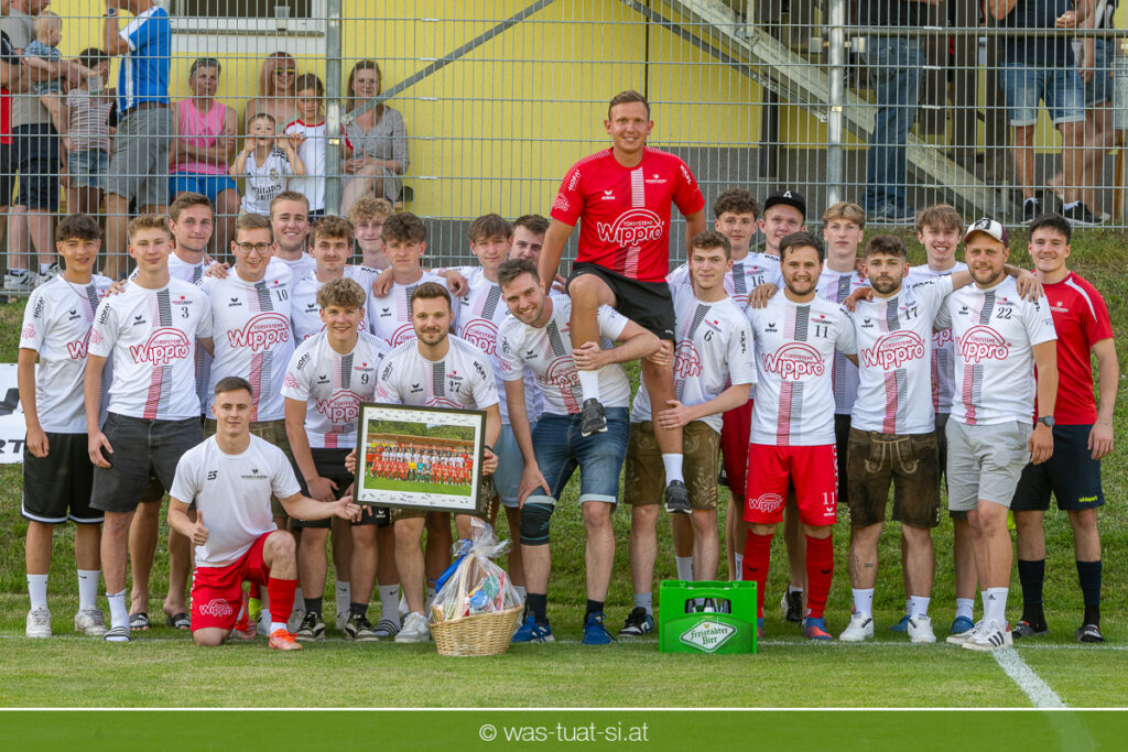 Mit einem nie gefährdeten 3:1 (3:0) gegen die TSU Wartberg/Aist gelang der Union Wippro Vorderweißenbach im letzten Spiel der Bezirksliga Nord die erhoffte Absicherung des Relegationsplatzes. Bei brütender Hitze sahen die mehr als 200 Fans in der Wippro-Arena dabei eine über weite Strecken einseitige Partie, der die Hausherren von Beginn weg ihren Stempel aufdrückten. Dabei hieß es bereits nach vier Minuten 1:0: Jonas Prammer luchste der Wartberger Hintermannschaft das Leder ab, tankte sich halblinks durch und brachte das Spielgerät gekonnt zur Mitte. Dort behielt Wendelin Wolfmayr die Nerven und sorgte für die umjubelte Führung der Gastgeber. Diese arbeiteten in der Folge Chance um Chance heraus, scheiterten aber immer wieder knapp. Erst gegen Ende der ersten Hälfte fielen die längst überfälligen Tore: In Minute 33 schnürte Wolfmayr mit einem verwerteten Abpraller den Doppelpack zum 2:0 – und in Minute 39 landete Ondrej Svoboda nach einer sehenswerten Aktion und einem technischen Kabinettstückerl mit samt dem Ball zum 3:0 im Netz. Nach Seitenwechsel mussten beide Teams der Hitze Tribut zollen und boten den Fans fußballerische Schmalkost. Die Gäste aus Wartberg blieben in der Offensive harmlos, die Hausherren gaben sich mit der deutlichen Führung zufrieden. Nach dem Ehrentreffer durch Florian Wagner in Minute 89 – er nützte eine Spielerei in der heimischen Hintermannschaft aus – kam noch einmal ein bisschen Spannung auf – der Sieg der Gastgeber geriet aber nicht mehr in Gefahr. Bei diesen hatte auch der Nachwuchs Grund zur Freude: In der Pause überreichten die UVW-Sponsoren Wippro und Hofa eine neue Spielbekleidung. Und auch der scheidende 1b-Trainer Gregor Preining stand im Mittelpunkt: er wurde mit Geschenken und Standing Ovations verabschiedet.