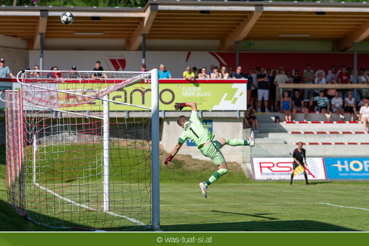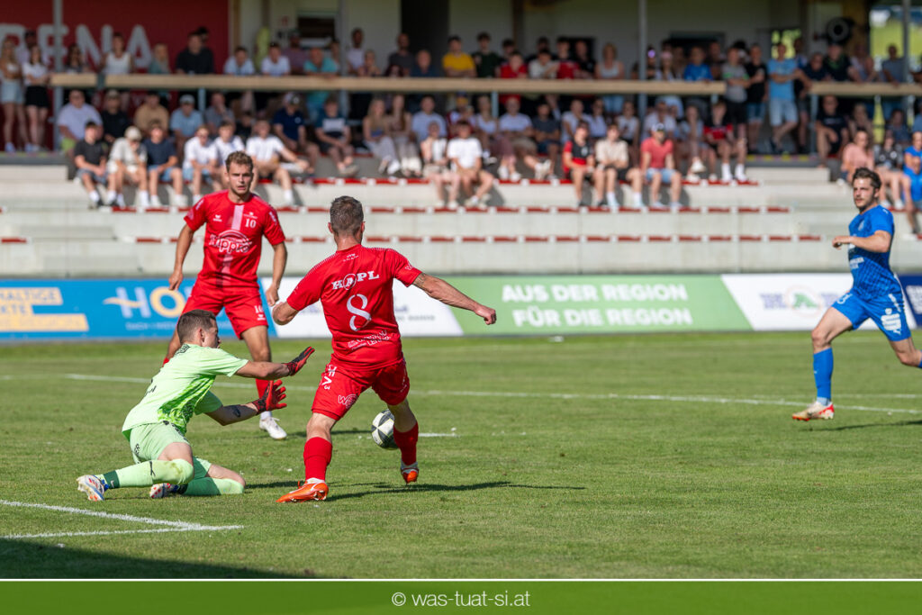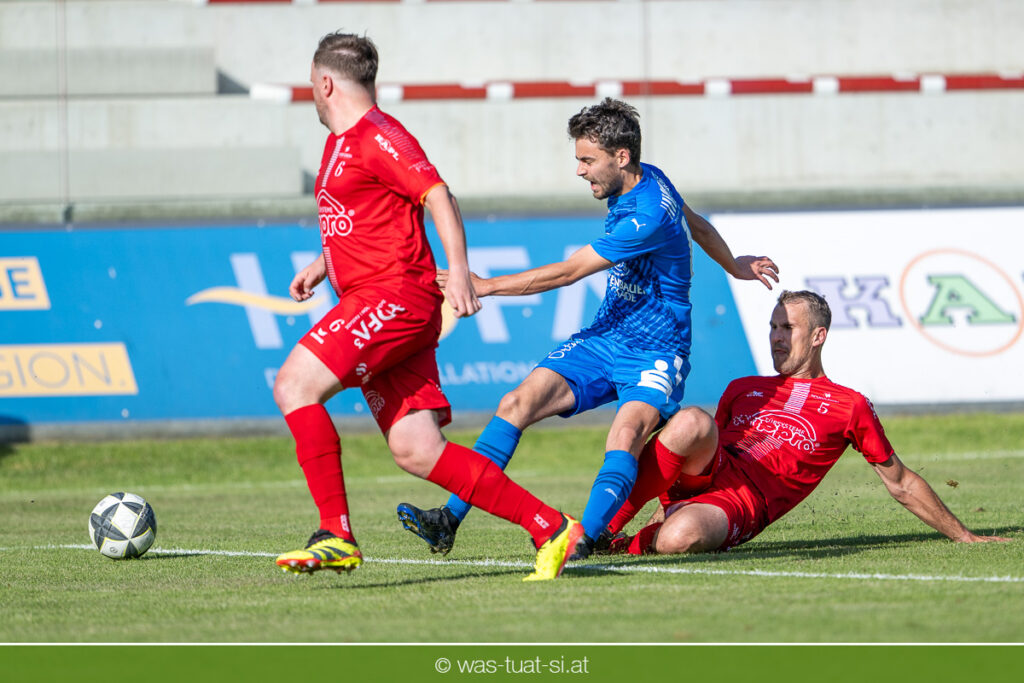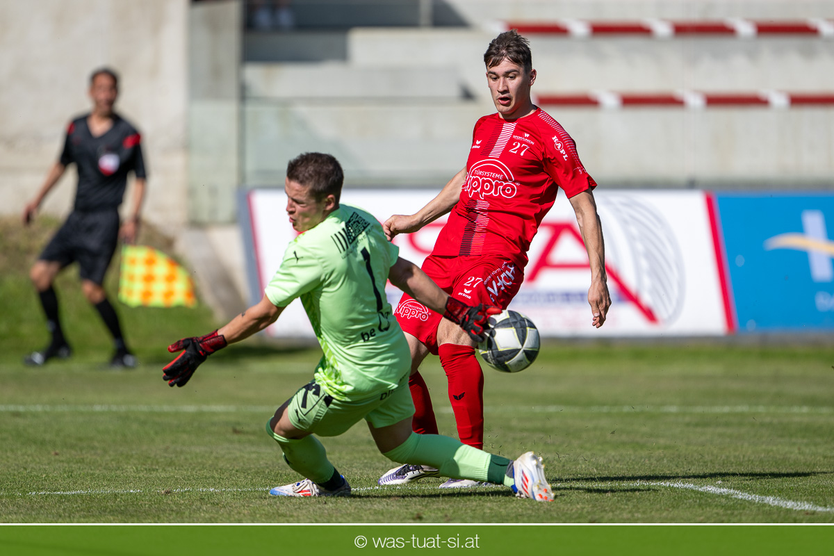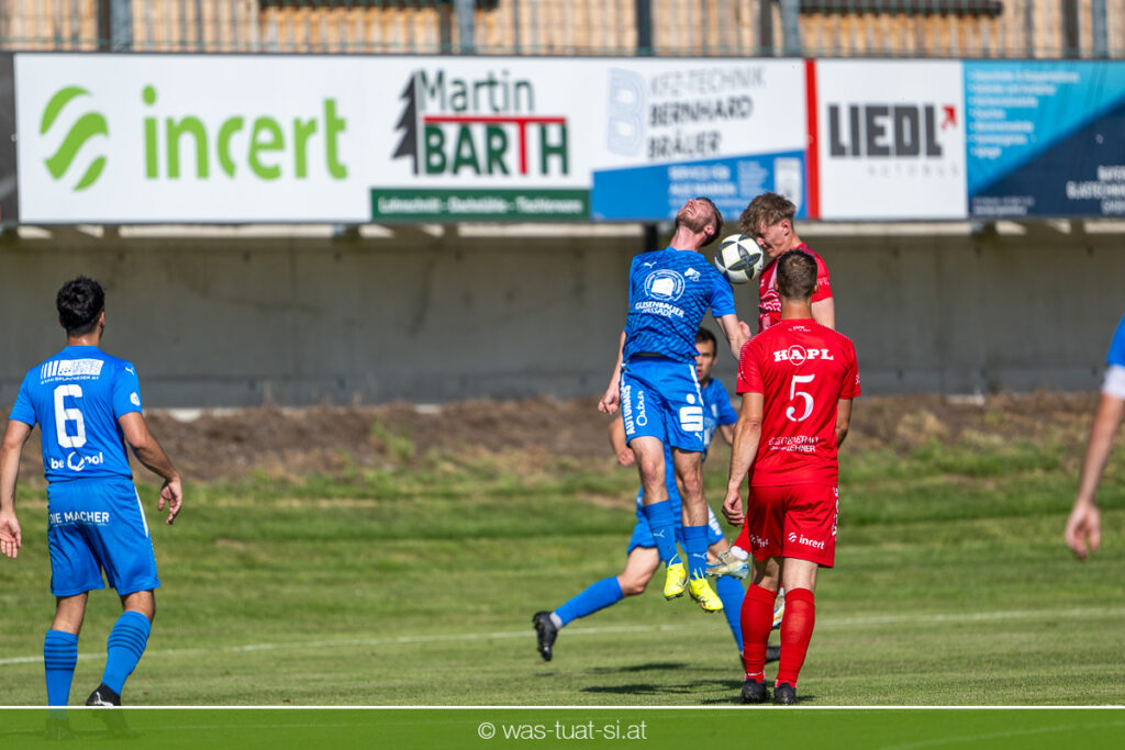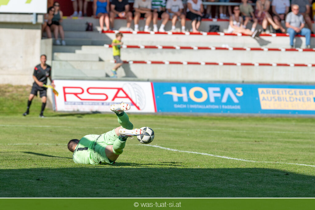 Mit einem nie gefährdeten 3:1 (3:0) gegen die TSU Wartberg/Aist gelang der Union Wippro Vorderweißenbach im letzten Spiel der Bezirksliga Nord die erhoffte Absicherung des Relegationsplatzes. Bei brütender Hitze sahen die mehr als 200 Fans in der Wippro-Arena dabei eine über weite Strecken einseitige Partie, der die Hausherren von Beginn weg ihren Stempel aufdrückten. Dabei hieß es bereits nach vier Minuten 1:0: Jonas Prammer luchste der Wartberger Hintermannschaft das Leder ab, tankte sich halblinks durch und brachte das Spielgerät gekonnt zur Mitte. Dort behielt Wendelin Wolfmayr die Nerven und sorgte für die umjubelte Führung der Gastgeber. Diese arbeiteten in der Folge Chance um Chance heraus, scheiterten aber immer wieder knapp. Erst gegen Ende der ersten Hälfte fielen die längst überfälligen Tore: In Minute 33 schnürte Wolfmayr mit einem verwerteten Abpraller den Doppelpack zum 2:0 – und in Minute 39 landete Ondrej Svoboda nach einer sehenswerten Aktion und einem technischen Kabinettstückerl mit samt dem Ball zum 3:0 im Netz. Nach Seitenwechsel mussten beide Teams der Hitze Tribut zollen und boten den Fans fußballerische Schmalkost. Die Gäste aus Wartberg blieben in der Offensive harmlos, die Hausherren gaben sich mit der deutlichen Führung zufrieden. Nach dem Ehrentreffer durch Florian Wagner in Minute 89 – er nützte eine Spielerei in der heimischen Hintermannschaft aus – kam noch einmal ein bisschen Spannung auf – der Sieg der Gastgeber geriet aber nicht mehr in Gefahr. Bei diesen hatte auch der Nachwuchs Grund zur Freude: In der Pause überreichten die UVW-Sponsoren Wippro und Hofa eine neue Spielbekleidung. Und auch der scheidende 1b-Trainer Gregor Preining stand im Mittelpunkt: er wurde mit Geschenken und Standing Ovations verabschiedet.