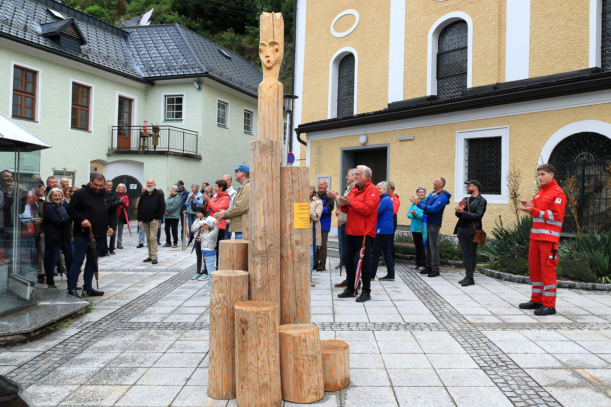 Bürgermeister Sepp Hintenberger, über die neue Kunstmeile in Helfenberg höchst erfreut, erwähnte in seiner Eröffnungsrede, dass Helfenberg ein wahrer Kultur Hotspot sei: der Kultursommer Piberstein mit 10 Veranstaltungen, das Theater in der Kulturfabrik, in dem gerade am Tag zuvor die fulminante Premiere des „Don Quijote“ von Henry Mason stattfand, das Helfenberger Herbsttheater unter der Regie von GÜ Wolkerstorfer und vieles mehr. Im Ortskern gibt es 36 größere und kleinere Werke in den verschiedensten Techniken zu sehen, im Gemeindegebiet gibt es weitere. Diese stammen von Maria Hofbauer (Keramik), Hermann Eckerstorfer (Holz und Eisen), Ondrej Kohout (Eisen), Paul Pichler (Holz), Gerhard Wünsche (Betonguss) und Wolfgang Zöhrer (Eisen). Der Großteil der Kunstwerke stammt von Hermann Eckerstorfer. Dieser führte auch durch den Ort und kommentierte die Plastiken. Begleitet wurde der Rundgang von Roland Höfer auf dem Saxophon sowie von Ulli und Regina mit frechen und stimmungsvollen Liedern. GÜ, der mit Wolfgang Zöhrer befreundet war, brachte Anekdoten aus dem Leben dieses so begabten Künstlers.