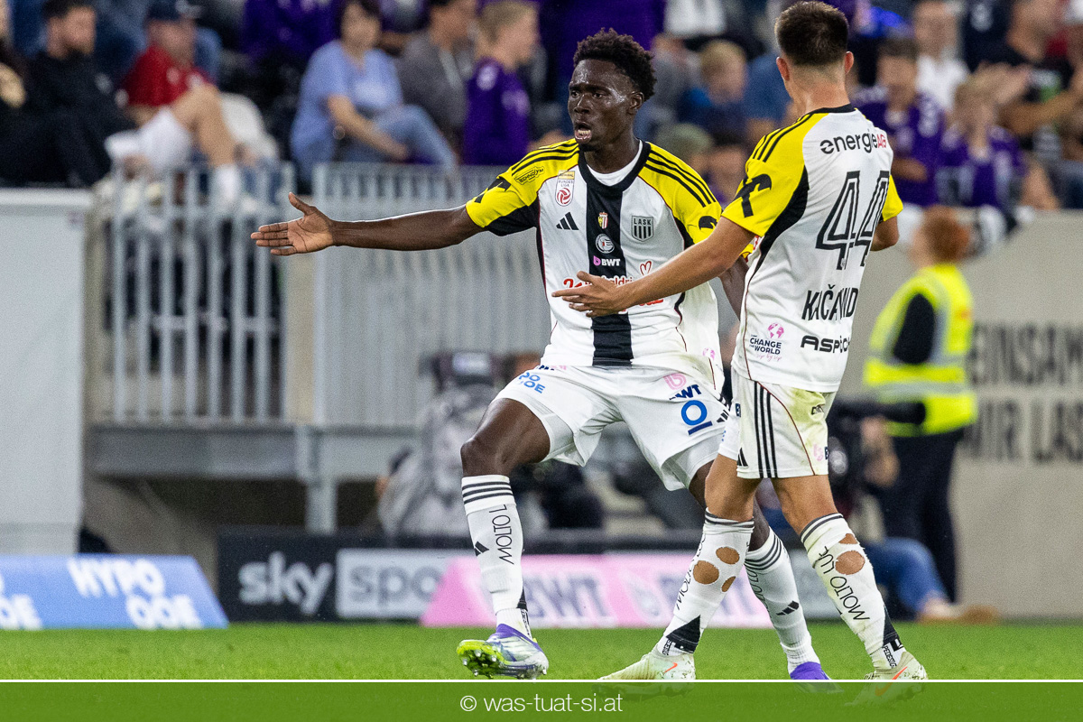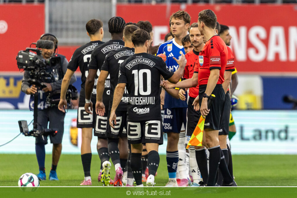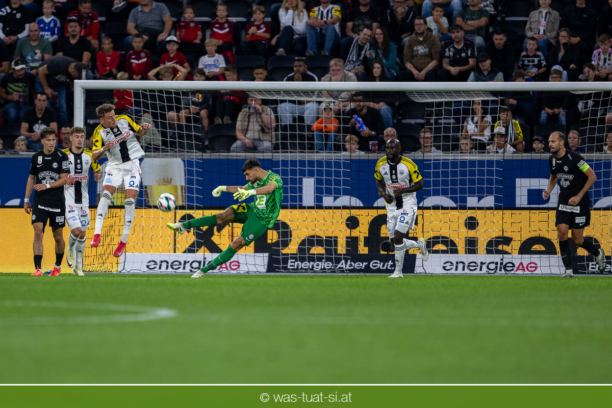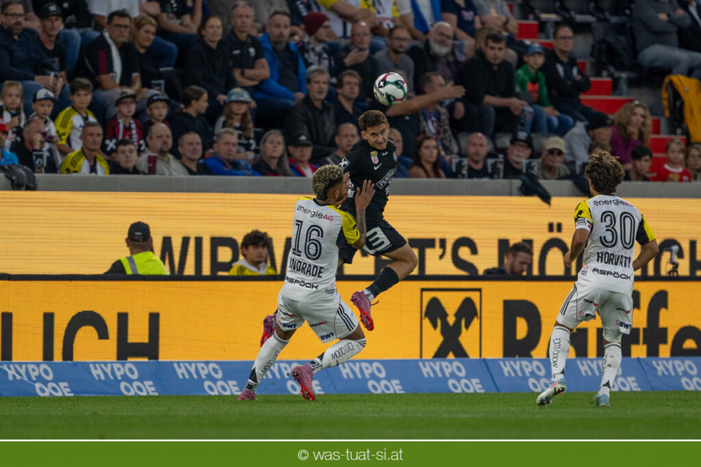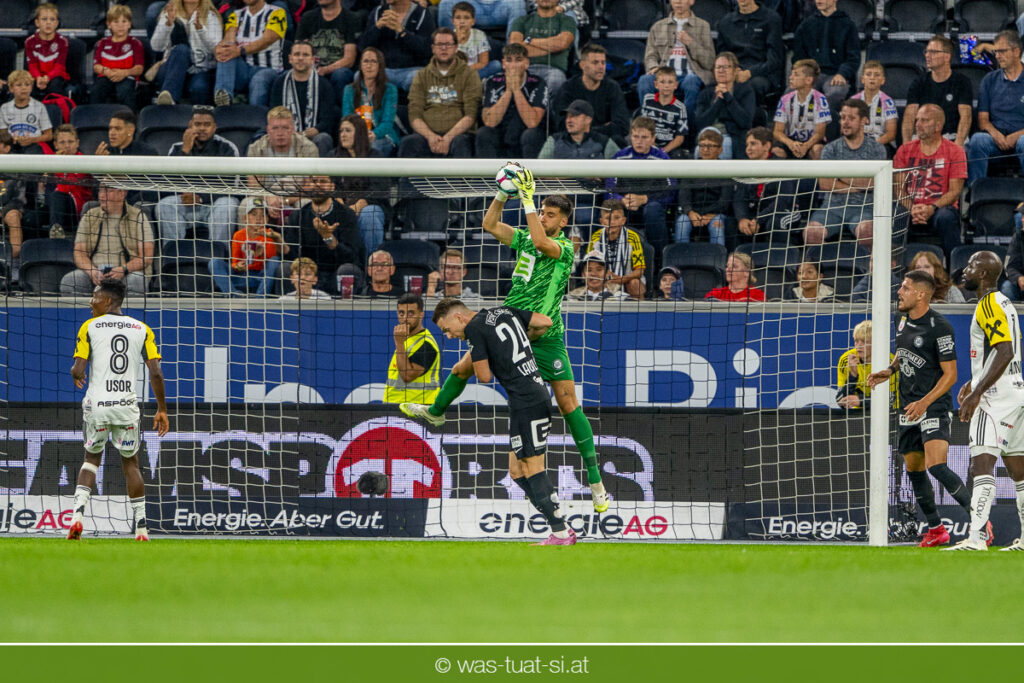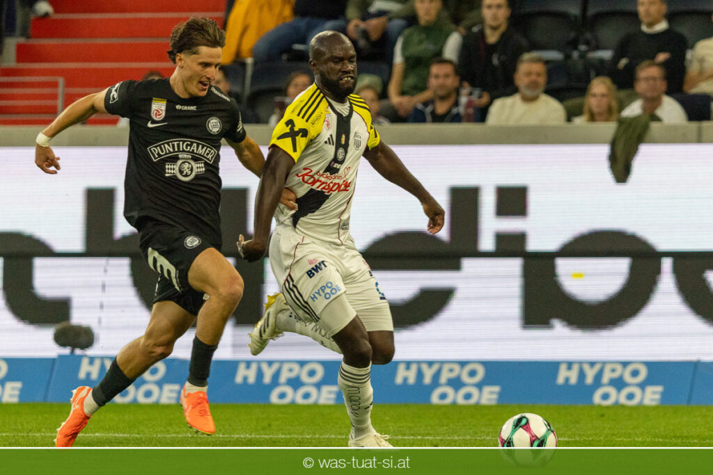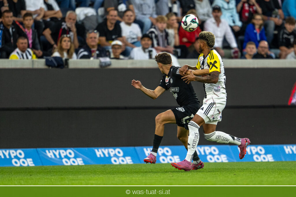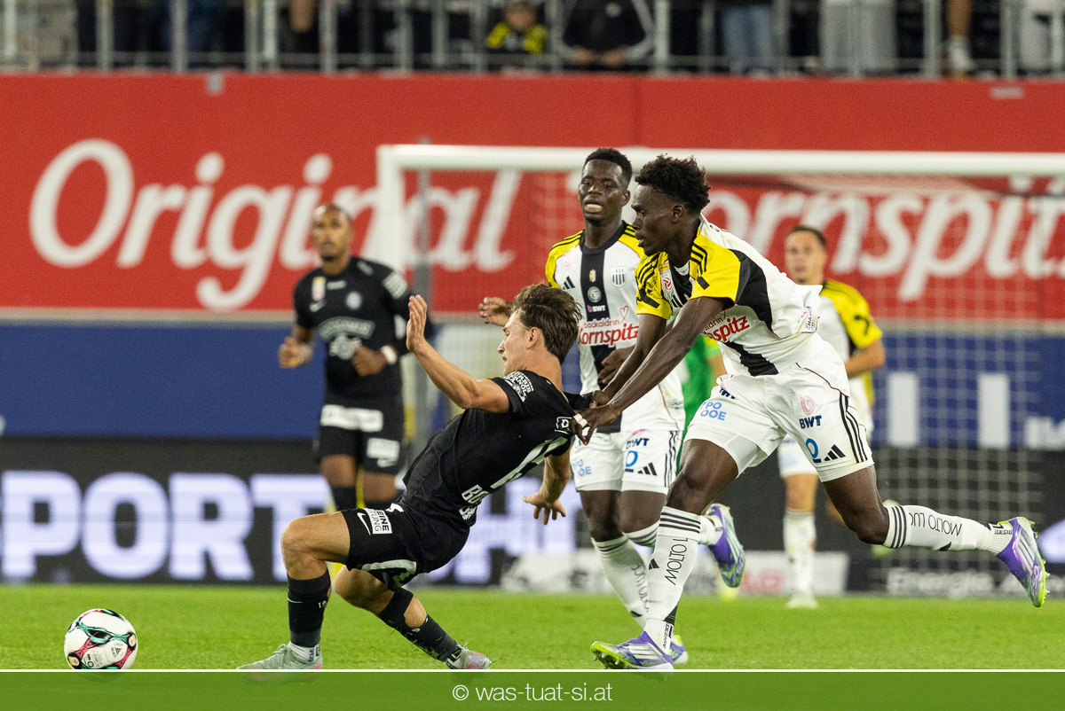 Der Meister ließ auch danach immer wieder seine Klasse aufblitzen, allen voran im Umschaltspiel nach Ballgewinn, wo die Grazer mit viel Tempo agierten und zu weiteren Möglichkeiten gelangten. Etwa nach 34 Minuten, als sich LASK-Keeper Lukas Jungwirth gegen Außenverteidiger Max Johnston auszeichnen konnte. Die Athletiker in dieser Phase mit wesentlich mehr Ballbesitz – insgesamt 67 Prozent standen nach den ersten 45 Minuten zu Buche – und mit phasenweise sehr gefälligem Spiel in der Aufbauzone wie auch im Mitteldrittel. Was fehlte, waren jedoch die klaren Torszenen, weil man im Angriffsdrittel oftmals zu unpräzise agierte und zahlreiche Hereingaben beim Gegner landeten.