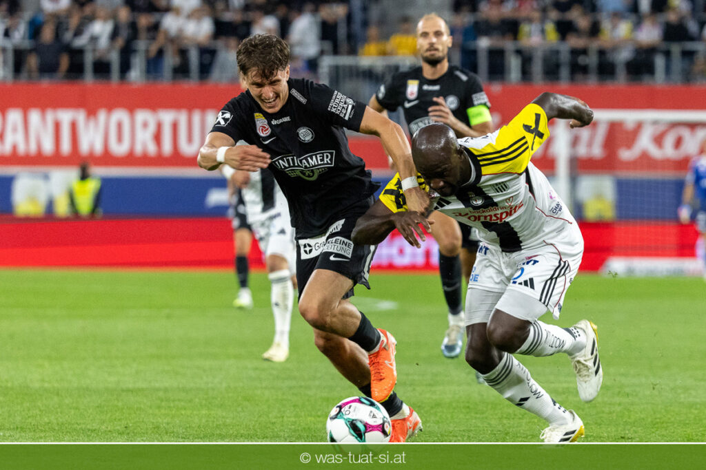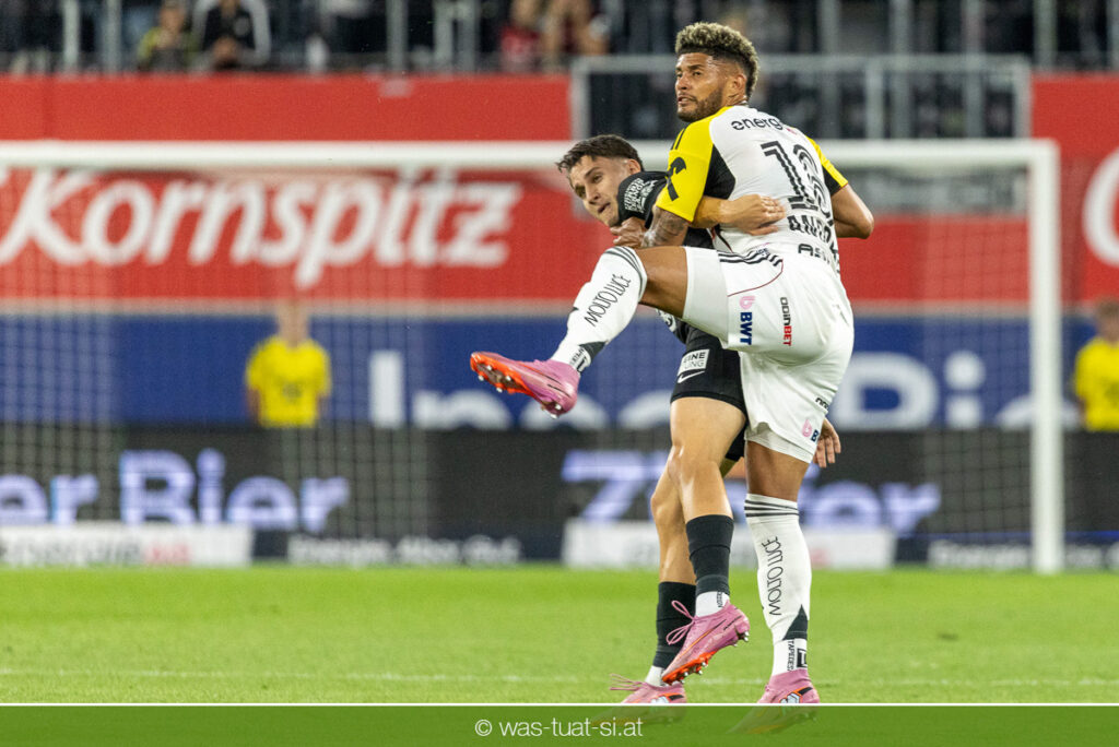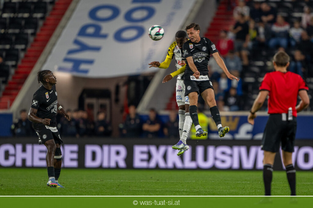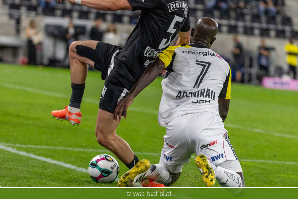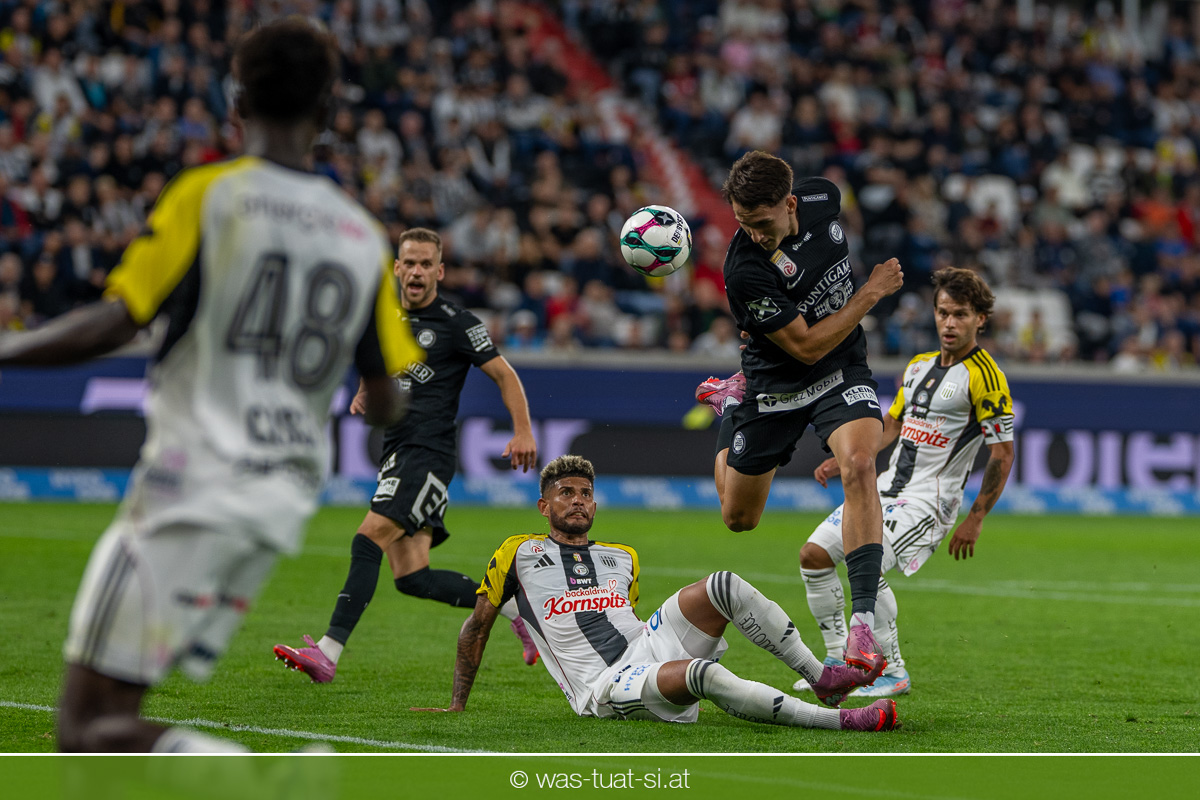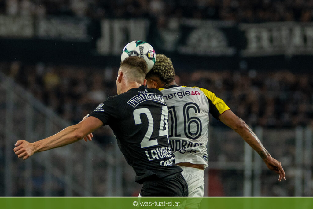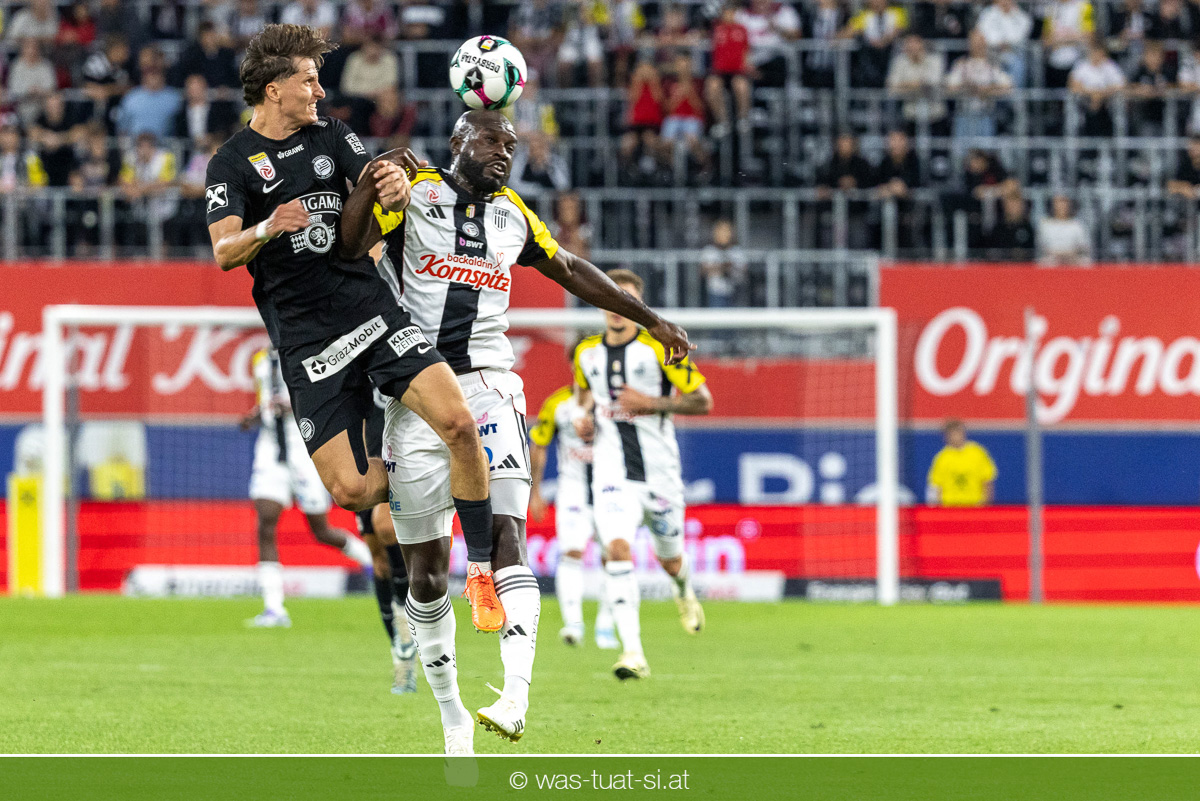 Der Meister ließ auch danach immer wieder seine Klasse aufblitzen, allen voran im Umschaltspiel nach Ballgewinn, wo die Grazer mit viel Tempo agierten und zu weiteren Möglichkeiten gelangten. Etwa nach 34 Minuten, als sich LASK-Keeper Lukas Jungwirth gegen Außenverteidiger Max Johnston auszeichnen konnte. Die Athletiker in dieser Phase mit wesentlich mehr Ballbesitz – insgesamt 67 Prozent standen nach den ersten 45 Minuten zu Buche – und mit phasenweise sehr gefälligem Spiel in der Aufbauzone wie auch im Mitteldrittel. Was fehlte, waren jedoch die klaren Torszenen, weil man im Angriffsdrittel oftmals zu unpräzise agierte und zahlreiche Hereingaben beim Gegner landeten.