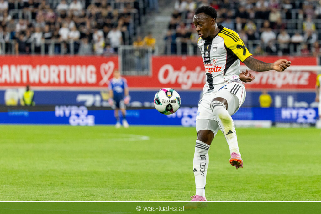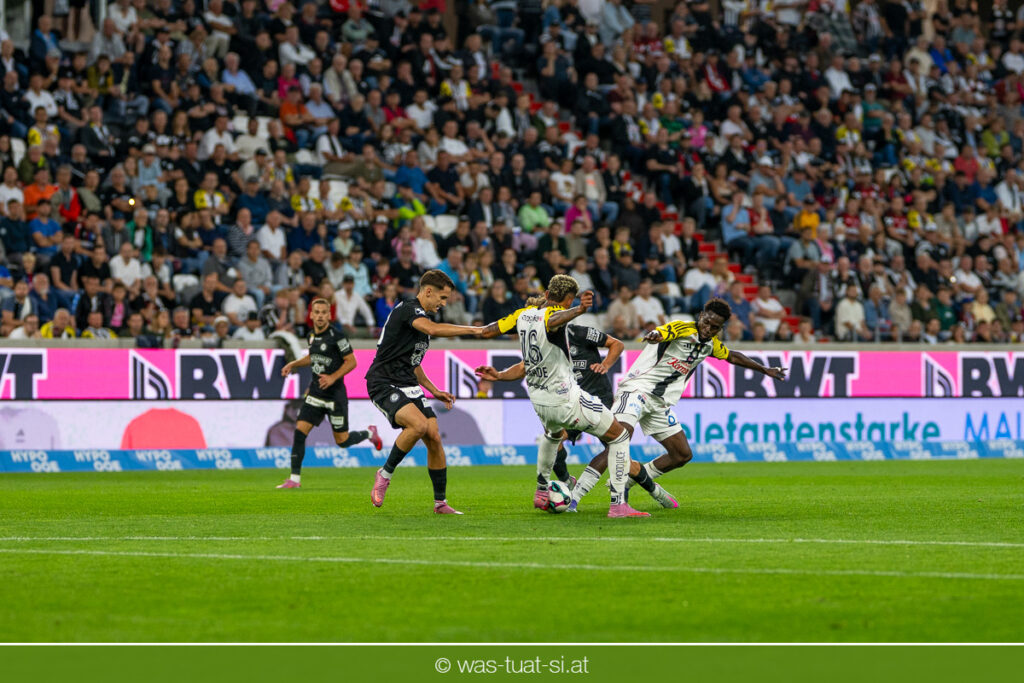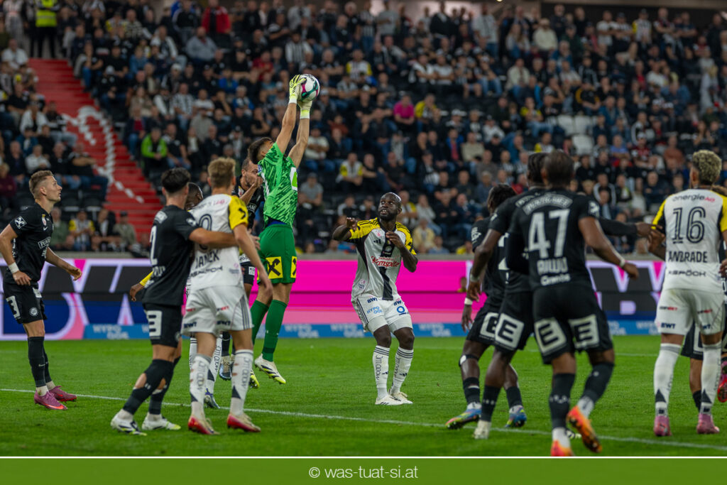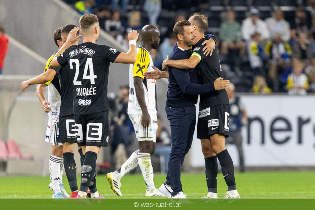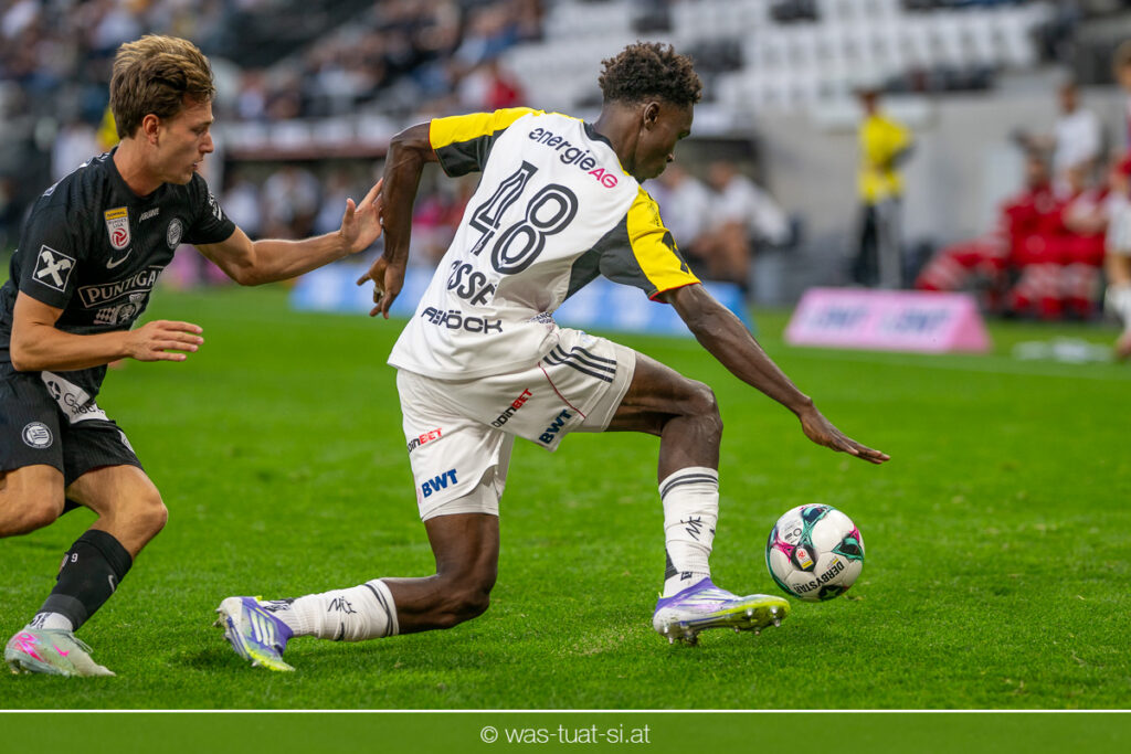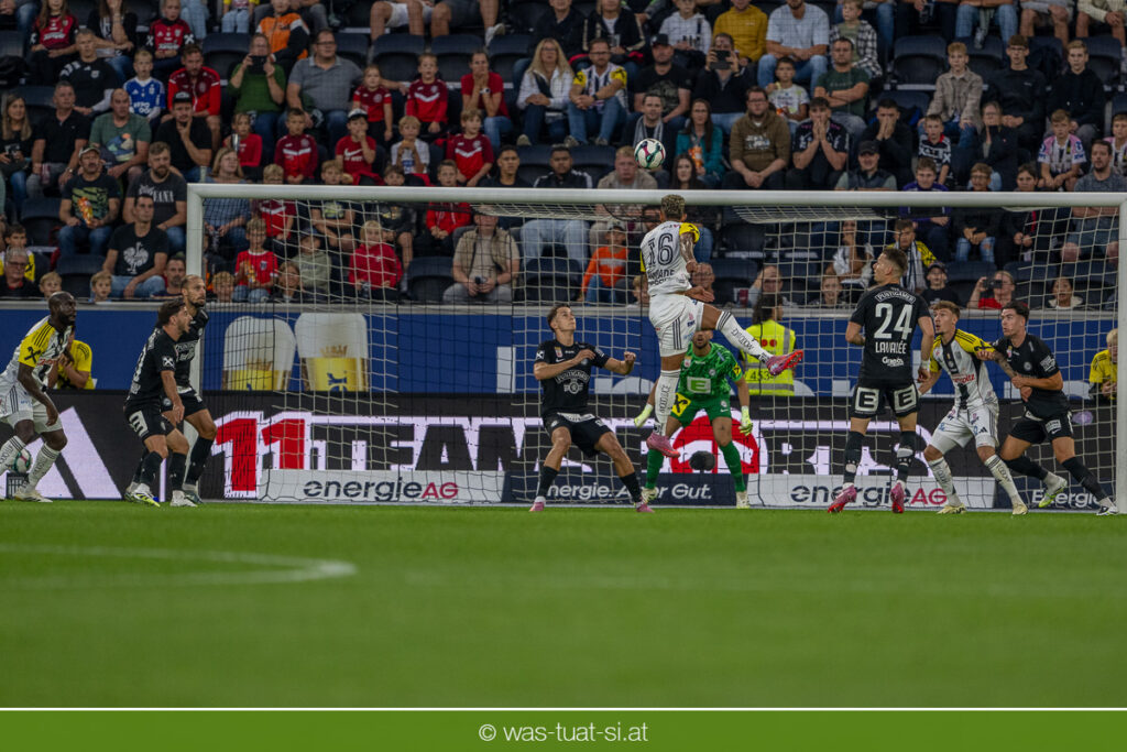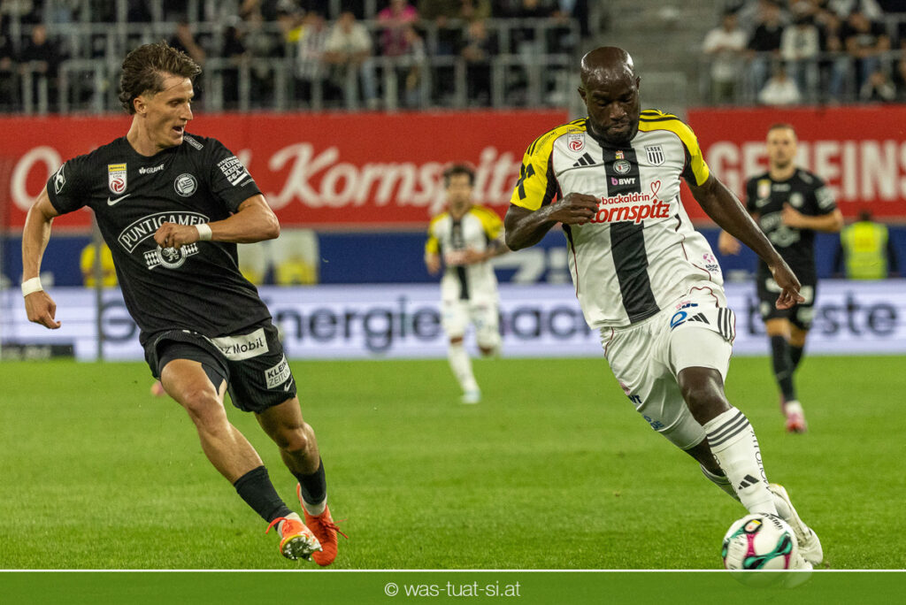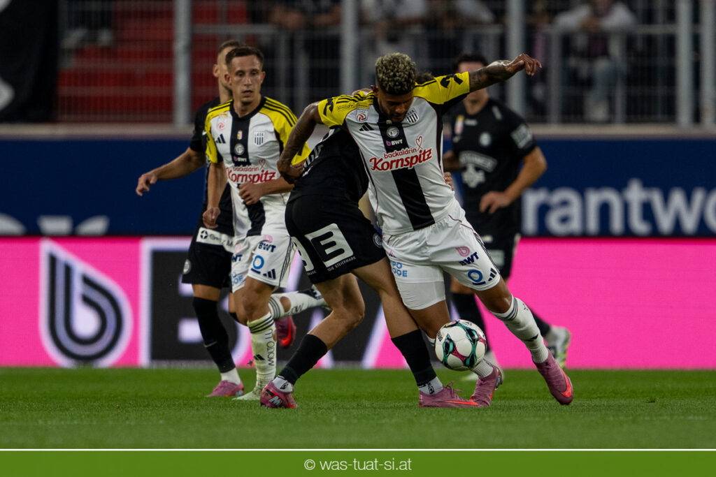 Der Meister ließ auch danach immer wieder seine Klasse aufblitzen, allen voran im Umschaltspiel nach Ballgewinn, wo die Grazer mit viel Tempo agierten und zu weiteren Möglichkeiten gelangten. Etwa nach 34 Minuten, als sich LASK-Keeper Lukas Jungwirth gegen Außenverteidiger Max Johnston auszeichnen konnte. Die Athletiker in dieser Phase mit wesentlich mehr Ballbesitz – insgesamt 67 Prozent standen nach den ersten 45 Minuten zu Buche – und mit phasenweise sehr gefälligem Spiel in der Aufbauzone wie auch im Mitteldrittel. Was fehlte, waren jedoch die klaren Torszenen, weil man im Angriffsdrittel oftmals zu unpräzise agierte und zahlreiche Hereingaben beim Gegner landeten.