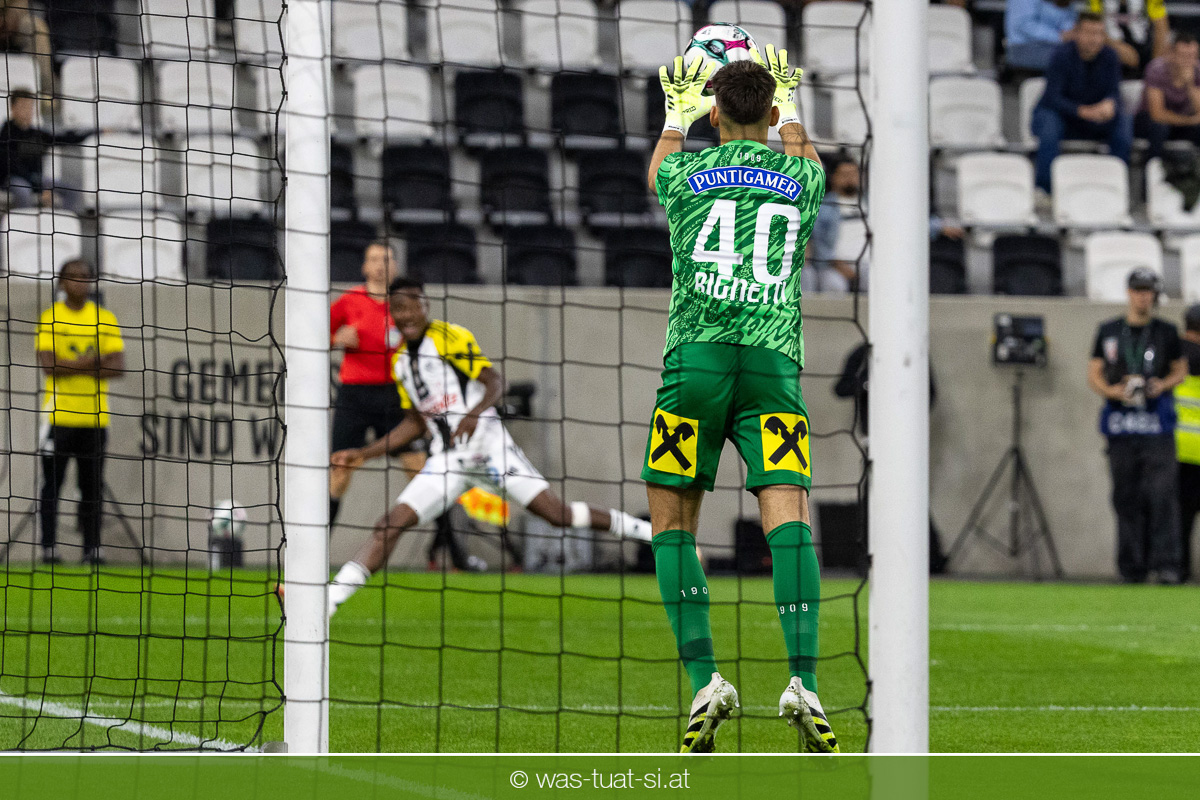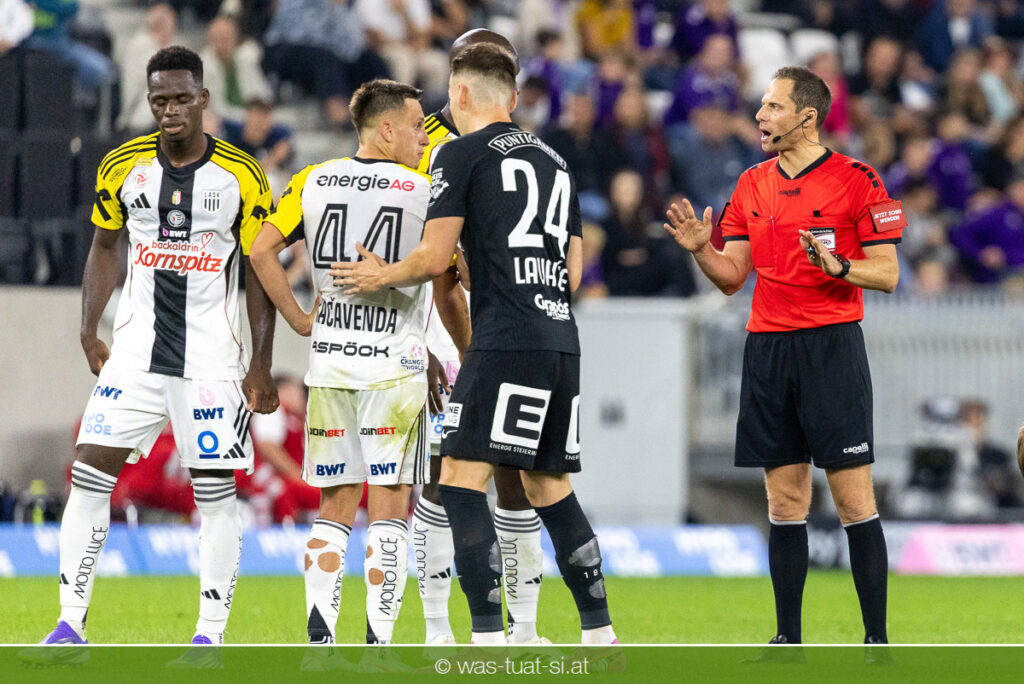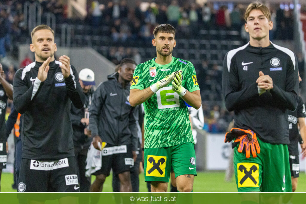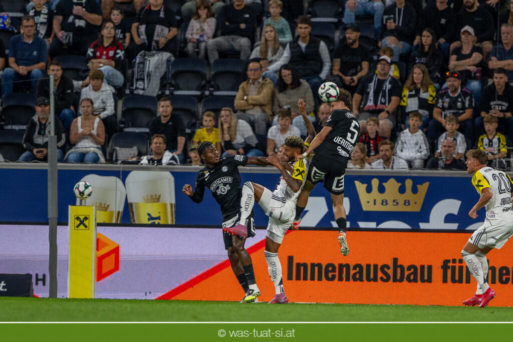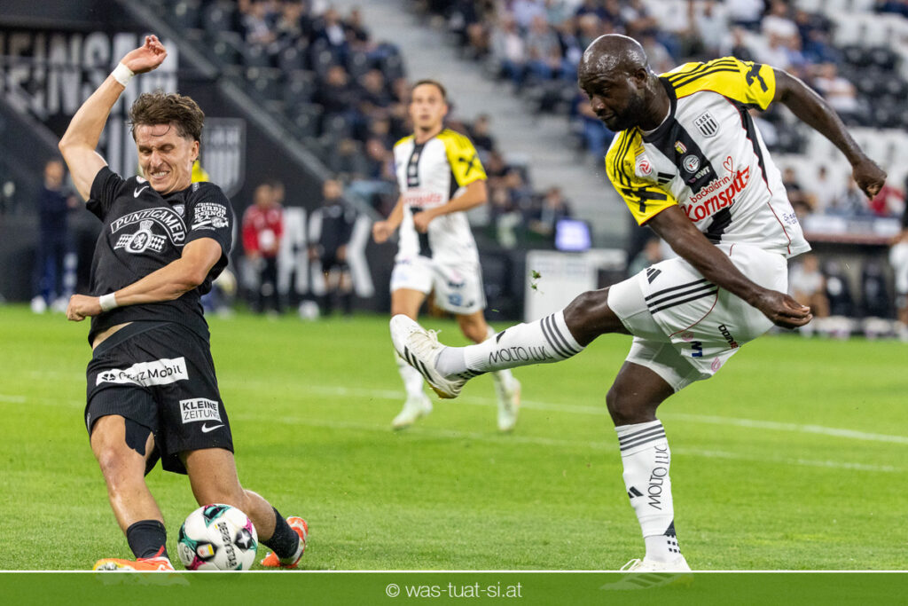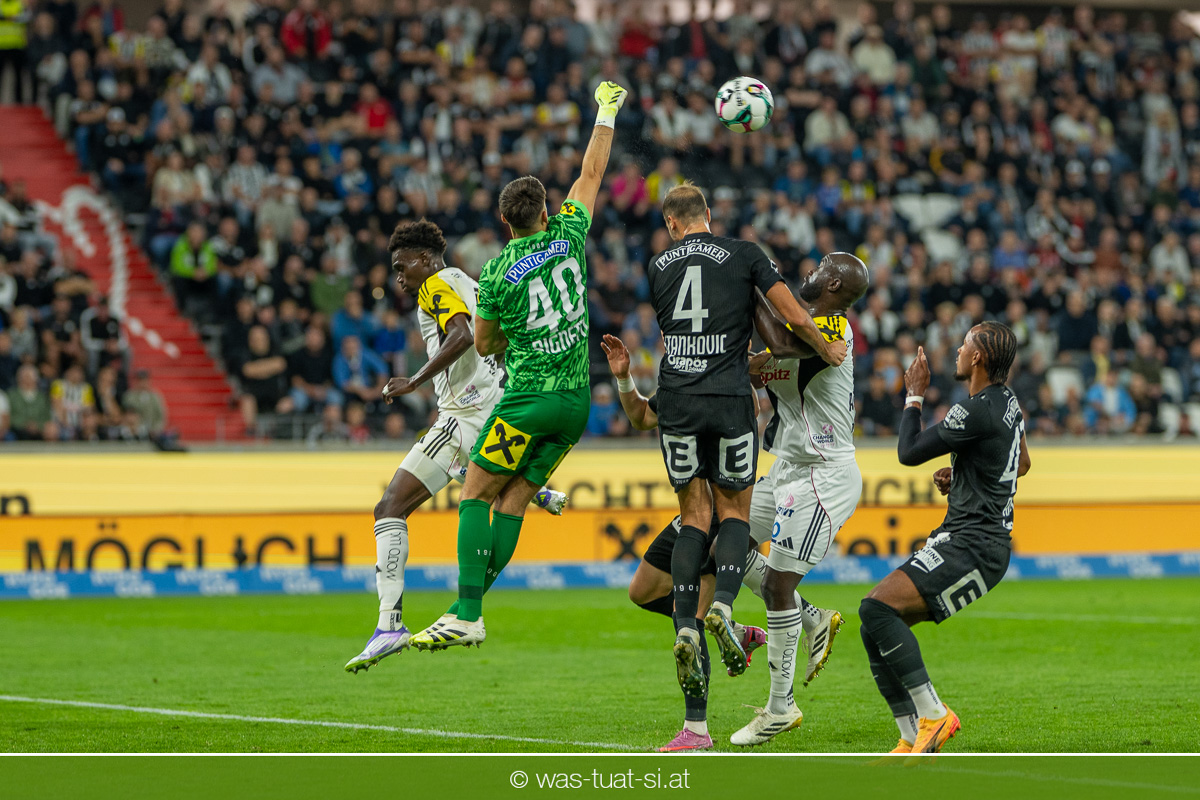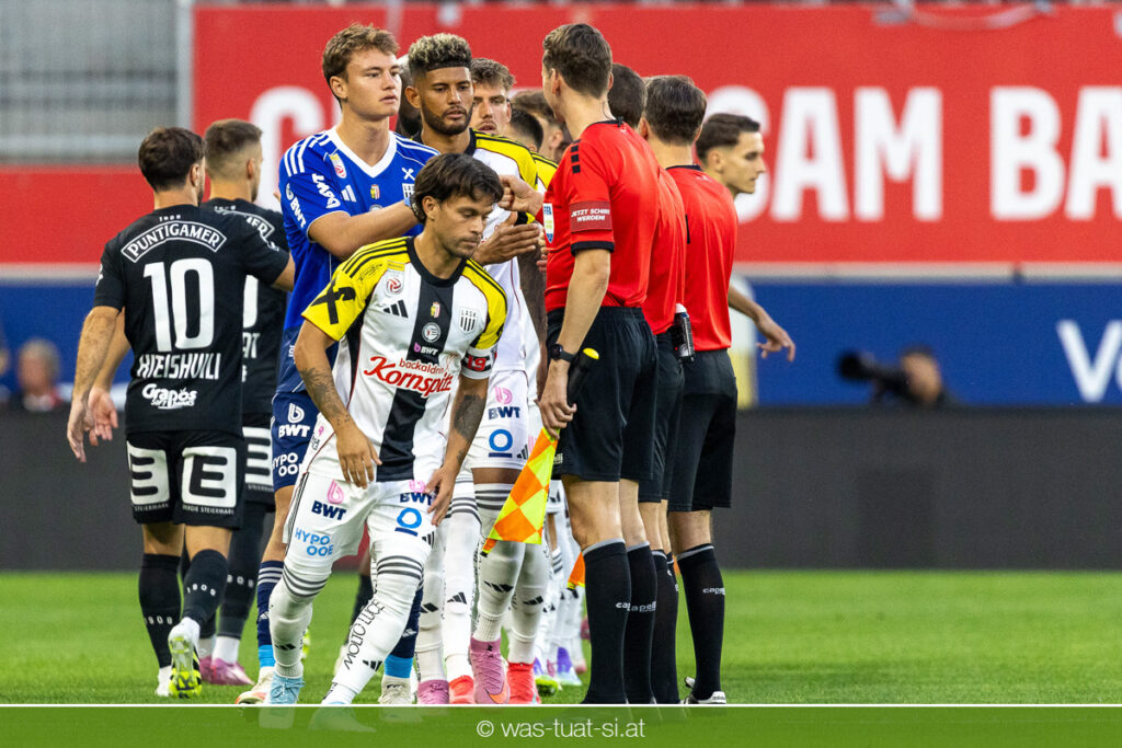 Der Meister ließ auch danach immer wieder seine Klasse aufblitzen, allen voran im Umschaltspiel nach Ballgewinn, wo die Grazer mit viel Tempo agierten und zu weiteren Möglichkeiten gelangten. Etwa nach 34 Minuten, als sich LASK-Keeper Lukas Jungwirth gegen Außenverteidiger Max Johnston auszeichnen konnte. Die Athletiker in dieser Phase mit wesentlich mehr Ballbesitz – insgesamt 67 Prozent standen nach den ersten 45 Minuten zu Buche – und mit phasenweise sehr gefälligem Spiel in der Aufbauzone wie auch im Mitteldrittel. Was fehlte, waren jedoch die klaren Torszenen, weil man im Angriffsdrittel oftmals zu unpräzise agierte und zahlreiche Hereingaben beim Gegner landeten.