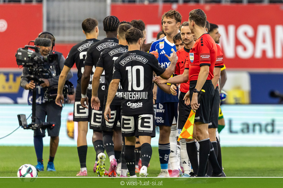 Cheftrainer Joao Sacramento vertraute bei seinem Heim-Debüt auf der LASK-Bank vorwiegend jener Elf, die zuletzt im ÖFB-Cup souverän den Einzug in Runde zwei geschafft hatte. Einzig Modou Keba Cisse rückte in der Innenverteidigung neben Andres Andrade in die Anfangsformation. Das Match begann mit einer kalten Dusche für die Athletiker: Mit der ersten echten Möglichkeit gingen die Grazer in Führung, nach einem Latten-Kopfball war Leon Grgic im zweiten Versuch zur Stelle – das 0:1 nach nur neun Minuten. Es sollte noch dicker kommen für die Linzer: Eine Attacke von Andres Andrade im Sechzehner führte zu einem Foulelfmeter zugunsten der Gäste, diese Gelegenheit ließ sich Otari Kiteishvili nicht entgehen (12.).