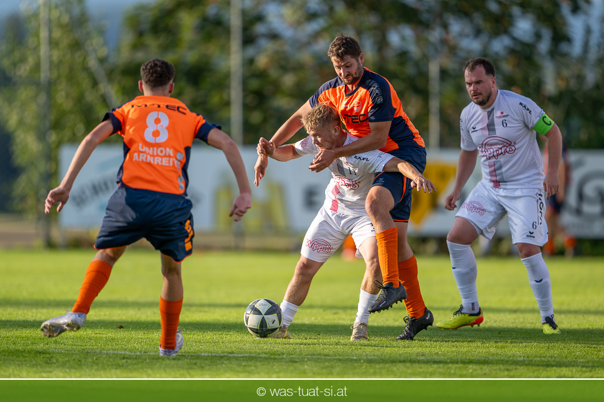 Nachdem es schon zum Start gegen Julbach nicht gut gelaufen war, setzte es für die Union Wippro Vorderweißenbach auch in der zweiten Runde der Bezirksliga Nord eine Niederlage: Die Truppe von Coach Josef Prihoda musste sich der Union Arnreit auswärts mit 2:3 (1:2) geschlagen geben. Dabei glückte den Schmankerldorfkickern vorerst ein Start nach Maß: Julian Raab war nach sechs Minuten mit einem sehenswerten Volley zur Stelle und sorgte für die Vorderweißenbacher Führung. Diese währte allerdings nicht lange: Nach knapp 20 Minuten drehten die Hausherren die Partie durch Treffer von Kevin und Patrick Aiglstorfer mit einem Doppelschlag um – die Verteidigung der Gäste machte dabei keine wirklich gute Figur. In der Folge verlagerte sich das Spielgeschehen in das Mittelfeld, echte Torszenen blieben Mangelware. Als den Gastgebern durch Simader das 3:1 gelang (66.), war die Messe endgültig gelesen – das 2:3 durch Svoboda in Minute 85 kam zu spät, um dem Spiel noch eine Wende zu geben.