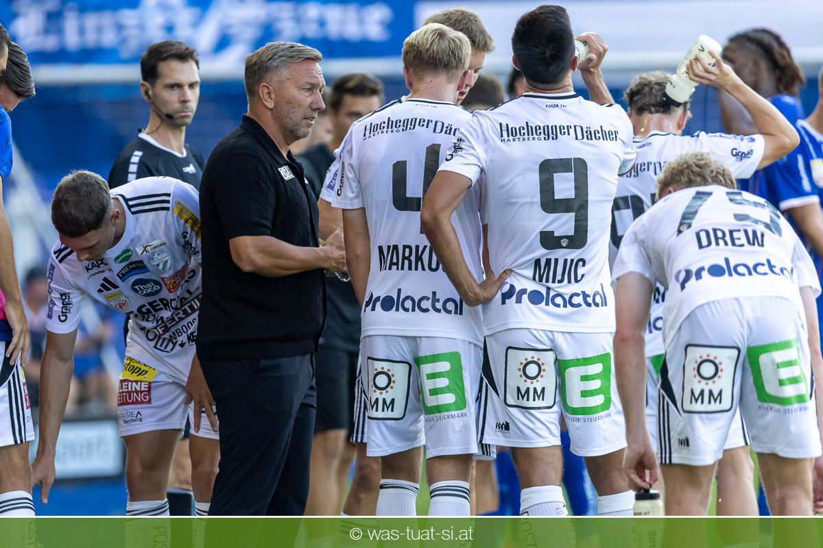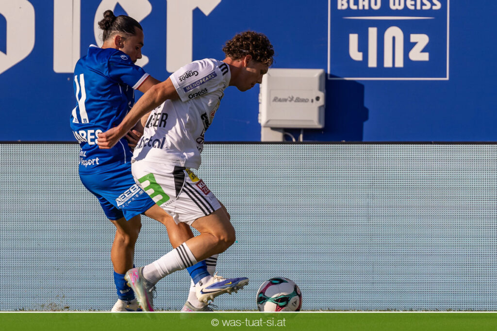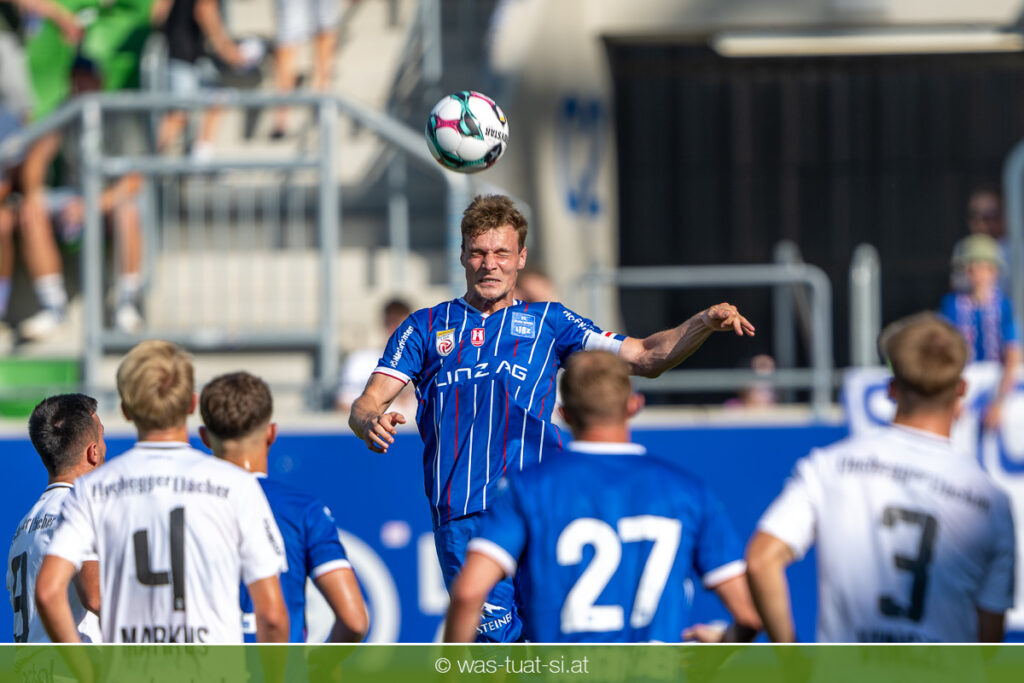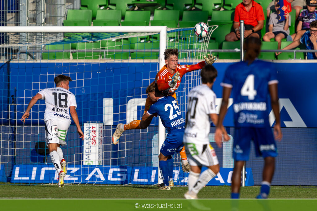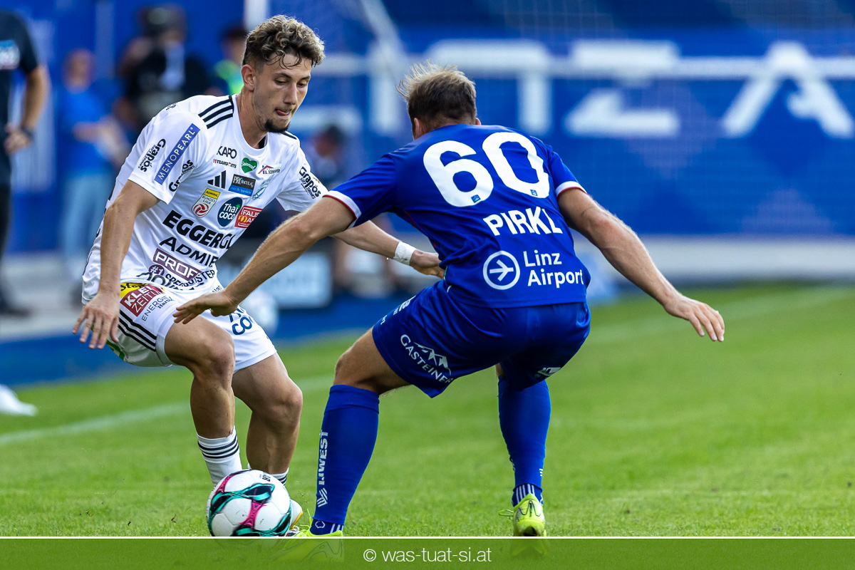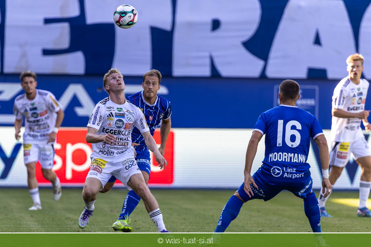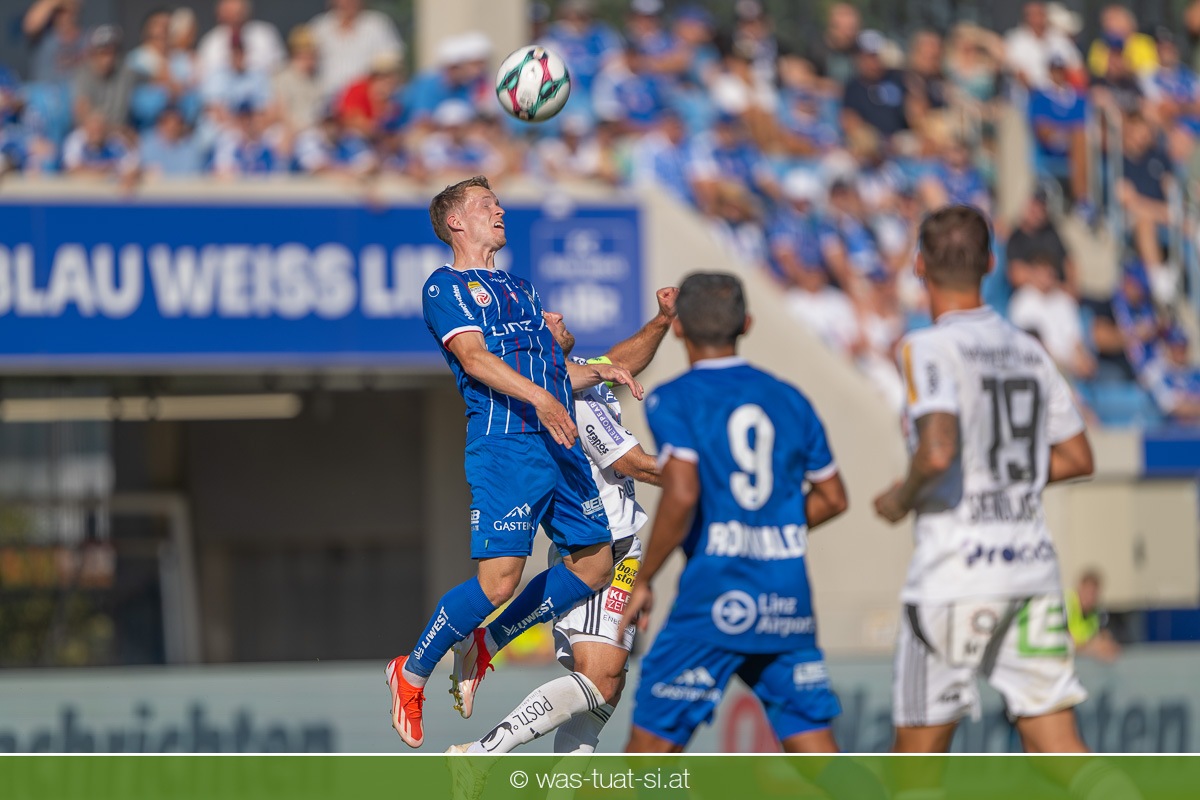 Bei hochsommerlichen Temperaturen über 30 Grad starteten die Hausherren aktiv ins Spiel. Von Beginn an bestimmten die Linzer das Geschehen, ließen den Ball gut zirkulieren und hielten den Gegner weitgehend in der eigenen Hälfte. Zwingende Chancen blieben jedoch Mangelware. Ronivaldo und Nico Maier versuchten es aus der Distanz, fanden aber keinen Weg vorbei an Hartbergs Keeper Tom Hülsmann. Defensiv standen die Gäste kompakt und lange Zeit schien es auf ein torloses Remis zur Pause hinauszulaufen. Doch in der vierten Minute der Nachspielzeit der ersten Hälfte nutzte Hartberg seine erste wirklich gefährliche Aktion: Über rechts kam Elias Havel durch, legte auf Jed Drew ab und der traf im Nachsetzen zum 0:1. Ein bitterer Schlag für die Linzer, die bis dahin klar tonangebend waren.