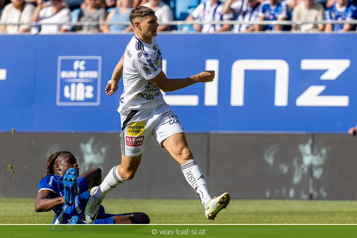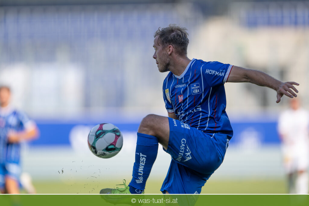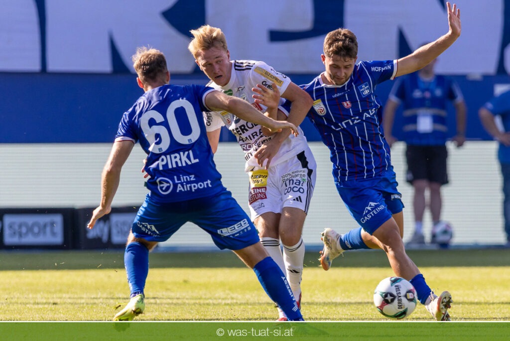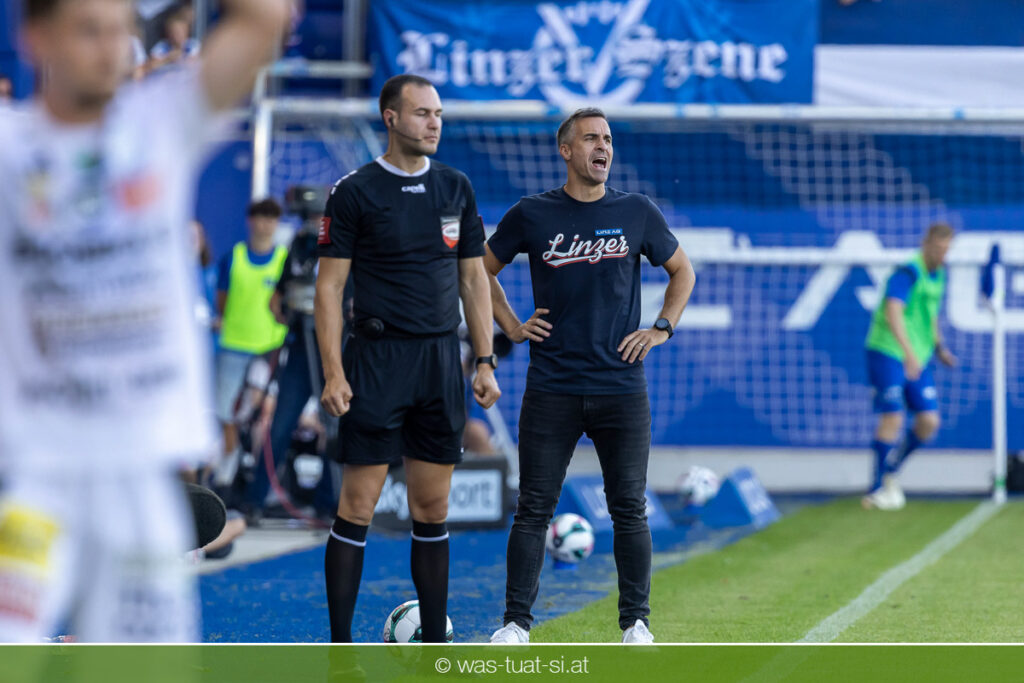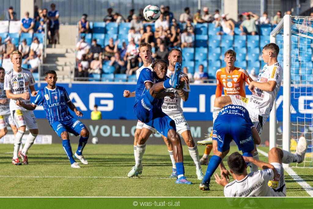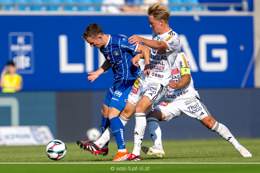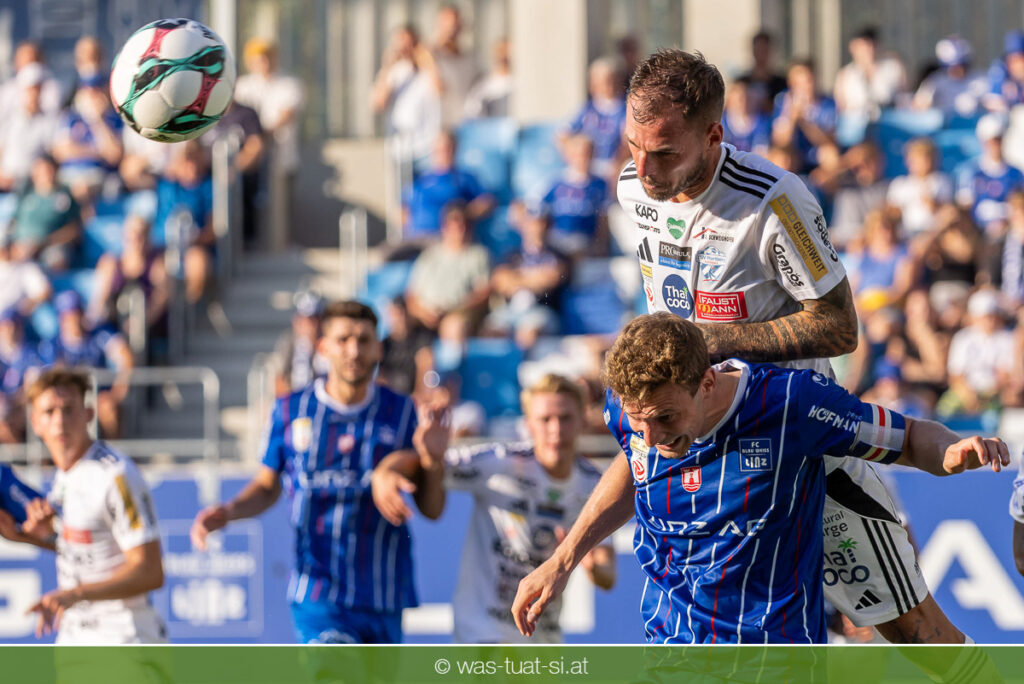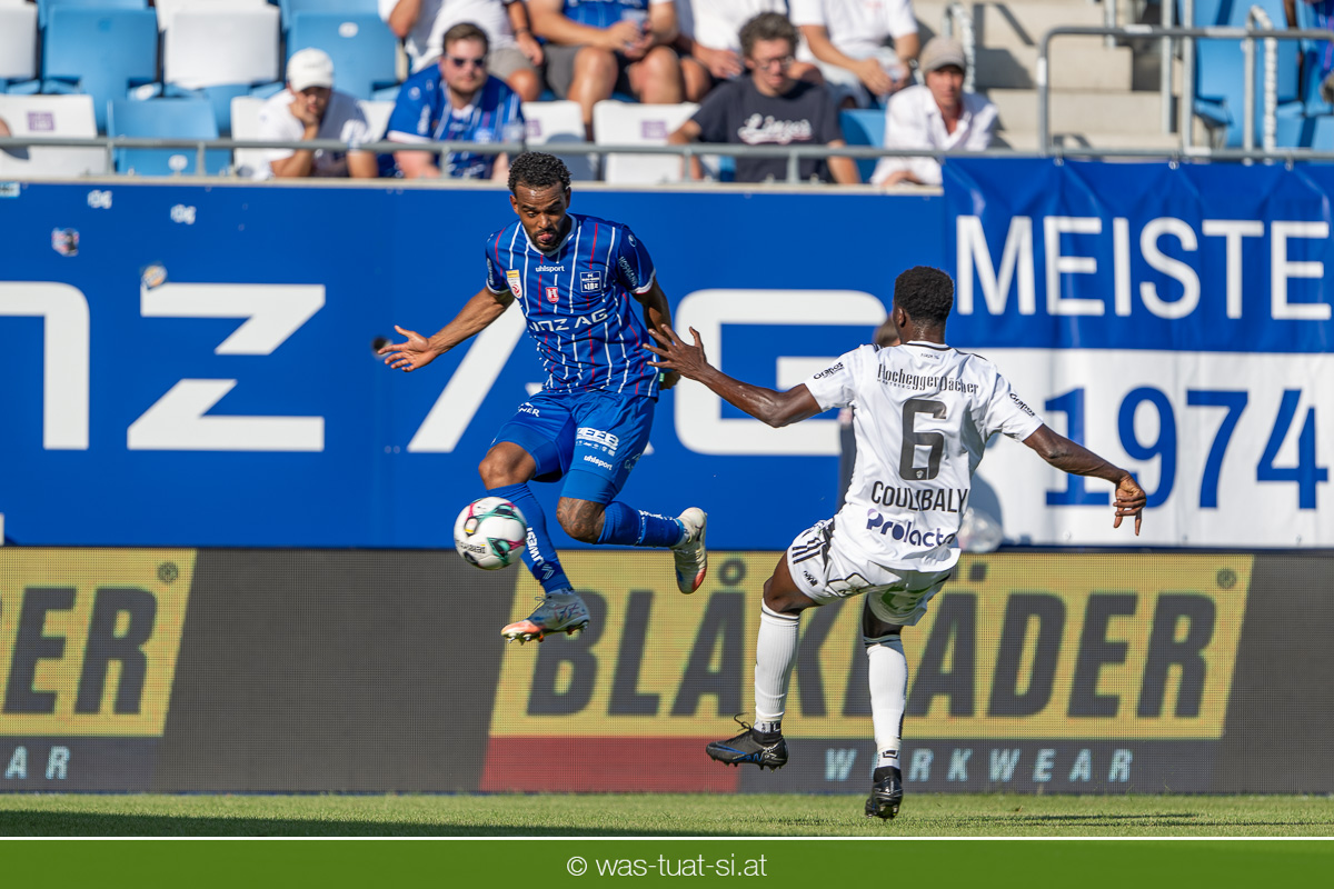 Bei hochsommerlichen Temperaturen über 30 Grad starteten die Hausherren aktiv ins Spiel. Von Beginn an bestimmten die Linzer das Geschehen, ließen den Ball gut zirkulieren und hielten den Gegner weitgehend in der eigenen Hälfte. Zwingende Chancen blieben jedoch Mangelware. Ronivaldo und Nico Maier versuchten es aus der Distanz, fanden aber keinen Weg vorbei an Hartbergs Keeper Tom Hülsmann. Defensiv standen die Gäste kompakt und lange Zeit schien es auf ein torloses Remis zur Pause hinauszulaufen. Doch in der vierten Minute der Nachspielzeit der ersten Hälfte nutzte Hartberg seine erste wirklich gefährliche Aktion: Über rechts kam Elias Havel durch, legte auf Jed Drew ab und der traf im Nachsetzen zum 0:1. Ein bitterer Schlag für die Linzer, die bis dahin klar tonangebend waren.