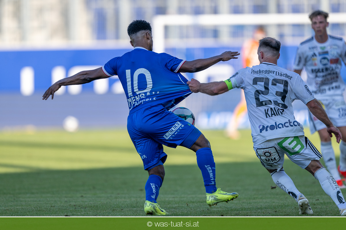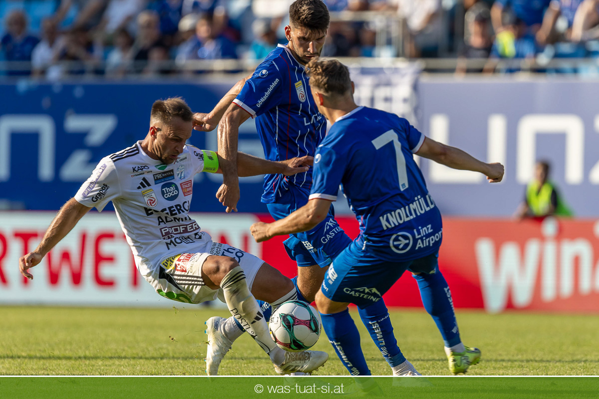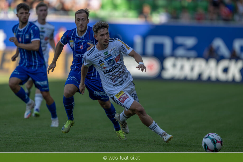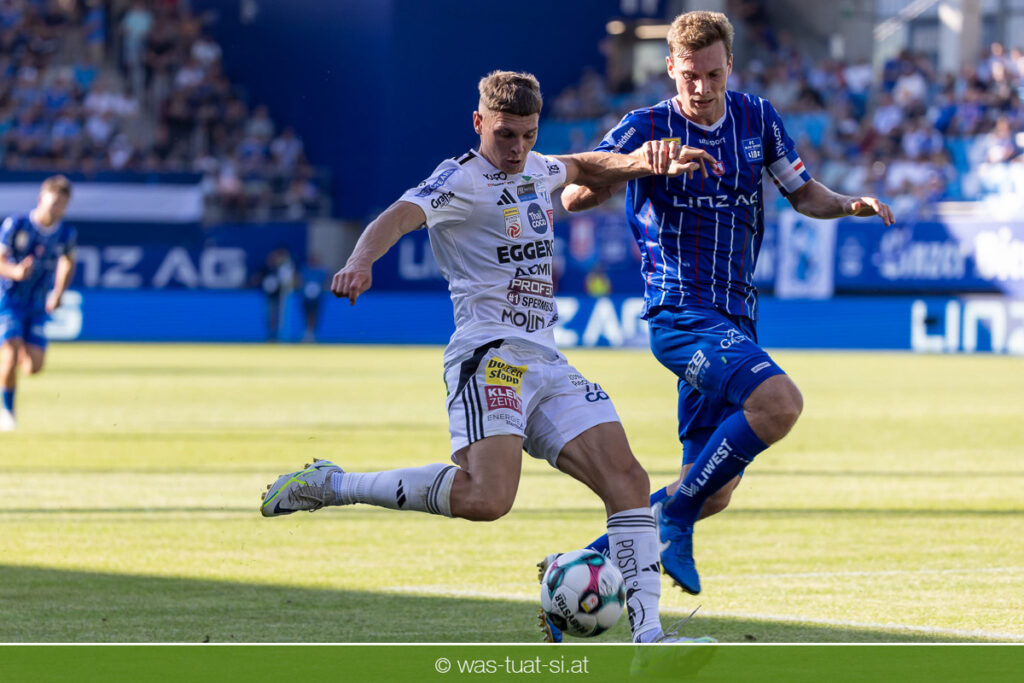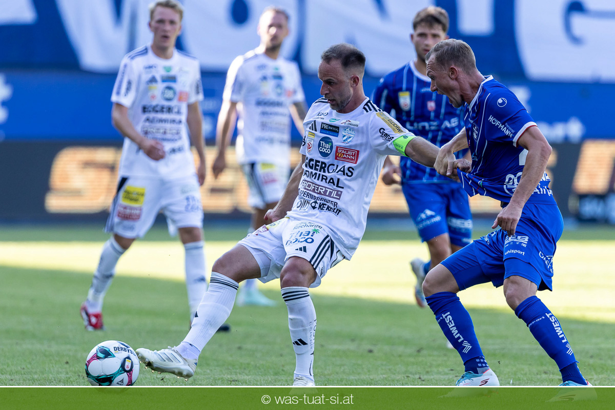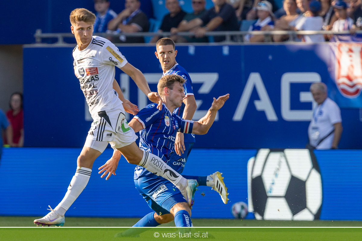 Bei hochsommerlichen Temperaturen über 30 Grad starteten die Hausherren aktiv ins Spiel. Von Beginn an bestimmten die Linzer das Geschehen, ließen den Ball gut zirkulieren und hielten den Gegner weitgehend in der eigenen Hälfte. Zwingende Chancen blieben jedoch Mangelware. Ronivaldo und Nico Maier versuchten es aus der Distanz, fanden aber keinen Weg vorbei an Hartbergs Keeper Tom Hülsmann. Defensiv standen die Gäste kompakt und lange Zeit schien es auf ein torloses Remis zur Pause hinauszulaufen. Doch in der vierten Minute der Nachspielzeit der ersten Hälfte nutzte Hartberg seine erste wirklich gefährliche Aktion: Über rechts kam Elias Havel durch, legte auf Jed Drew ab und der traf im Nachsetzen zum 0:1. Ein bitterer Schlag für die Linzer, die bis dahin klar tonangebend waren.