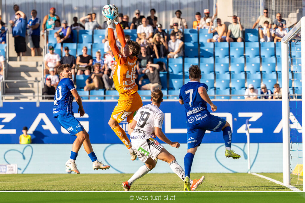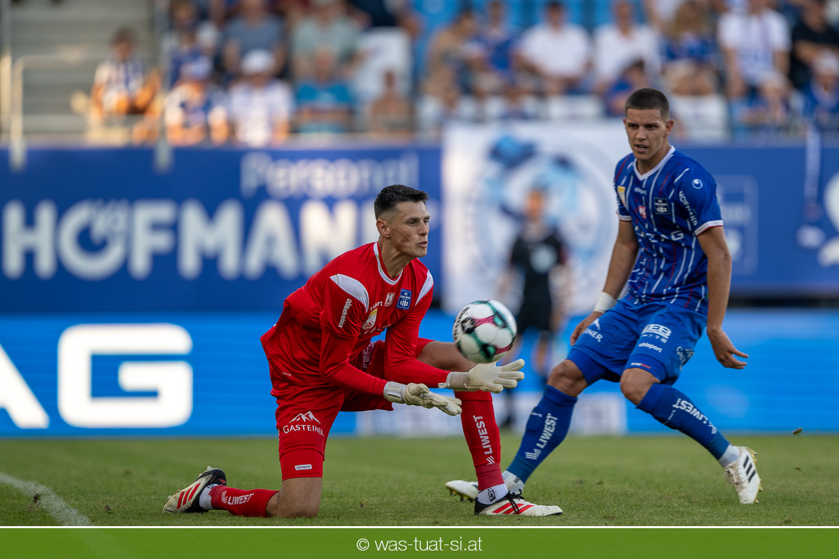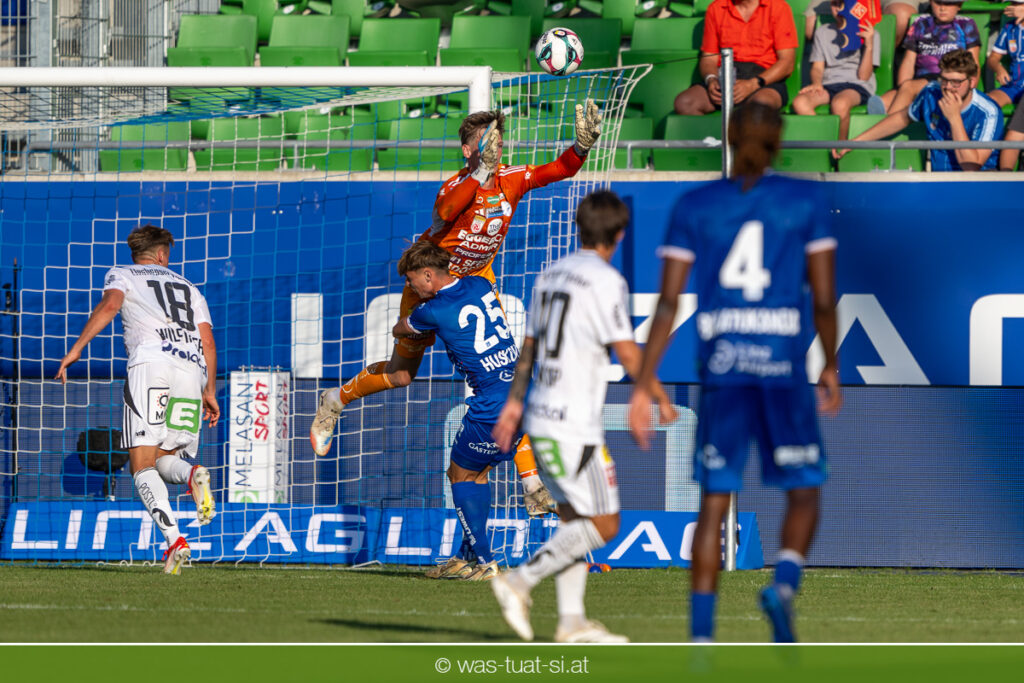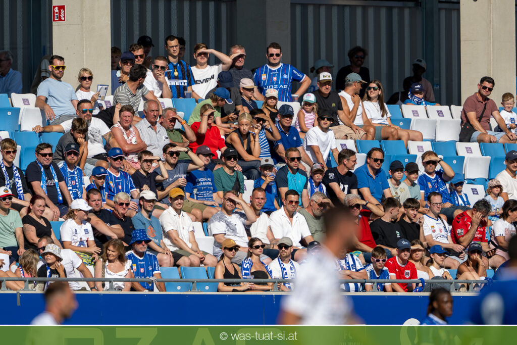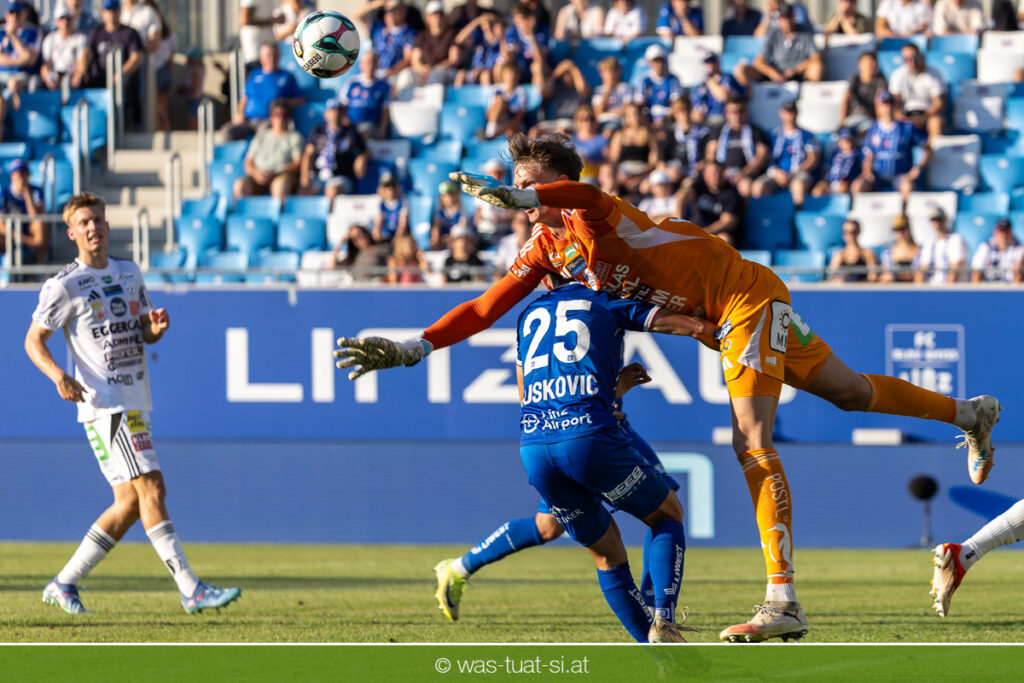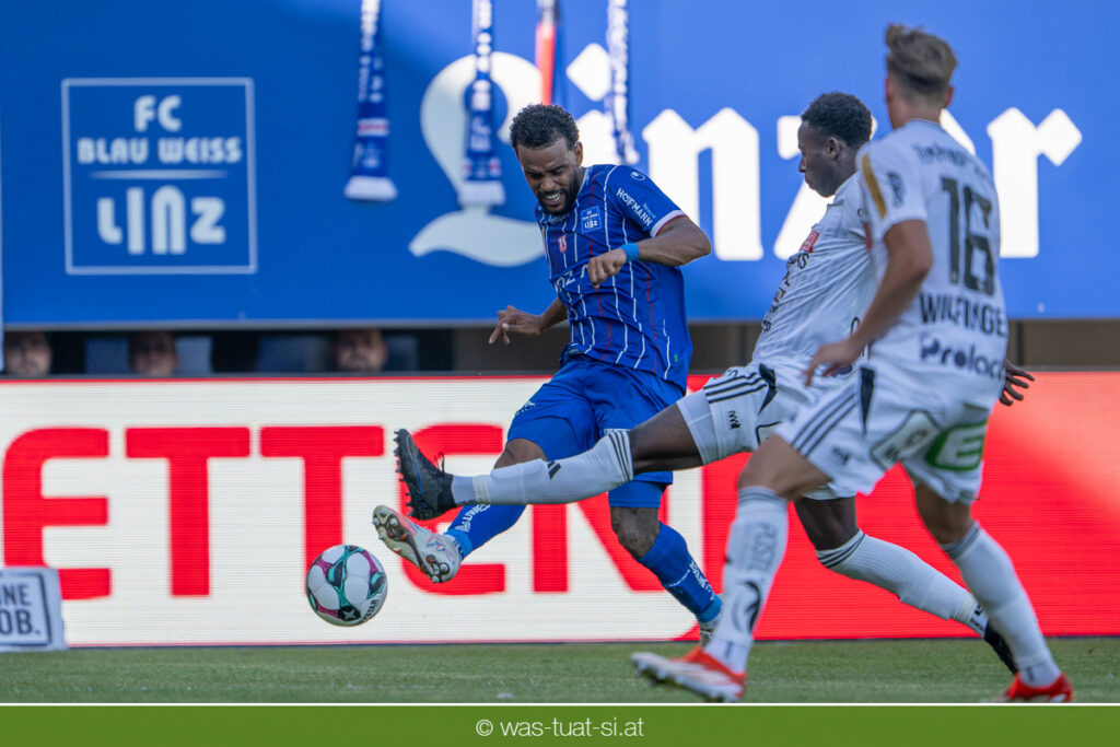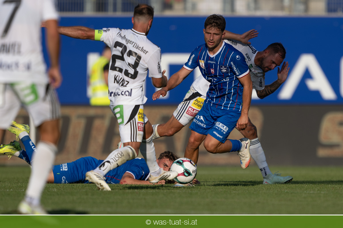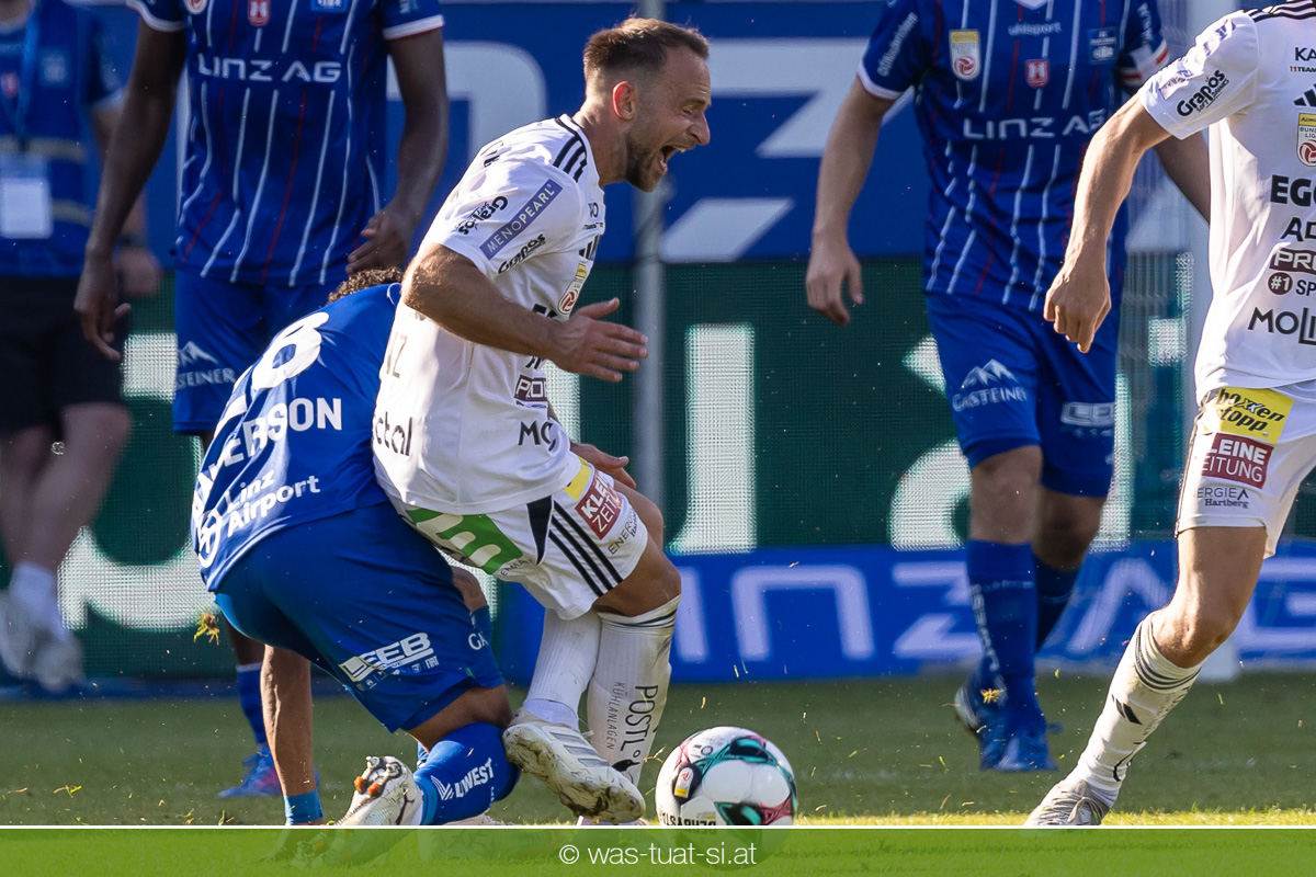 Bei hochsommerlichen Temperaturen über 30 Grad starteten die Hausherren aktiv ins Spiel. Von Beginn an bestimmten die Linzer das Geschehen, ließen den Ball gut zirkulieren und hielten den Gegner weitgehend in der eigenen Hälfte. Zwingende Chancen blieben jedoch Mangelware. Ronivaldo und Nico Maier versuchten es aus der Distanz, fanden aber keinen Weg vorbei an Hartbergs Keeper Tom Hülsmann. Defensiv standen die Gäste kompakt und lange Zeit schien es auf ein torloses Remis zur Pause hinauszulaufen. Doch in der vierten Minute der Nachspielzeit der ersten Hälfte nutzte Hartberg seine erste wirklich gefährliche Aktion: Über rechts kam Elias Havel durch, legte auf Jed Drew ab und der traf im Nachsetzen zum 0:1. Ein bitterer Schlag für die Linzer, die bis dahin klar tonangebend waren.