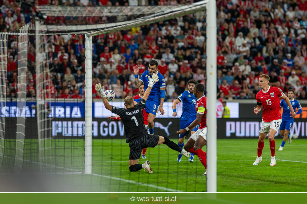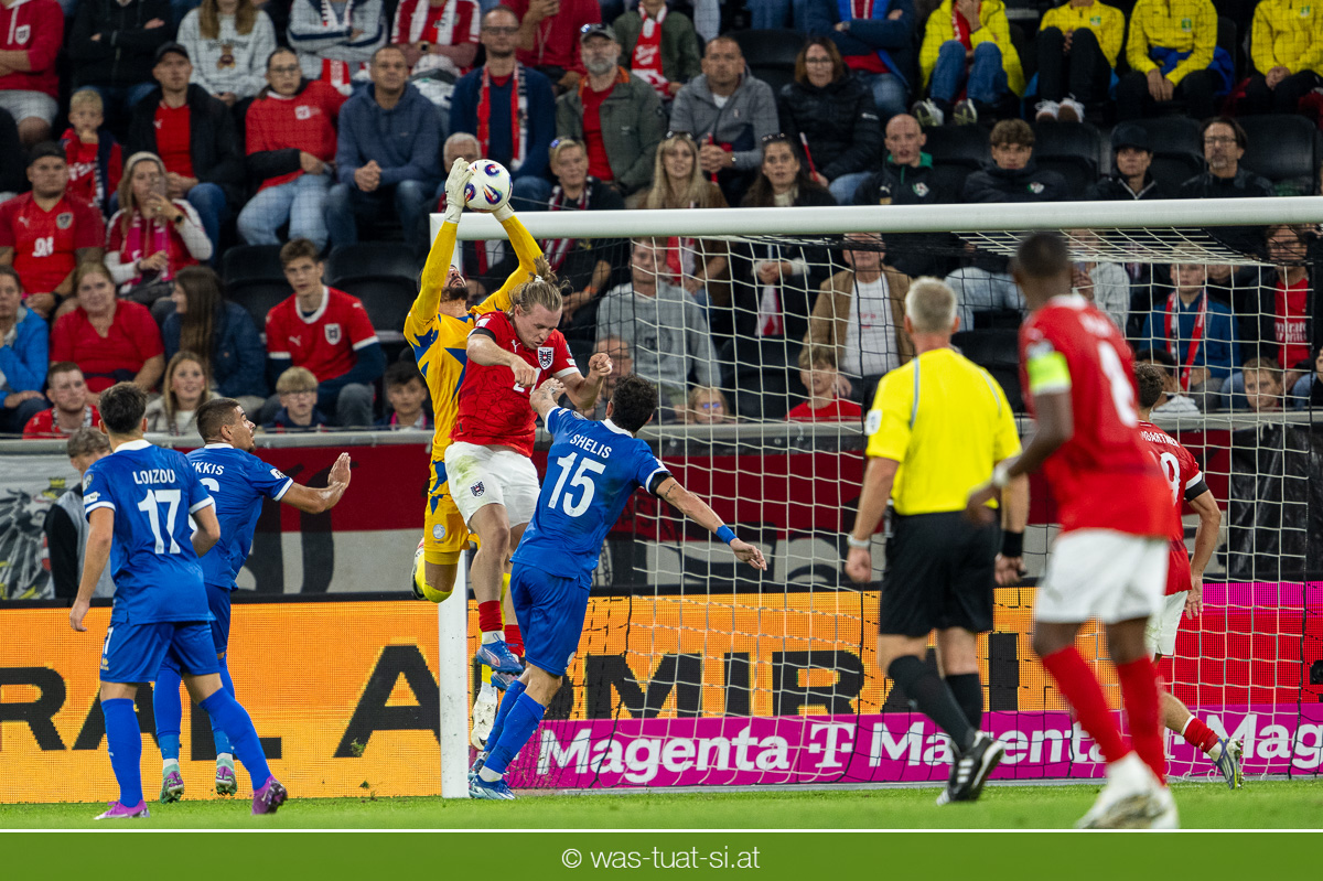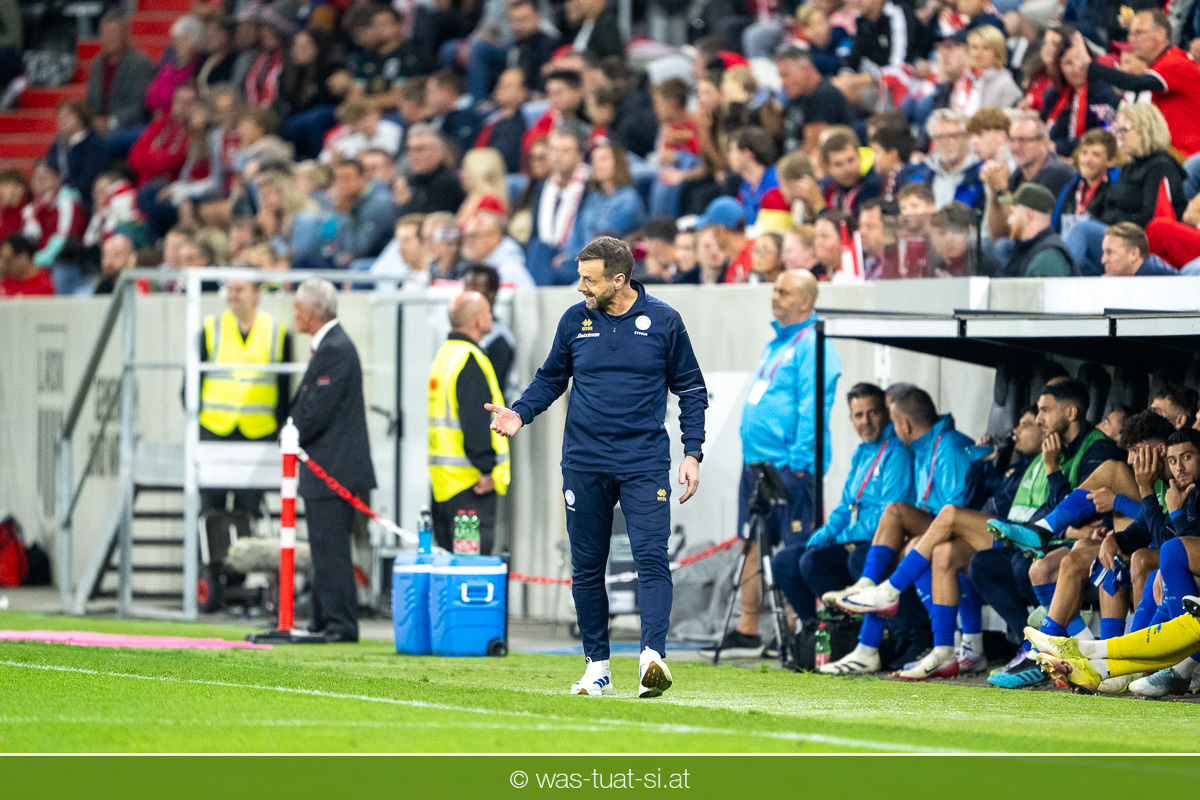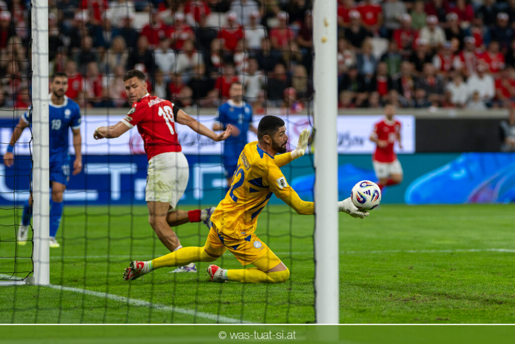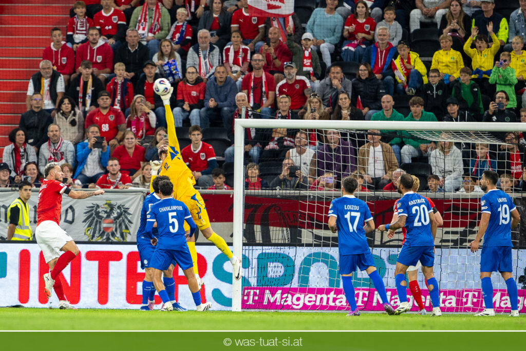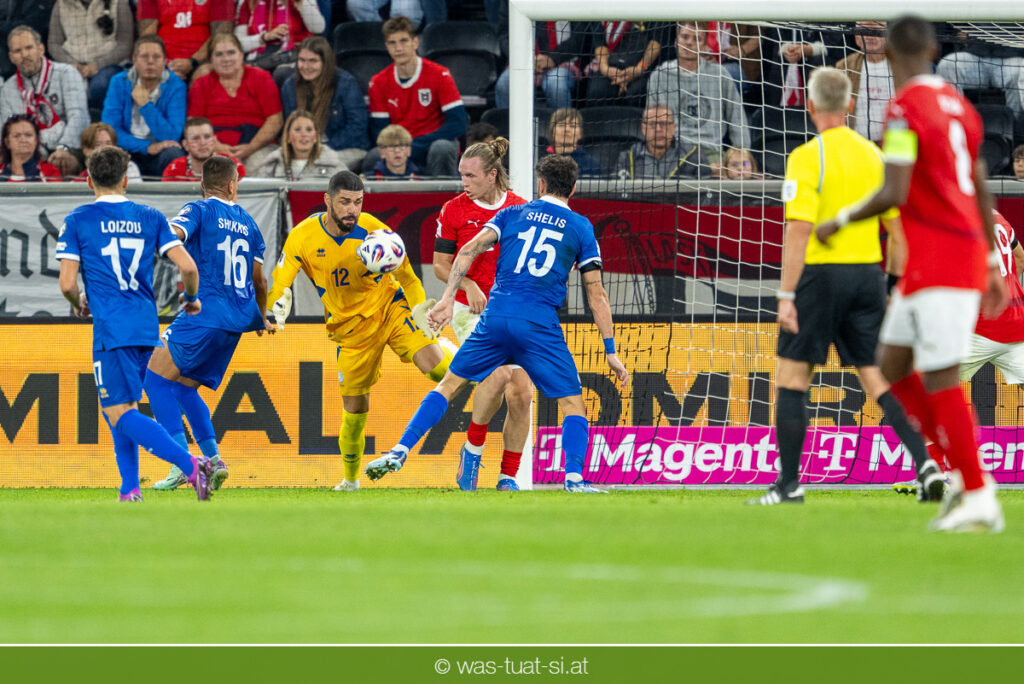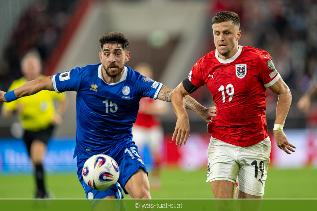 In der 23. Minute werden dann die Zyprer brandgefährlich: Ioannis Pittas trifft aus spitzem Winkel die Außenstange. Auf der Gegenseite findet dann auch Konrad Laimer eine richtig gute Gelegenheit vor, legt den Ball von der rechten Seite auf das Tor zulaufend aber links vorbei (26.).