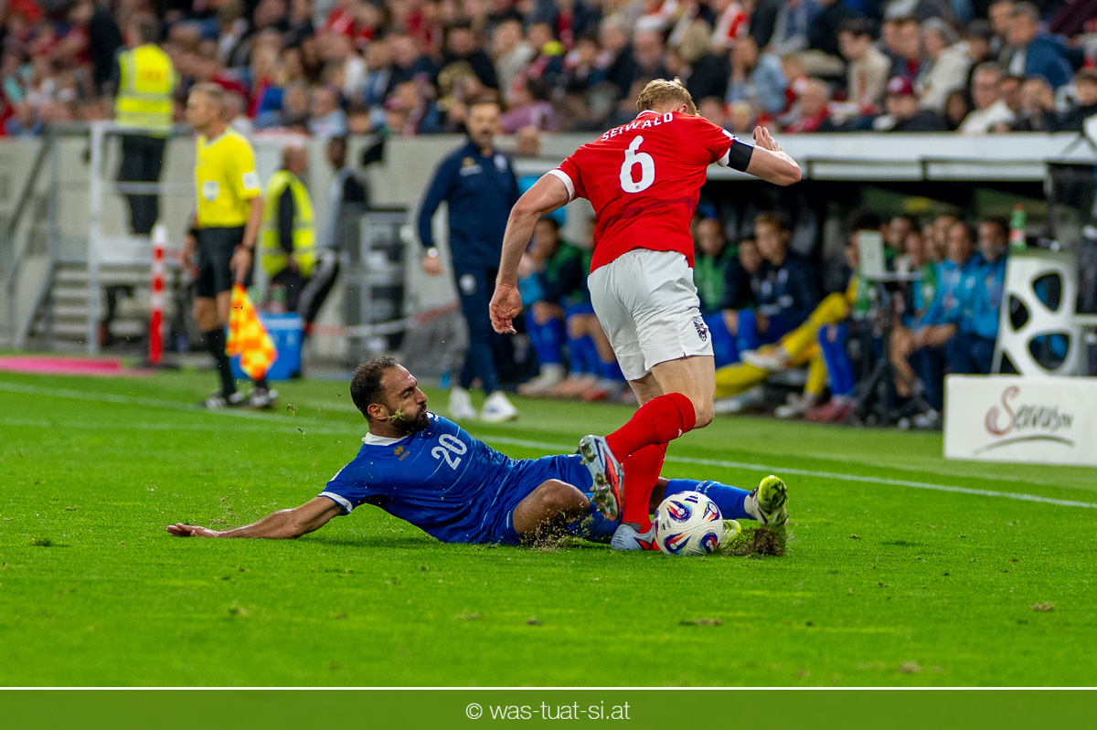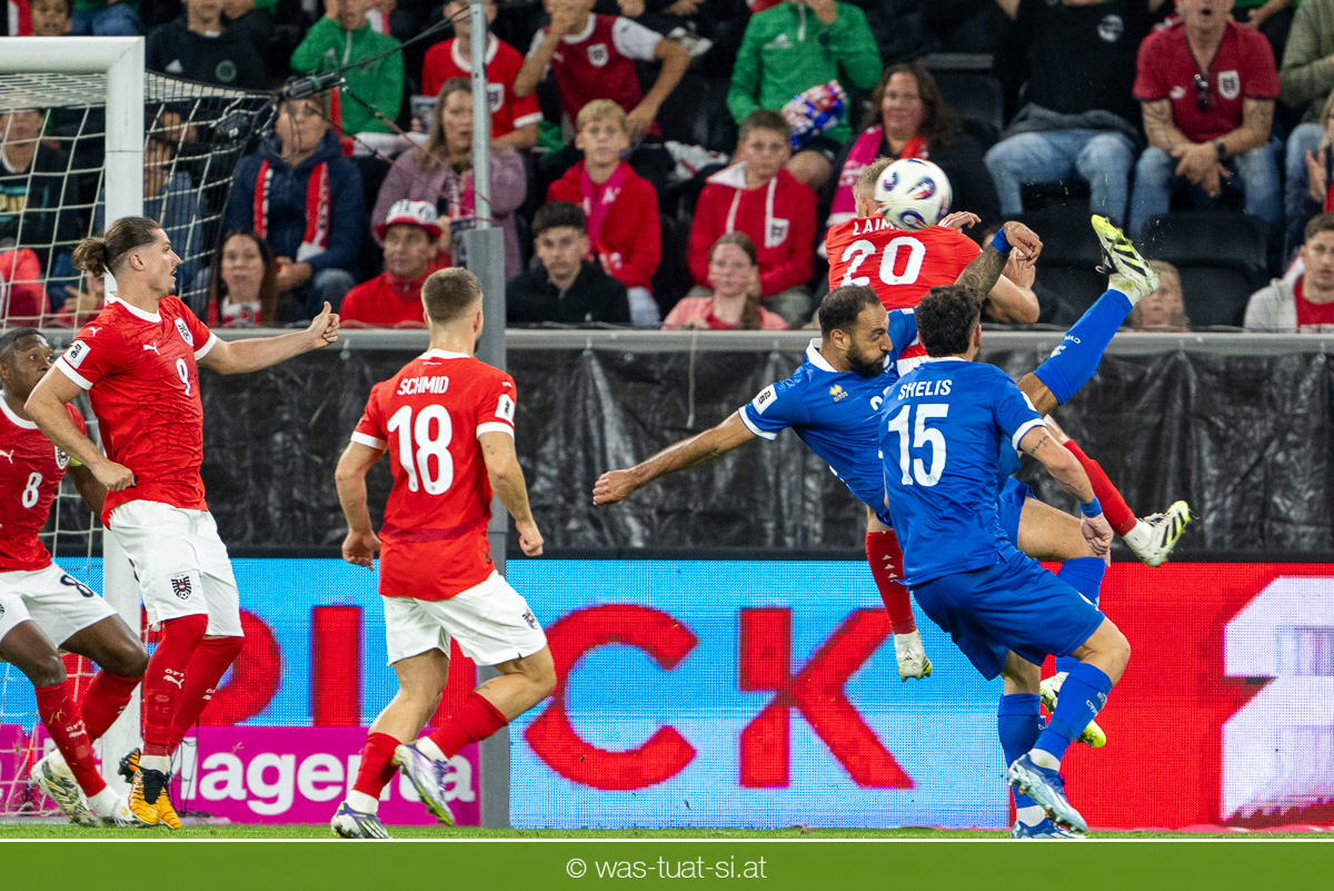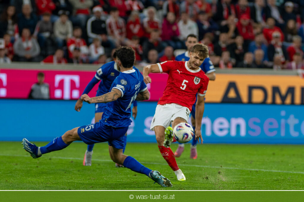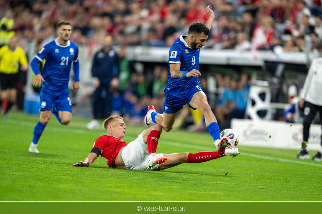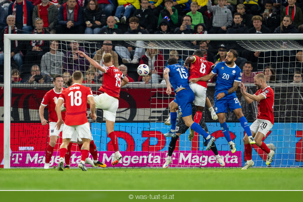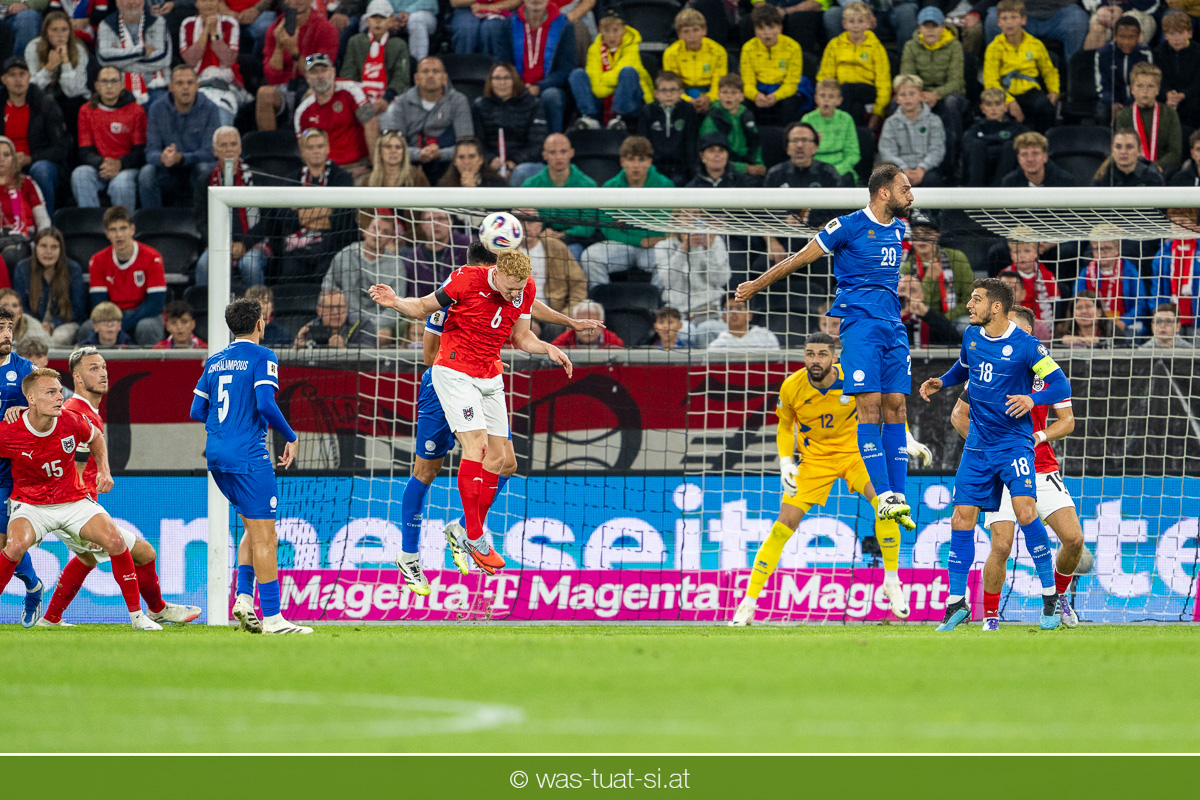 In der 23. Minute werden dann die Zyprer brandgefährlich: Ioannis Pittas trifft aus spitzem Winkel die Außenstange. Auf der Gegenseite findet dann auch Konrad Laimer eine richtig gute Gelegenheit vor, legt den Ball von der rechten Seite auf das Tor zulaufend aber links vorbei (26.).