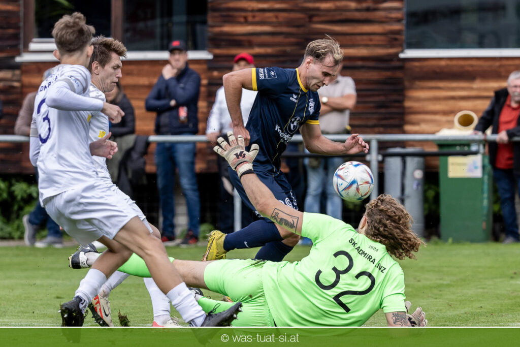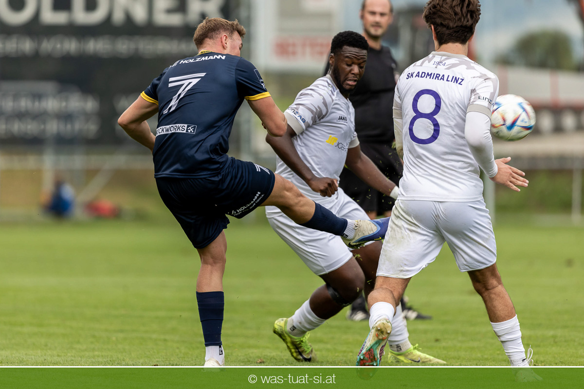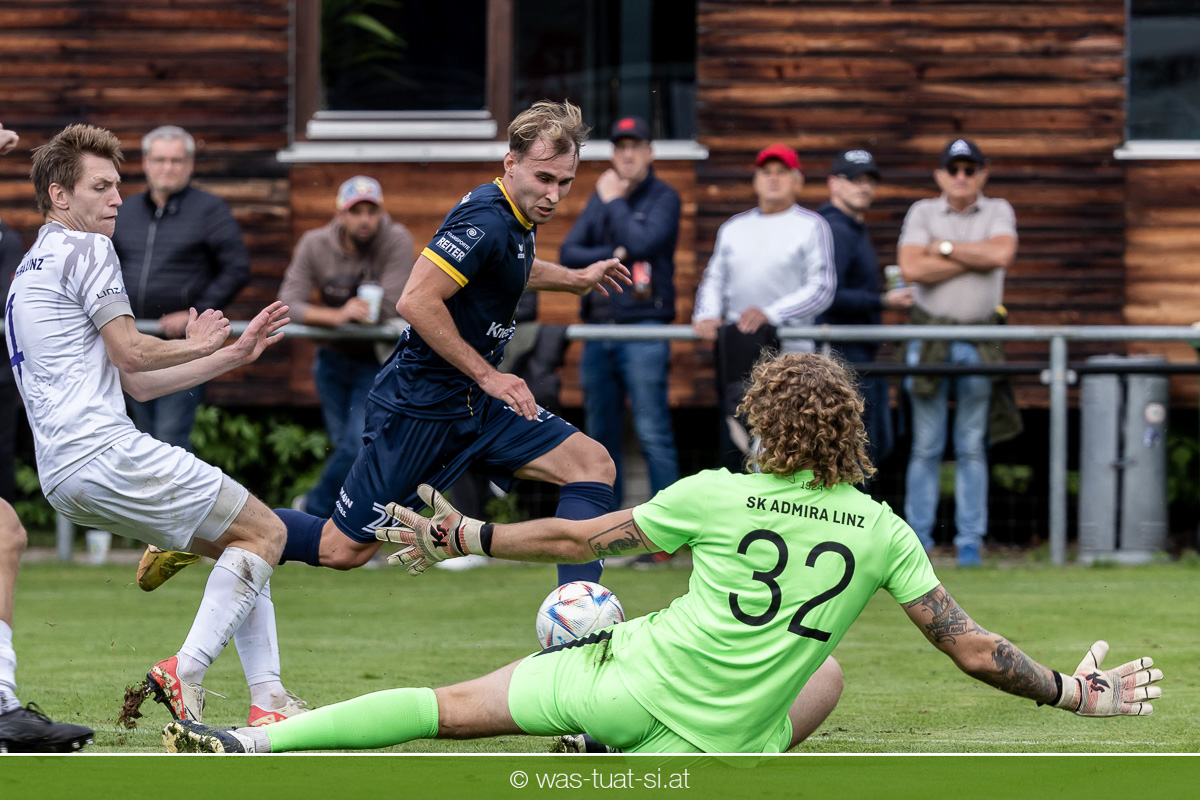 Nun warf die Admira alles nach vorne, stellte auf Dreierkette um und drückte auf den Ausgleich. Doch entweder verpufften die Angriffe im dichten Haslacher Abwehrbollwerk oder Florian Starlinger war zur Stelle. In der 87. Minute bewahrte er mit einer Glanzparade nach einem Distanzkracher seine Farben erneut vor dem Gegentor.